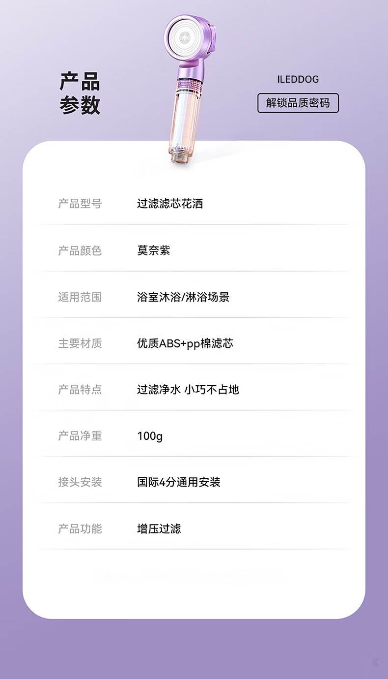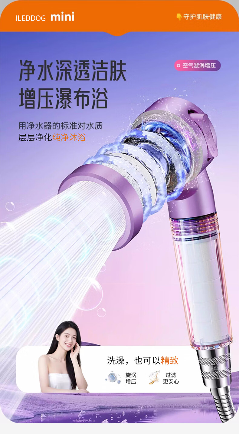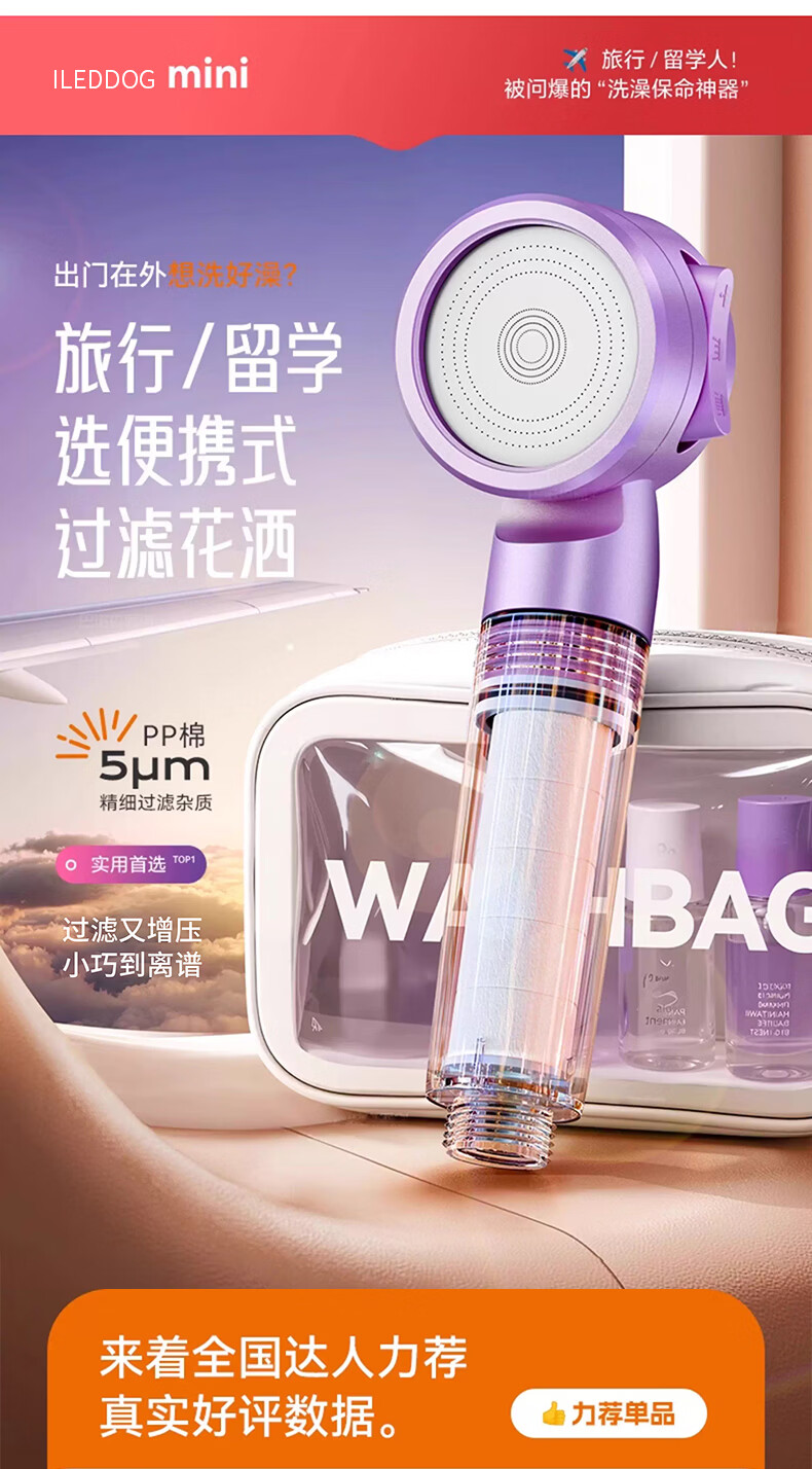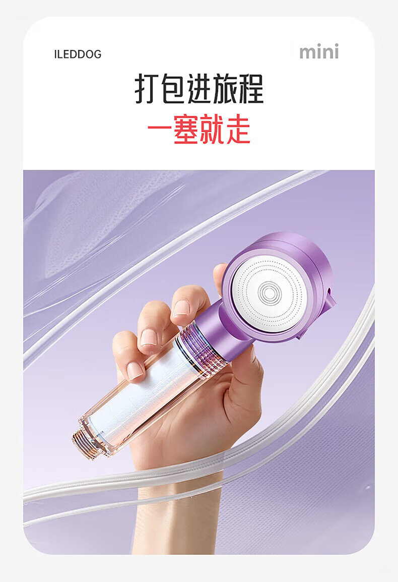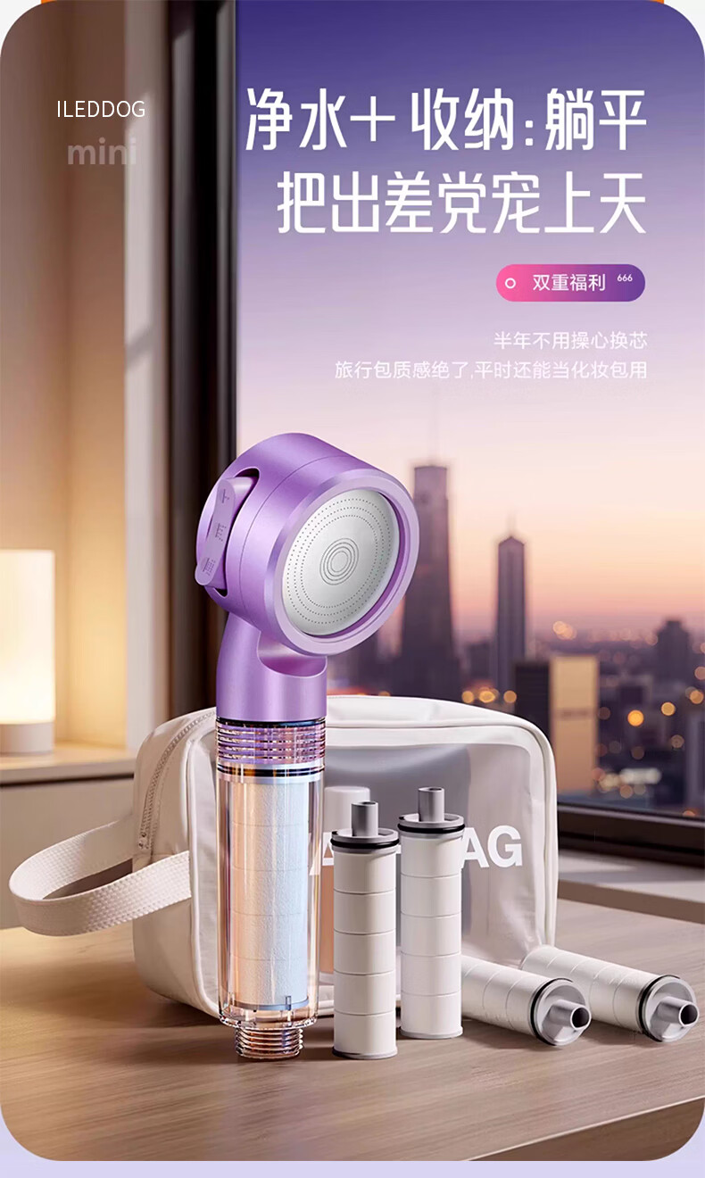 iLeddog【德国】过滤花洒喷头旅行便携浴室洗澡增压手持婴儿淋浴莲蓬喷头 莫奈紫-便携旅行净水花洒 便携小巧丨配原装滤芯*3+便携旅行盒