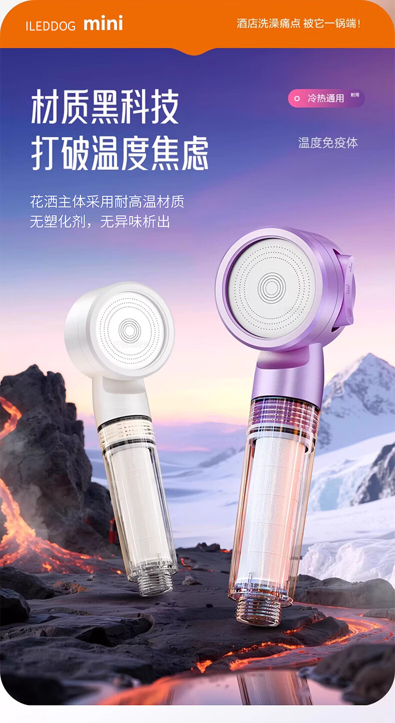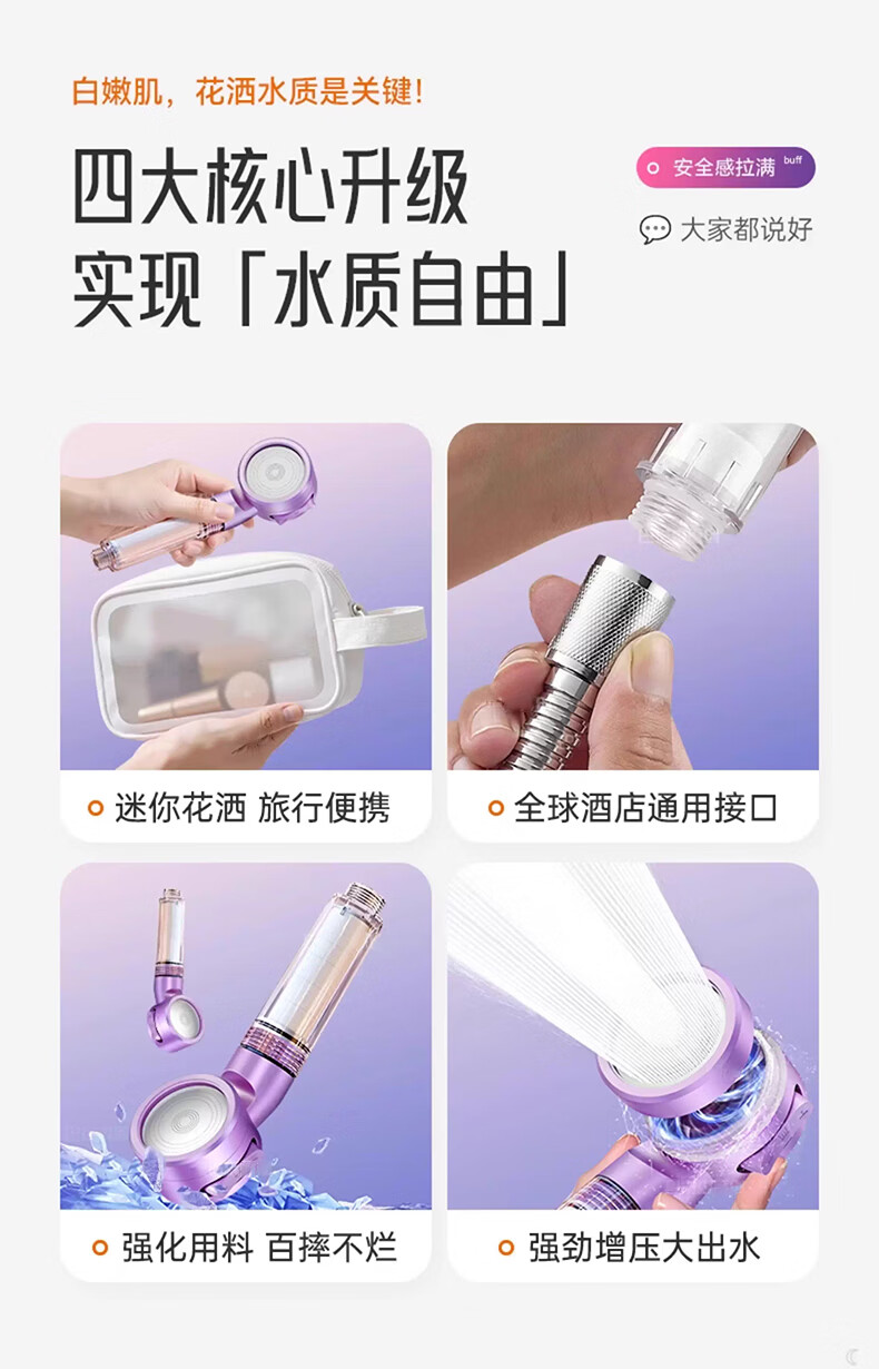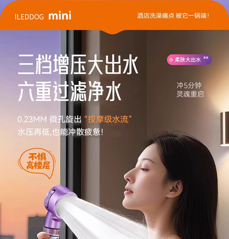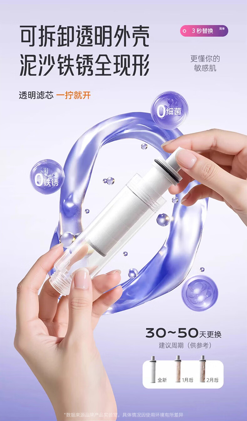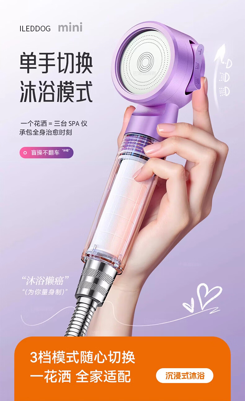 iLeddog【德国】过滤花洒喷头旅行便携浴室洗澡增压手持婴儿淋浴莲蓬喷头 莫奈紫-便携旅行净水花洒 便携小巧丨配原装滤芯*3+便携旅行盒