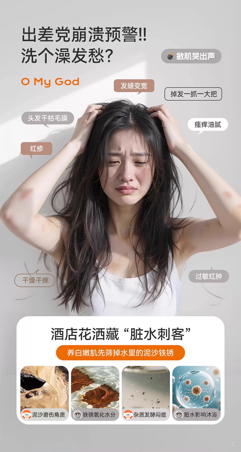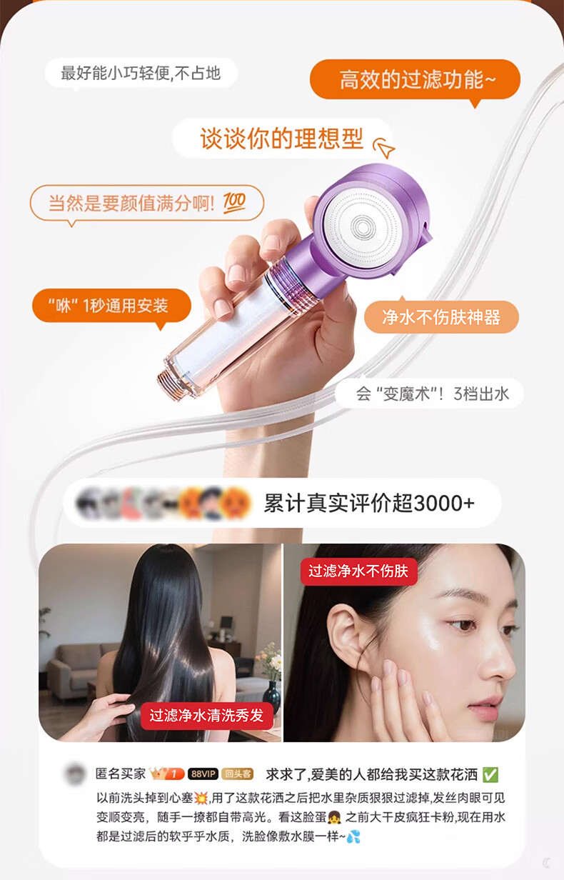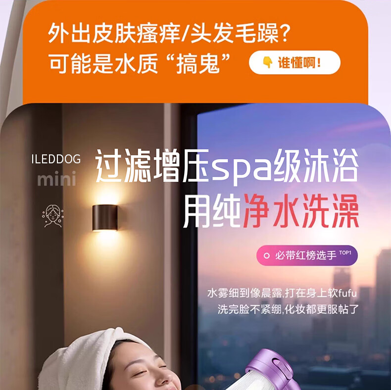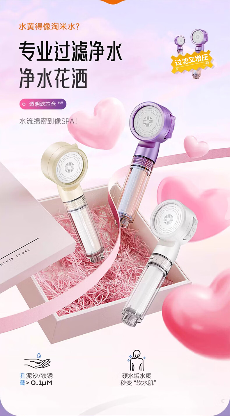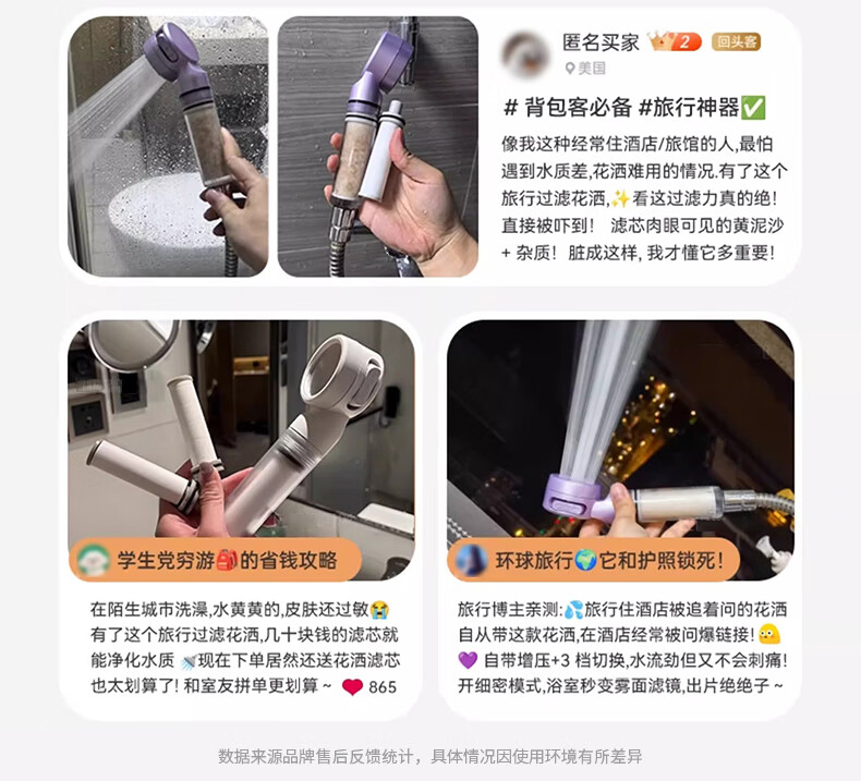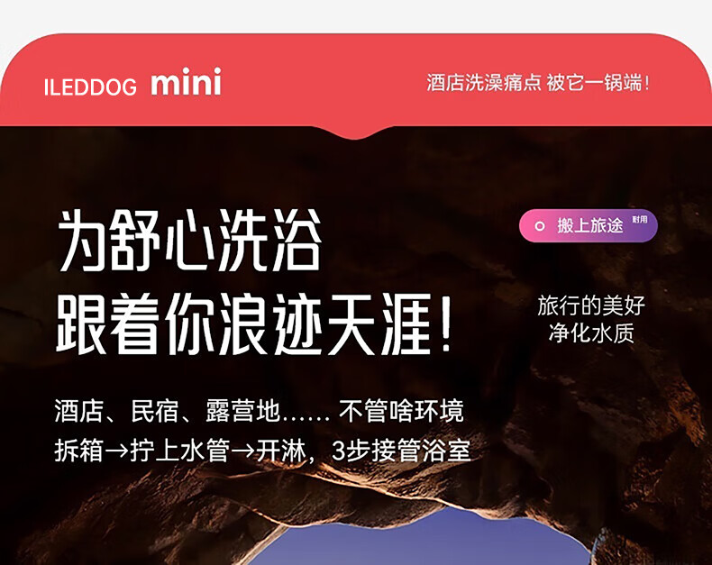 iLeddog【德国】过滤花洒喷头旅行便携浴室洗澡增压手持婴儿淋浴莲蓬喷头 莫奈紫-便携旅行净水花洒 便携小巧丨配原装滤芯*3+便携旅行盒