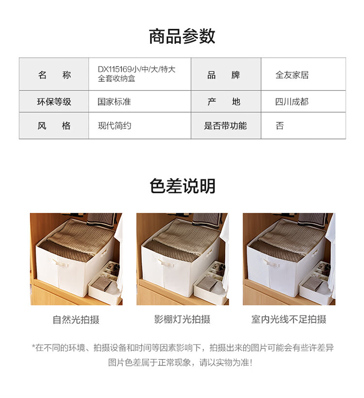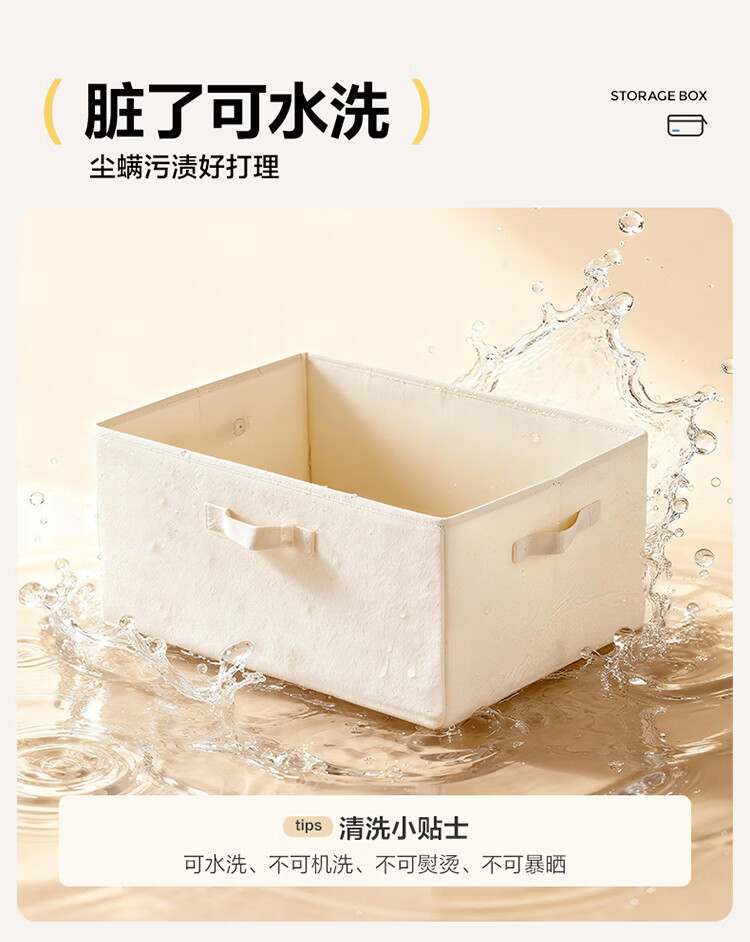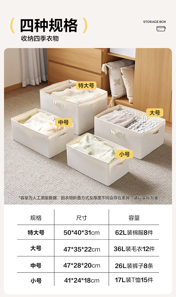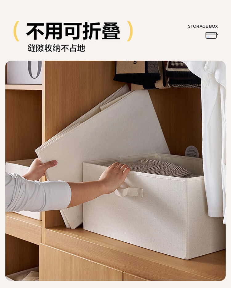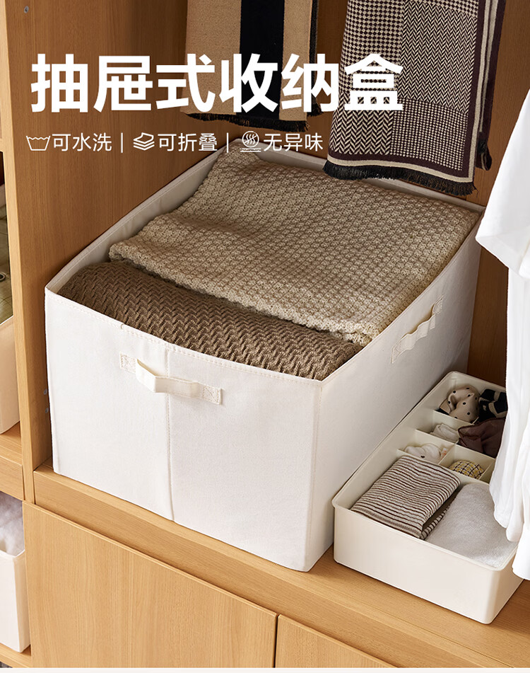 全友家居布艺收纳箱家用抽屉衣柜衣服裤子分隔储物整理箱防刮耐磨KD 【米白 | 可水洗 | 可折叠】小号收纳盒