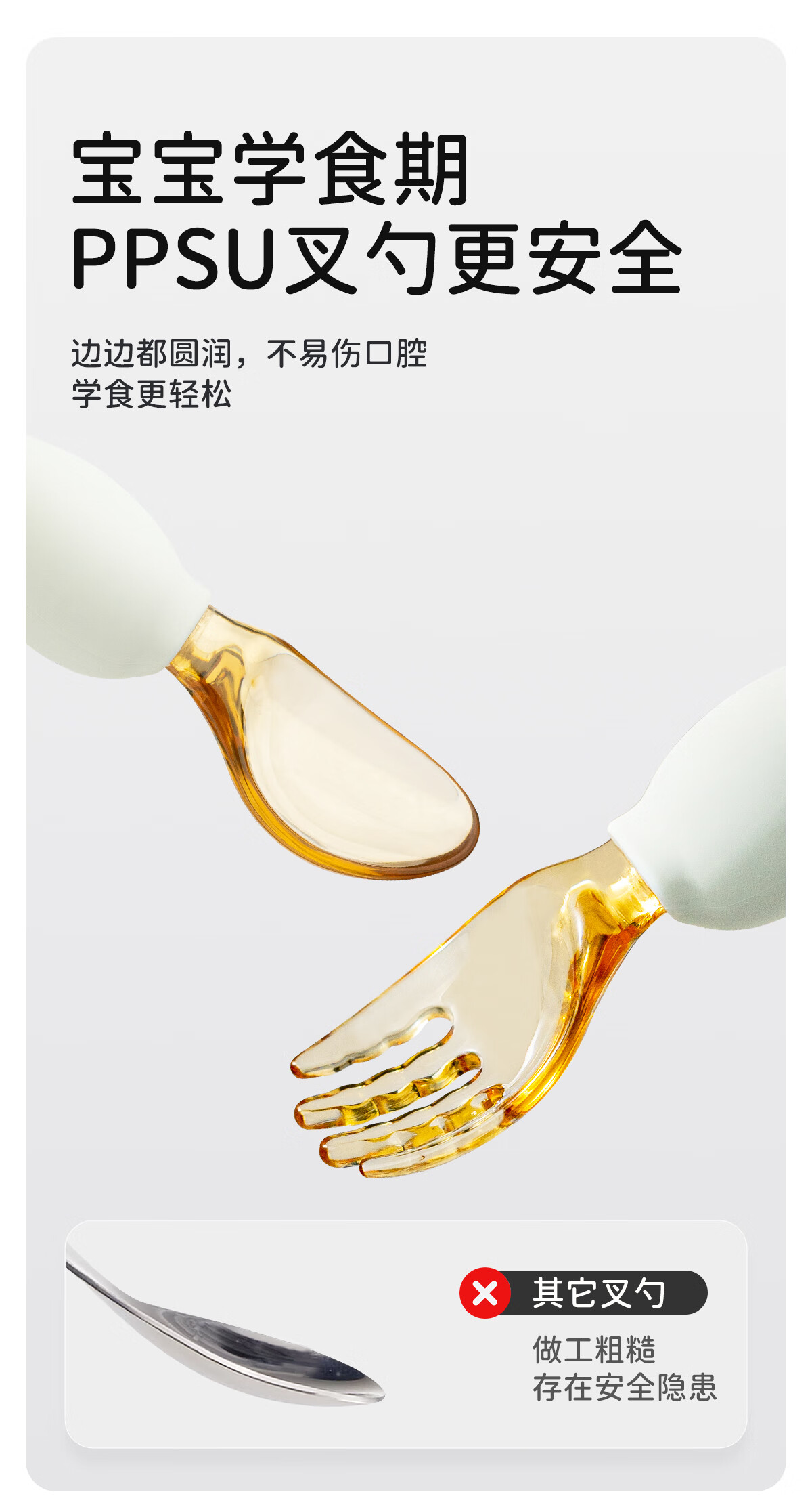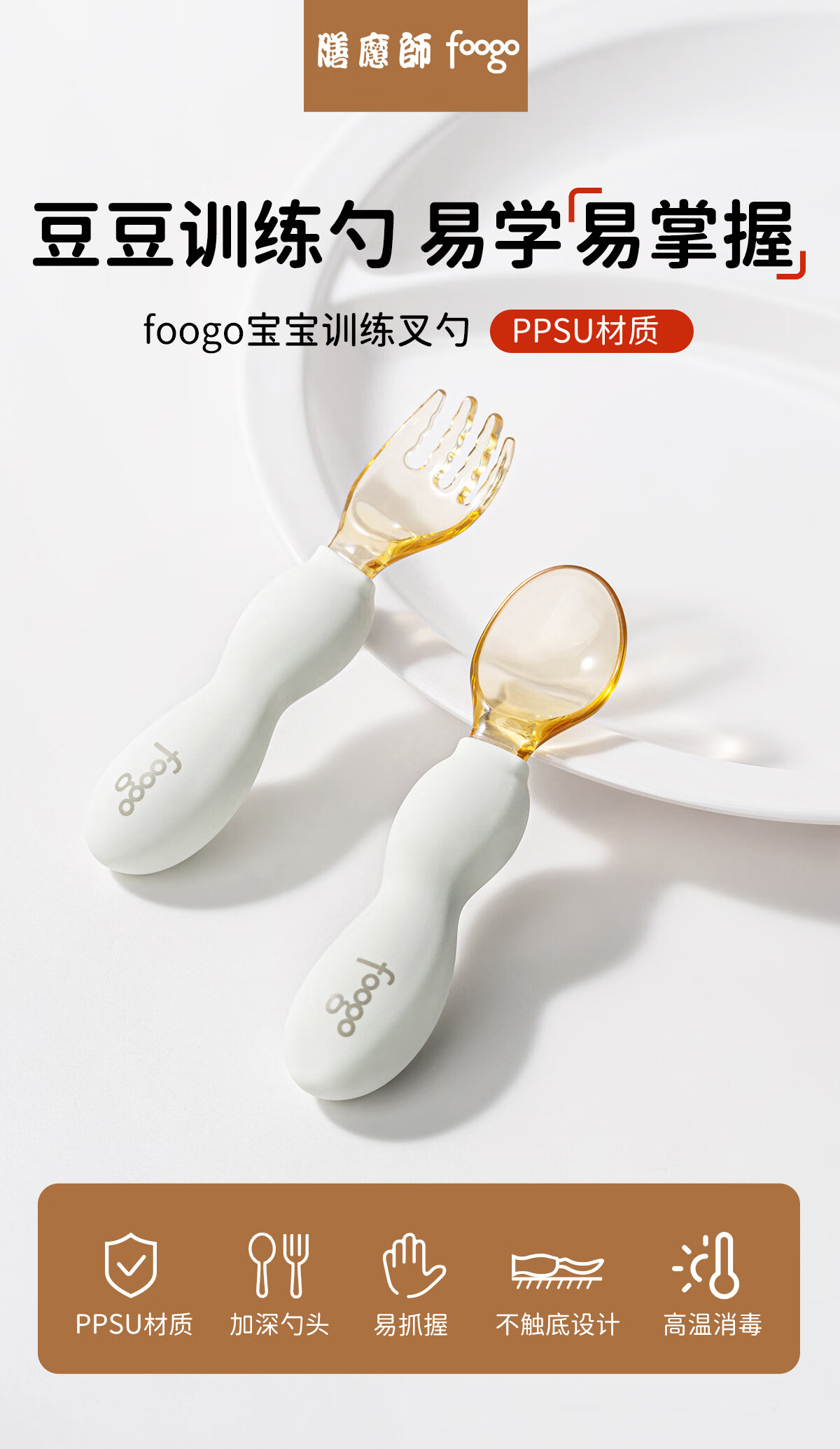 膳魔师(THERMOS)foogo豆豆叉勺幼儿园宝宝训练勺叉小学生PPSU辅食勺收纳盒 绿