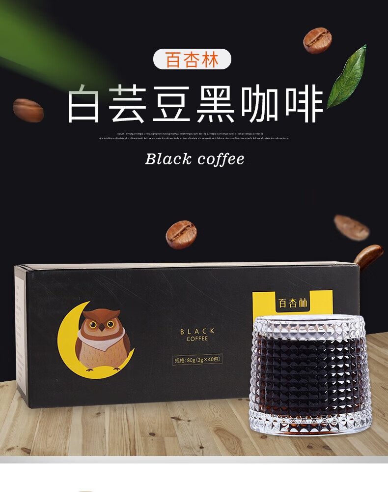 白芸豆美式黑咖啡0脂无糖精速溶美式咖啡粉健身熬夜可选送水杯 40条/盒