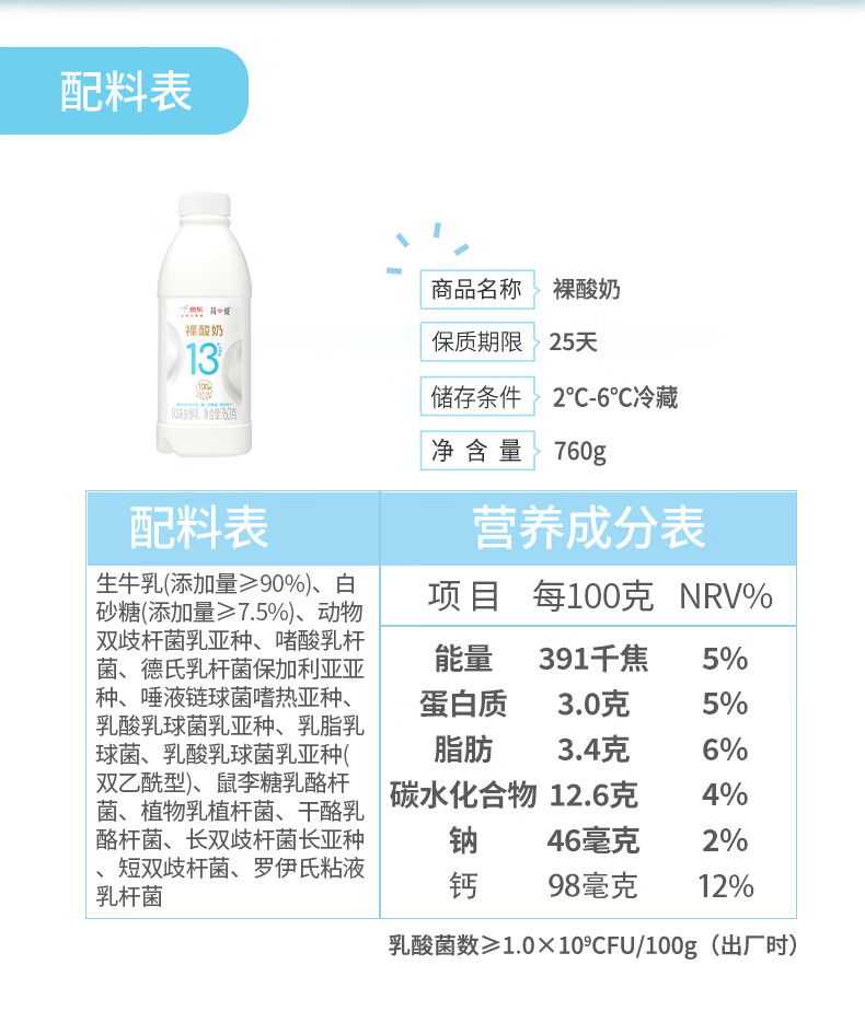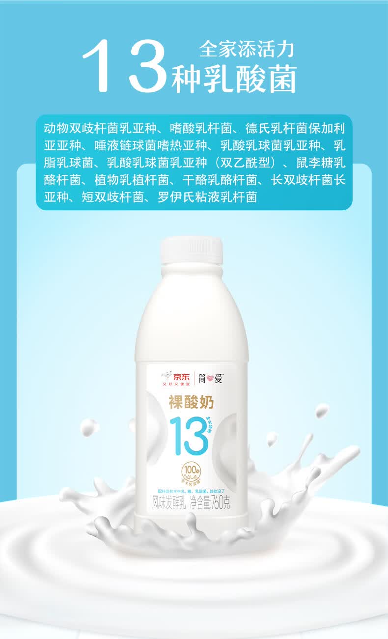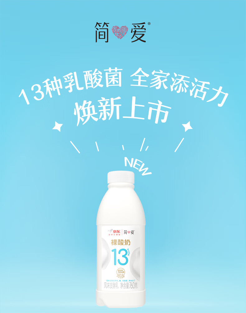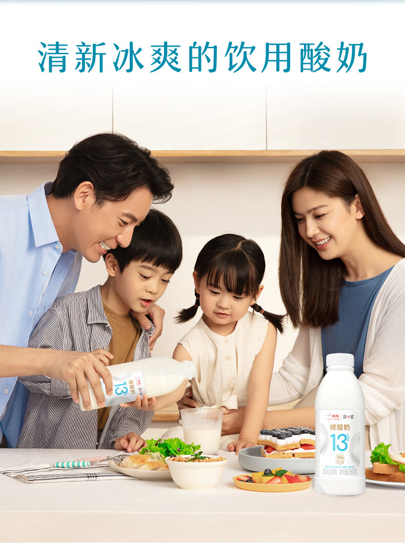 简爱原味裸酸奶 760g*2瓶 家庭装大桶酸奶 生牛乳发酵 早餐奶