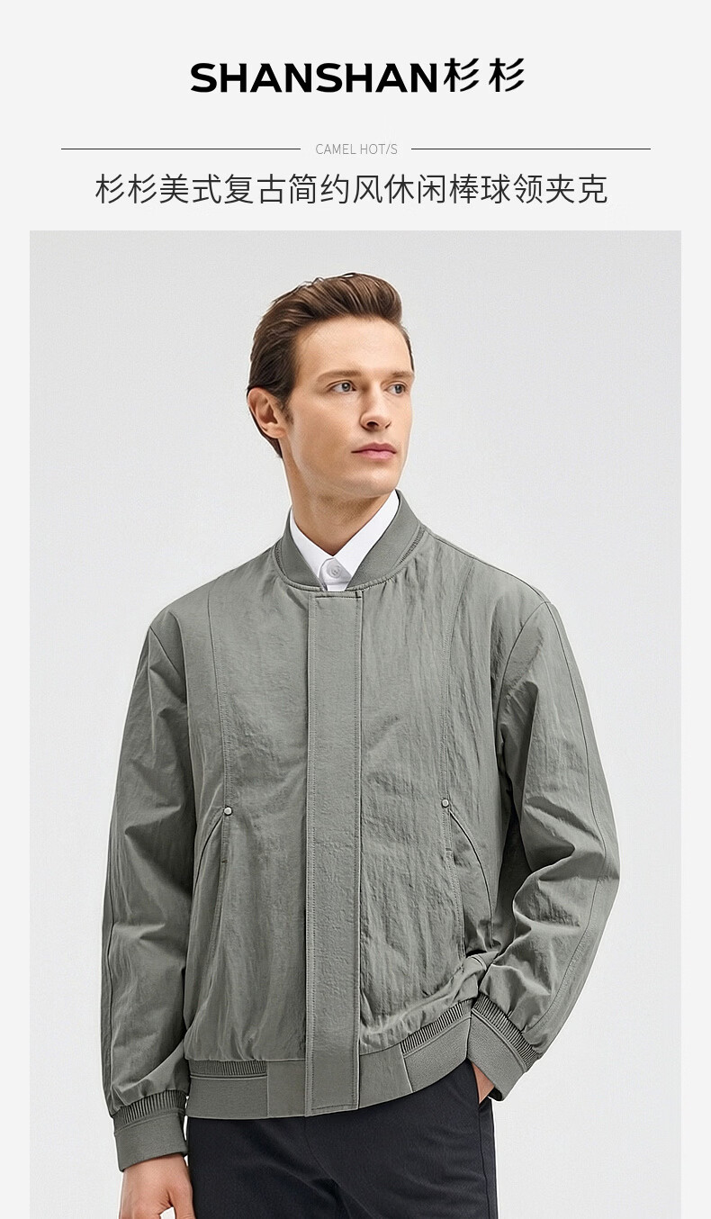 SHANSHAN杉杉【棒球领简约】春秋薄款夹克男旅行防风男士上衣服外套衣服 豆绿色 M /170