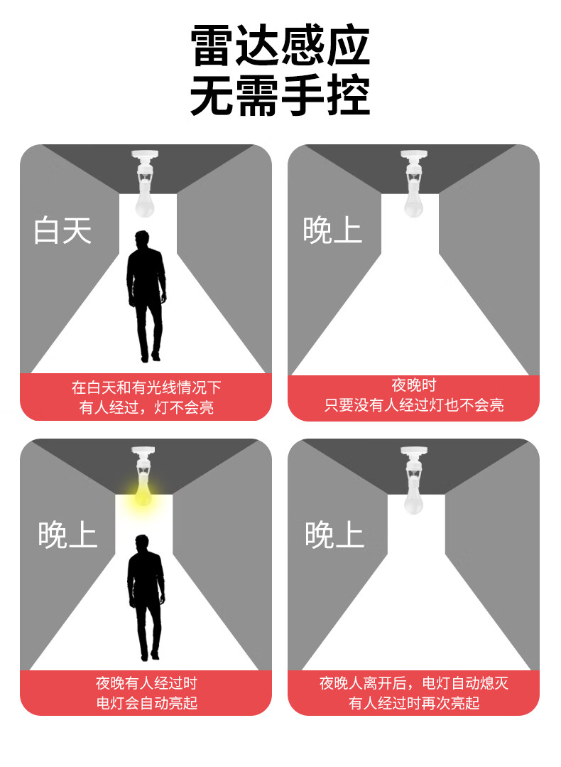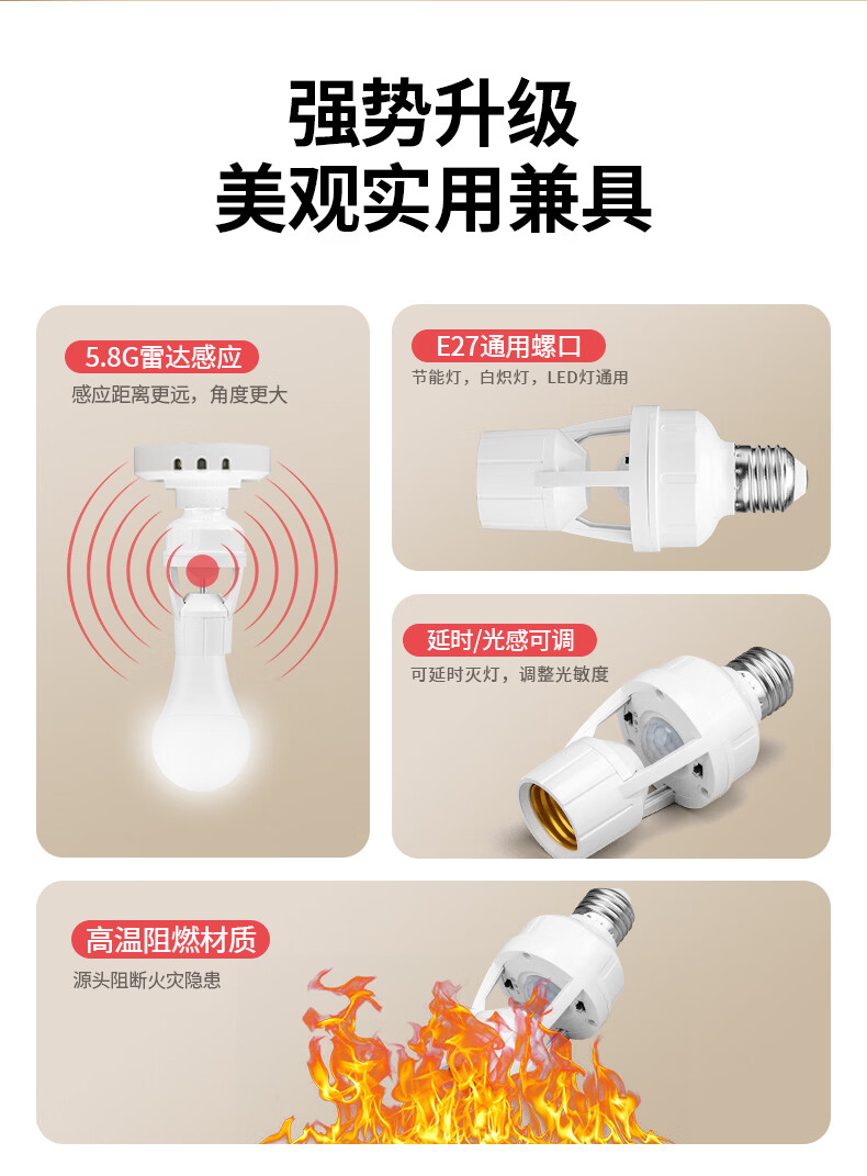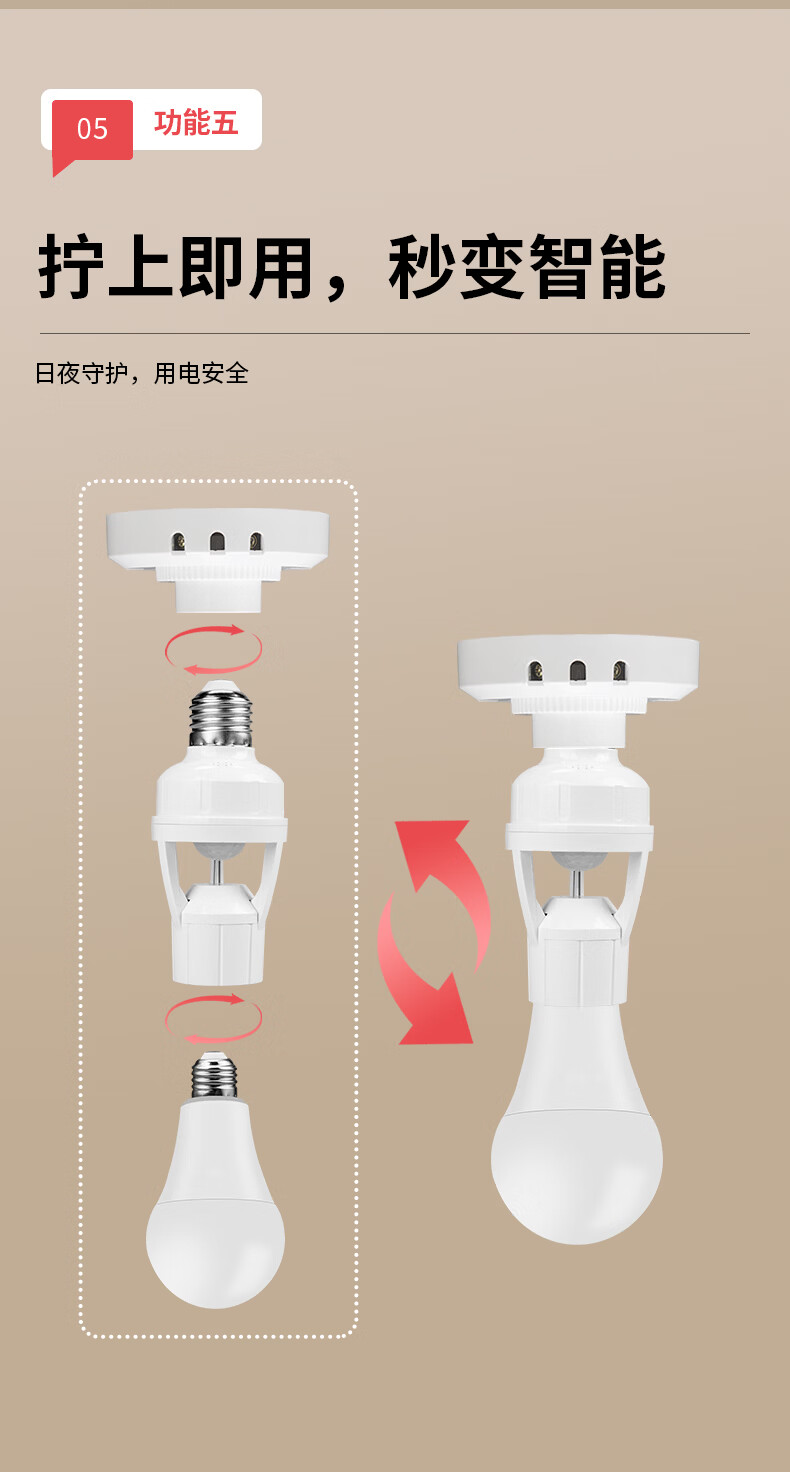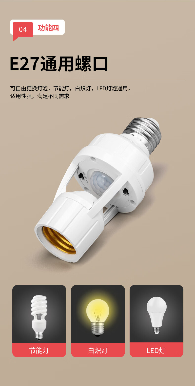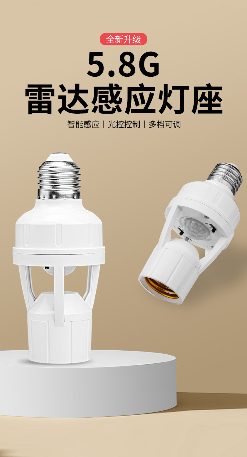 国际电工(FDD)红外线人体感应灯头E27螺口雷达灯座智能开关楼梯过道LED灯泡底座 红外人体感应灯头