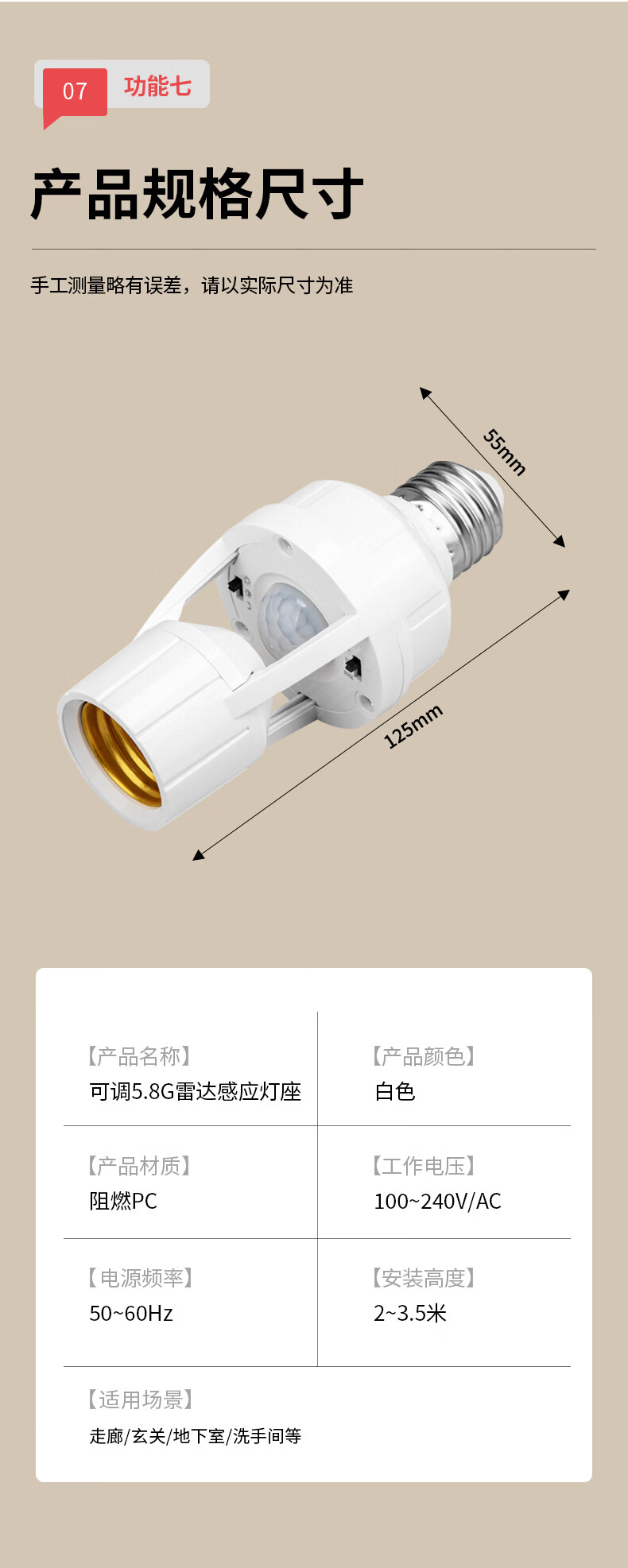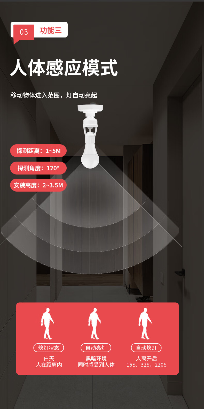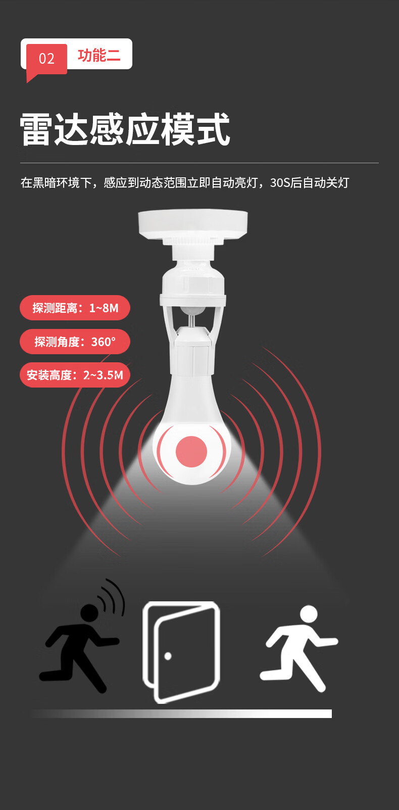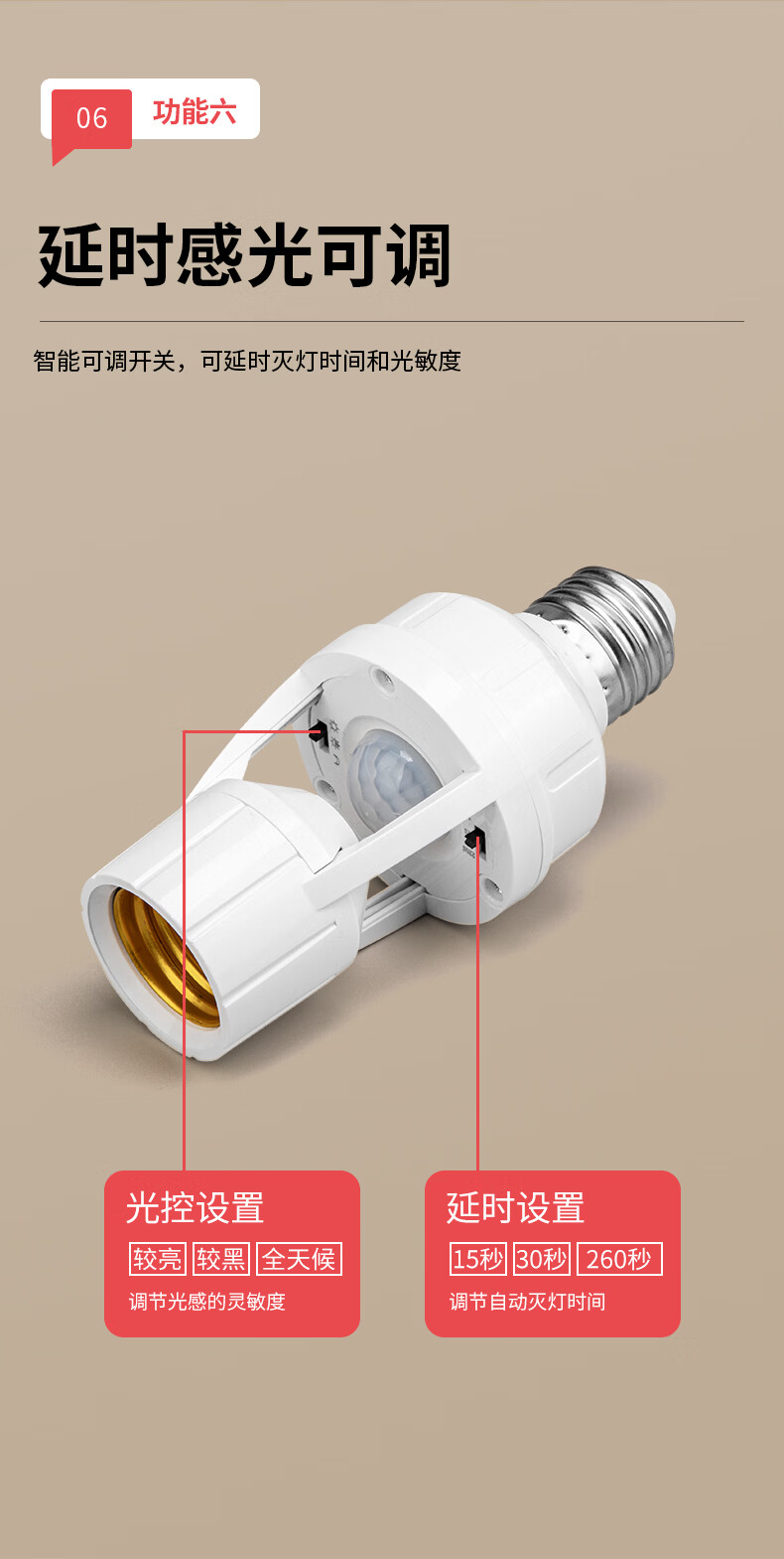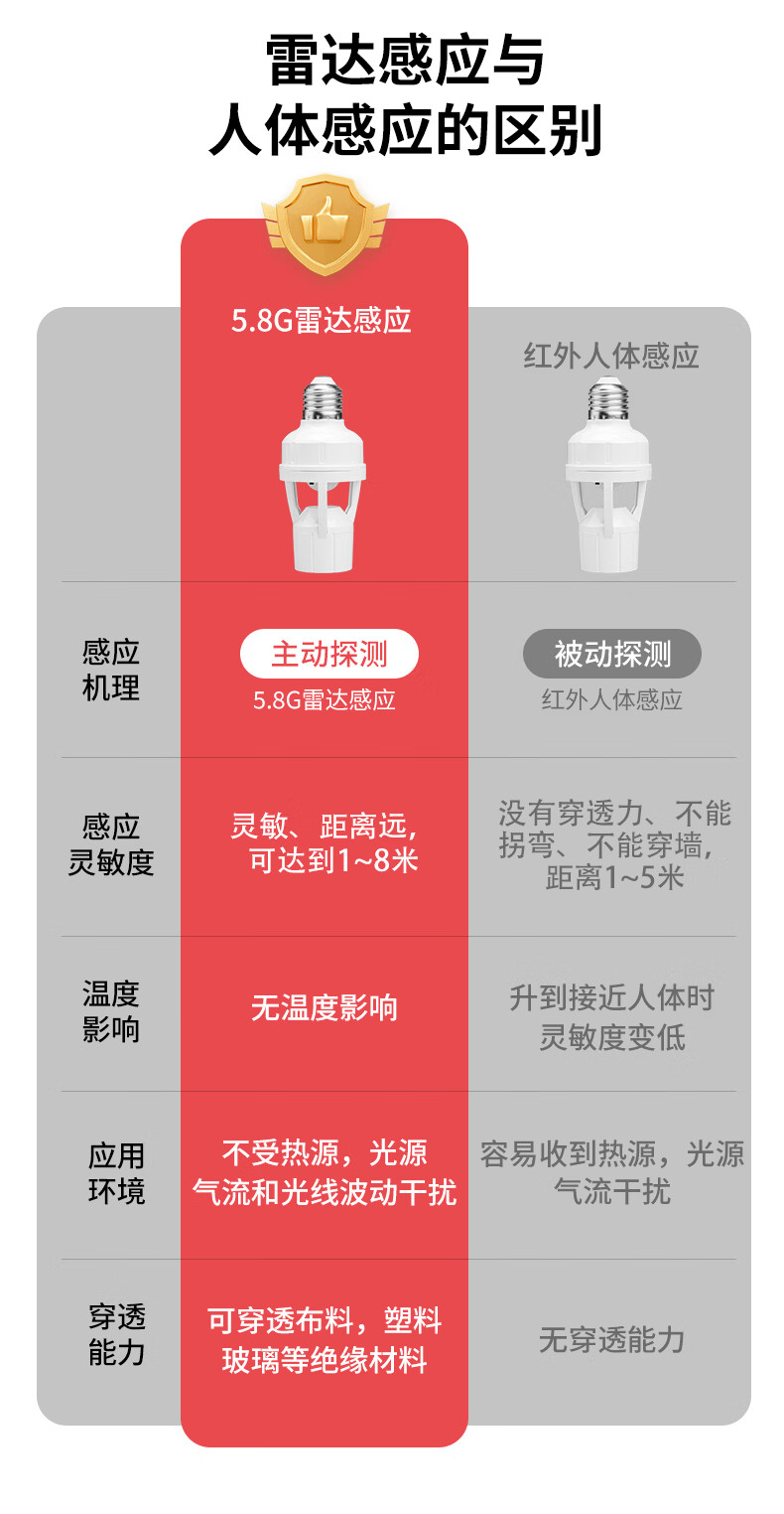 国际电工(FDD)红外线人体感应灯头E27螺口雷达灯座智能开关楼梯过道LED灯泡底座 红外人体感应灯头