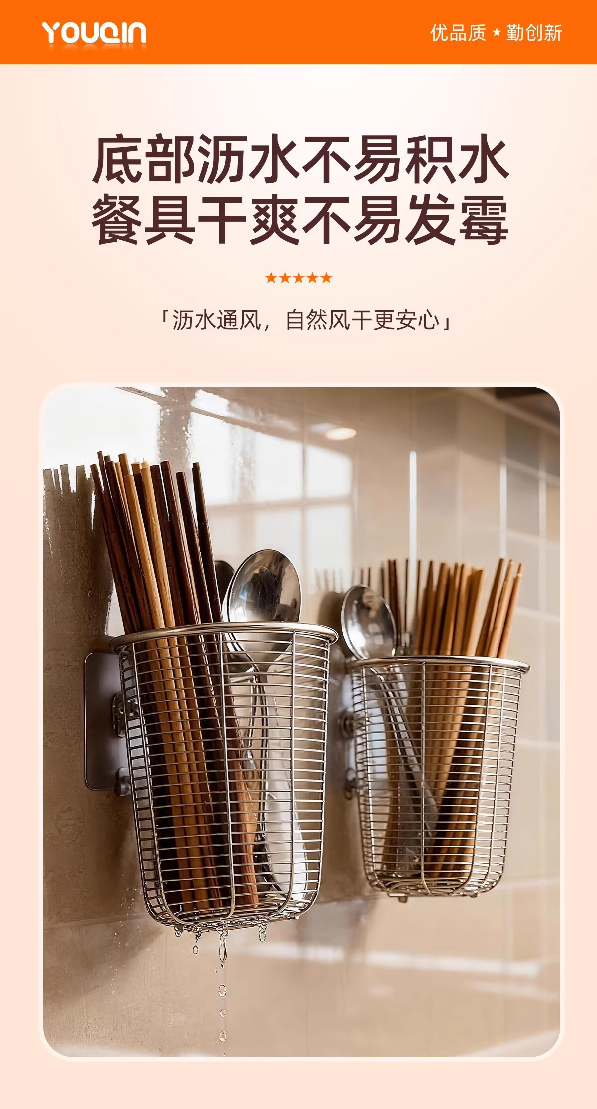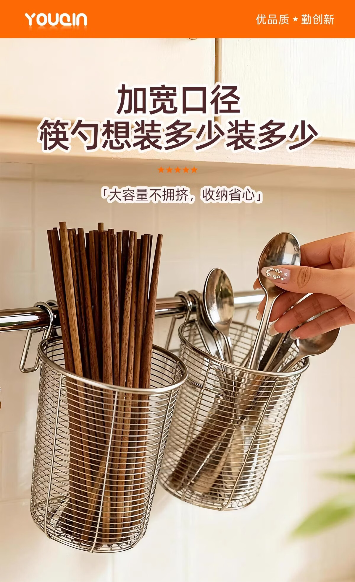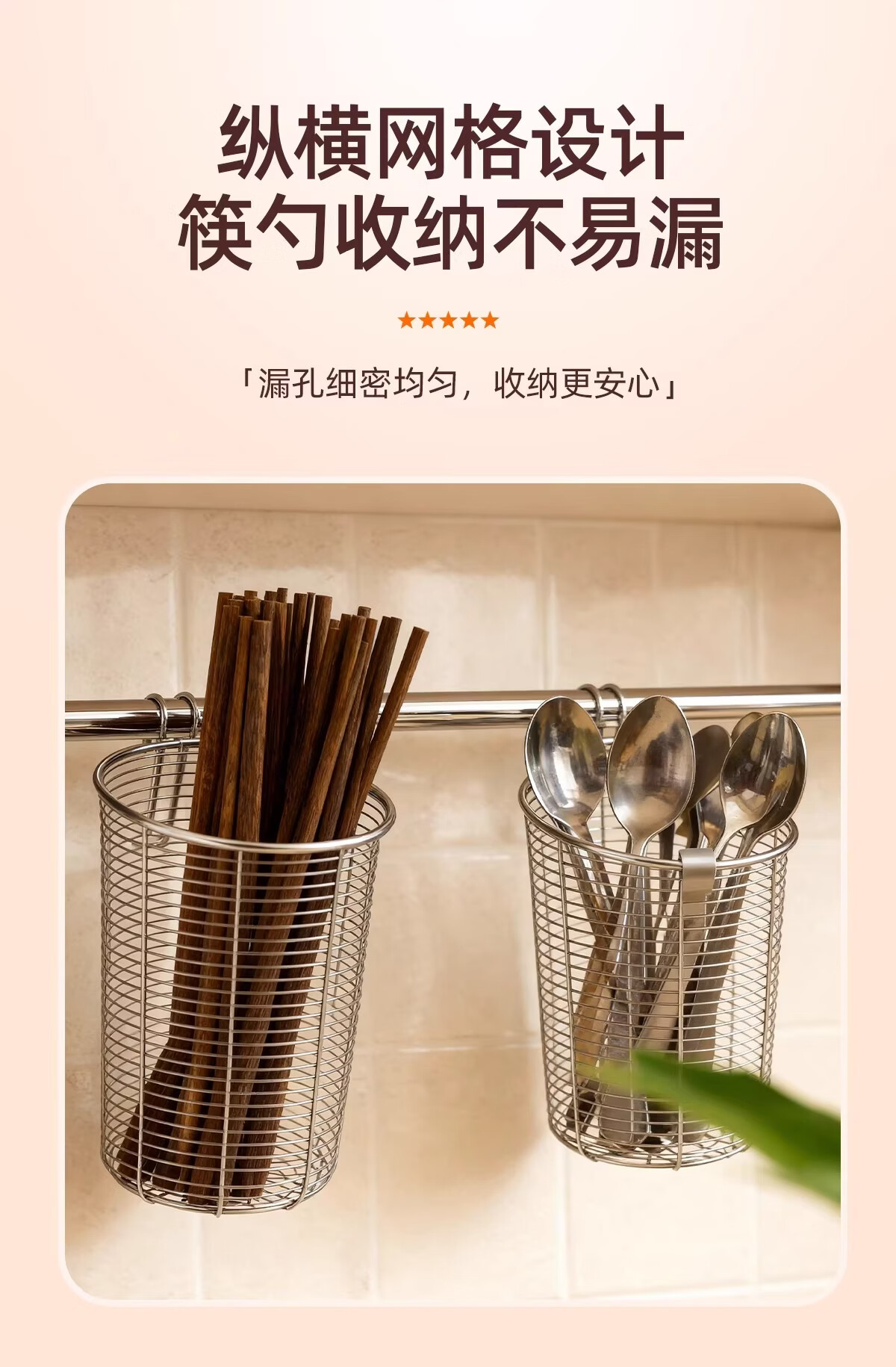 加度 304不锈钢筷子筒壁挂式家用筷子收纳盒沥水架防霉筷笼筷子篓 升级款筷子筒-大号【带不锈钢垫片-送挂钩】