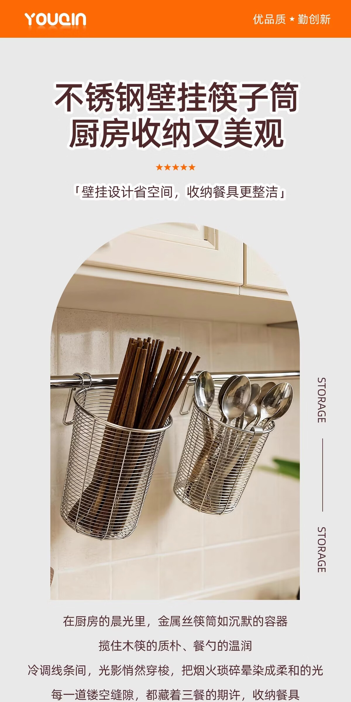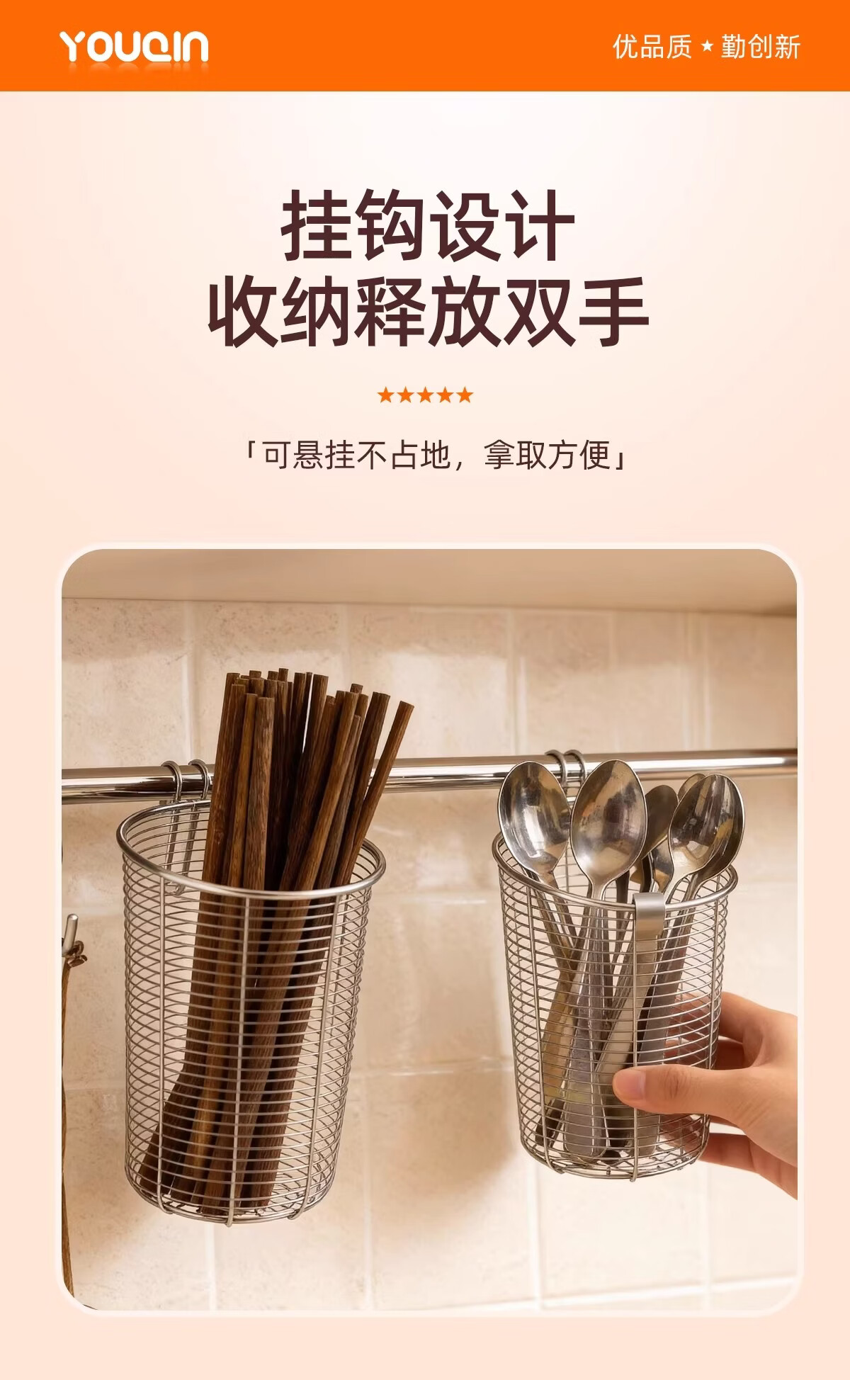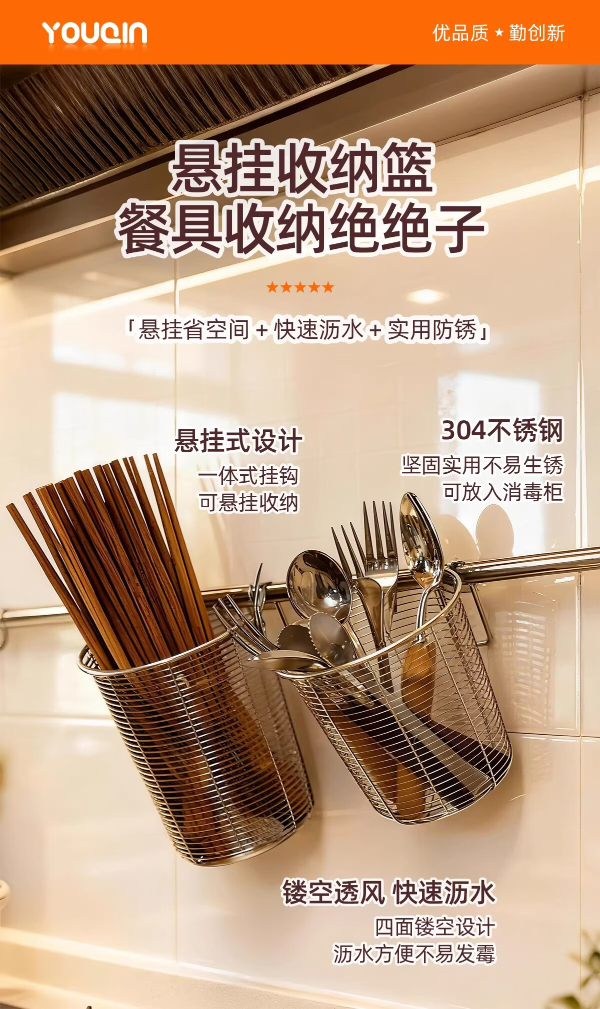 加度 304不锈钢筷子筒壁挂式家用筷子收纳盒沥水架防霉筷笼筷子篓 升级款筷子筒-大号【带不锈钢垫片-送挂钩】