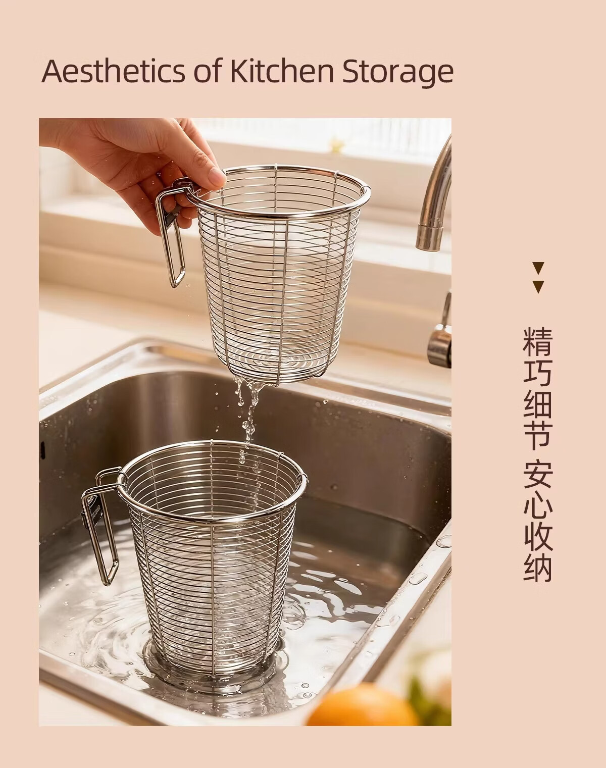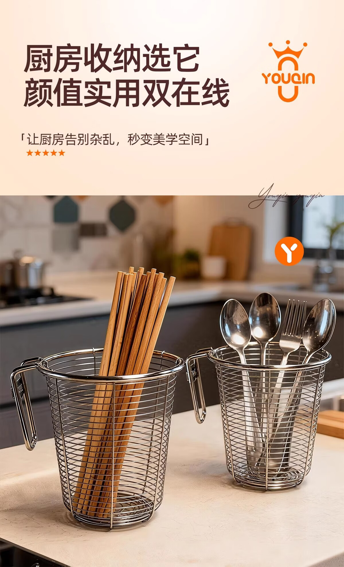 稻草熊筷子架免打孔厨房家用收纳架子沥水一体筷子筒简约轻奢多功能筷笼 黄色