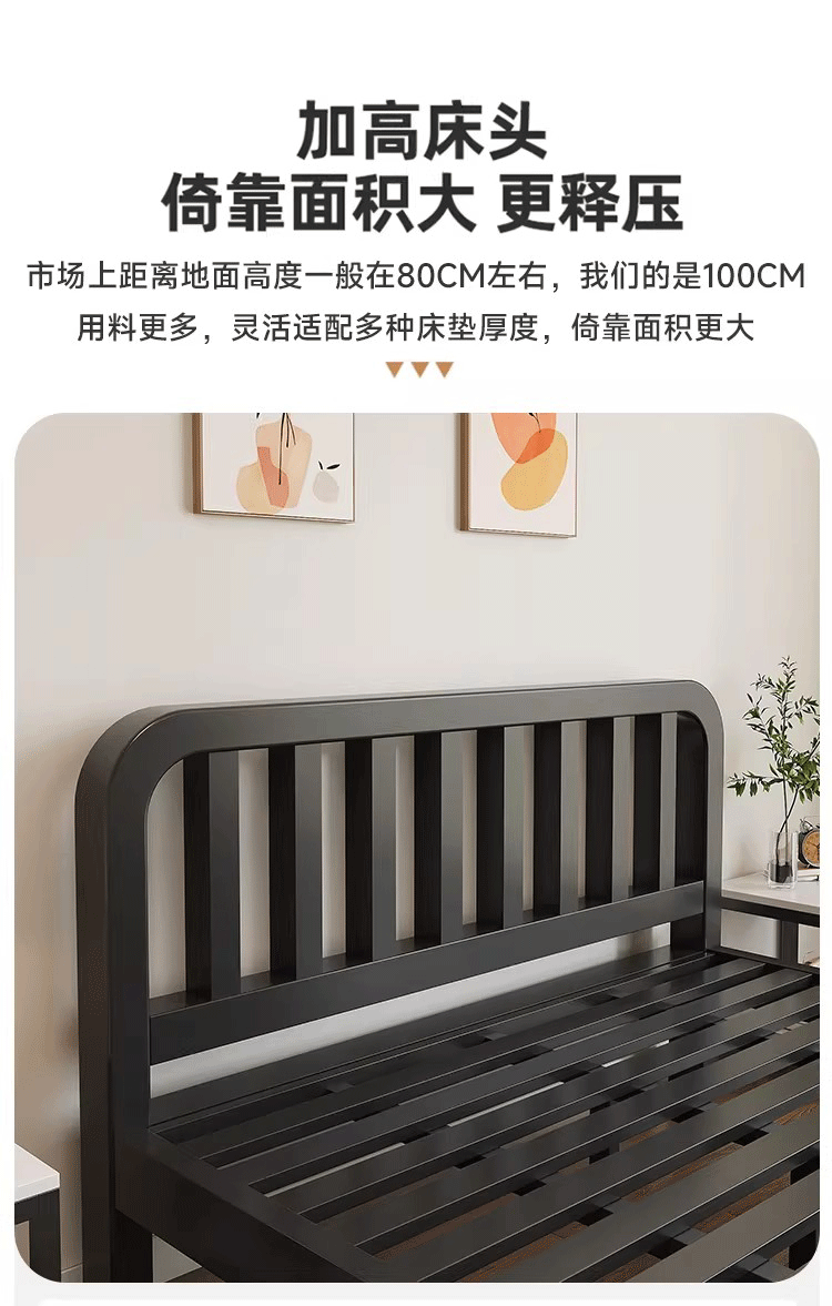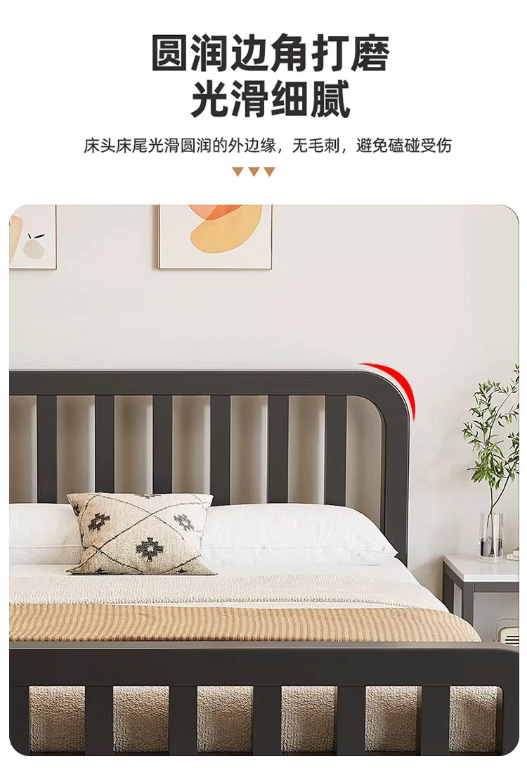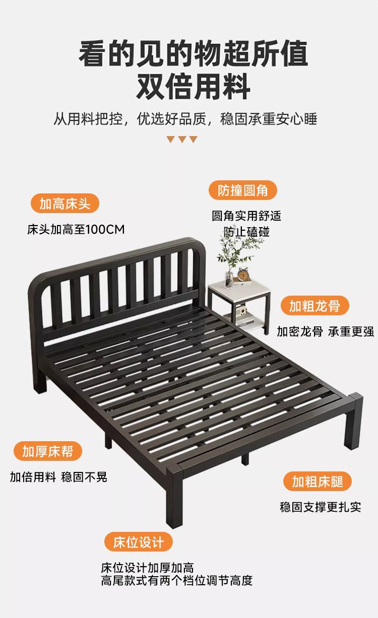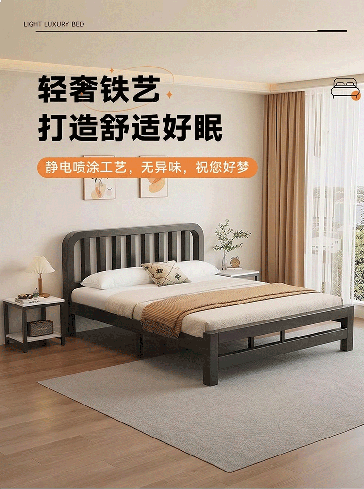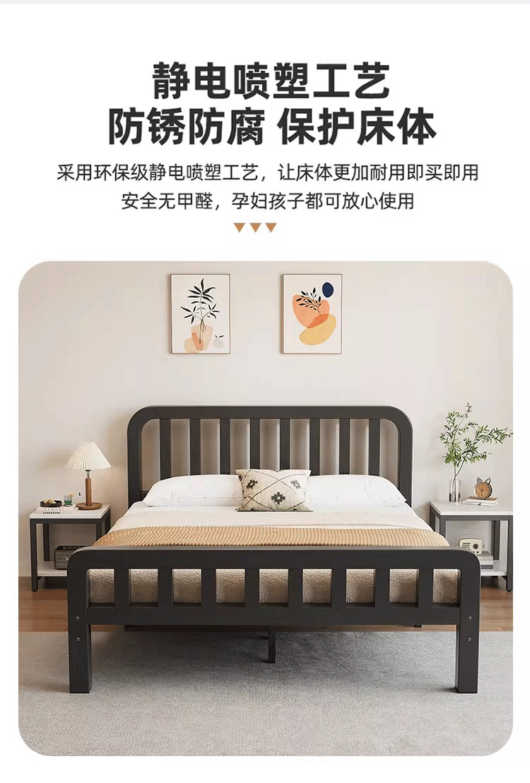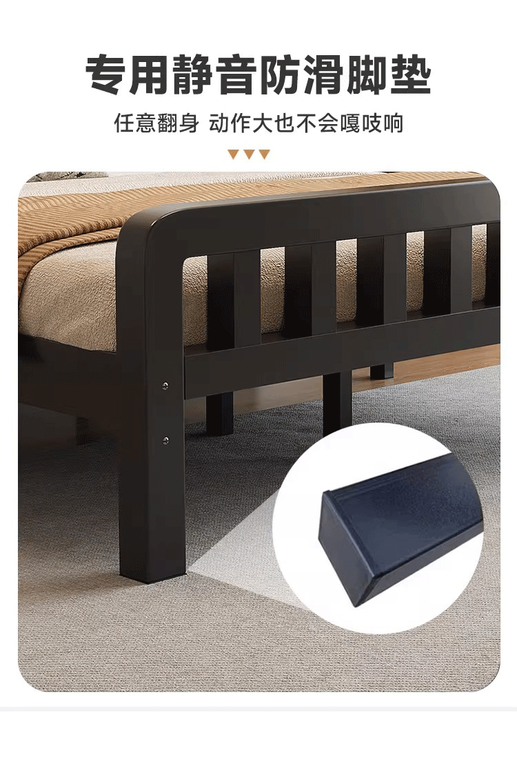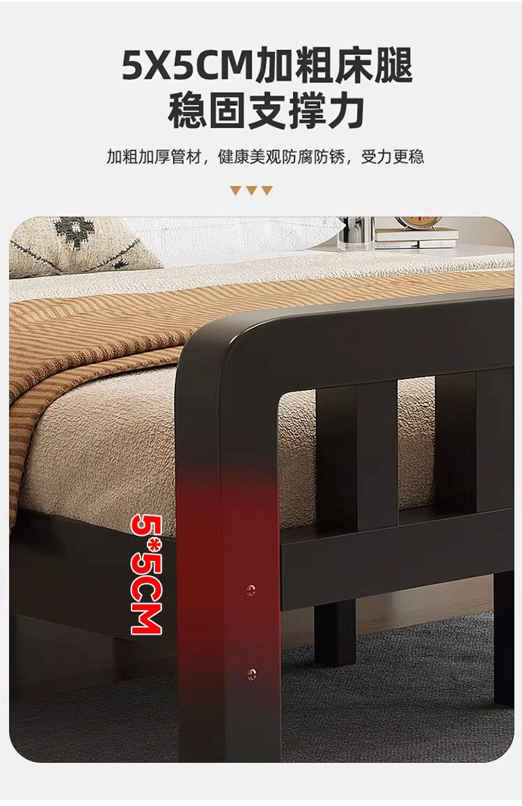 科虎铁艺床家用特厚铁床1.5米x2米单人铁架床出租房双人1.8米x2米床架 炫酷黑特厚铁艺床【0异响】 1000*2000mm【包安装】