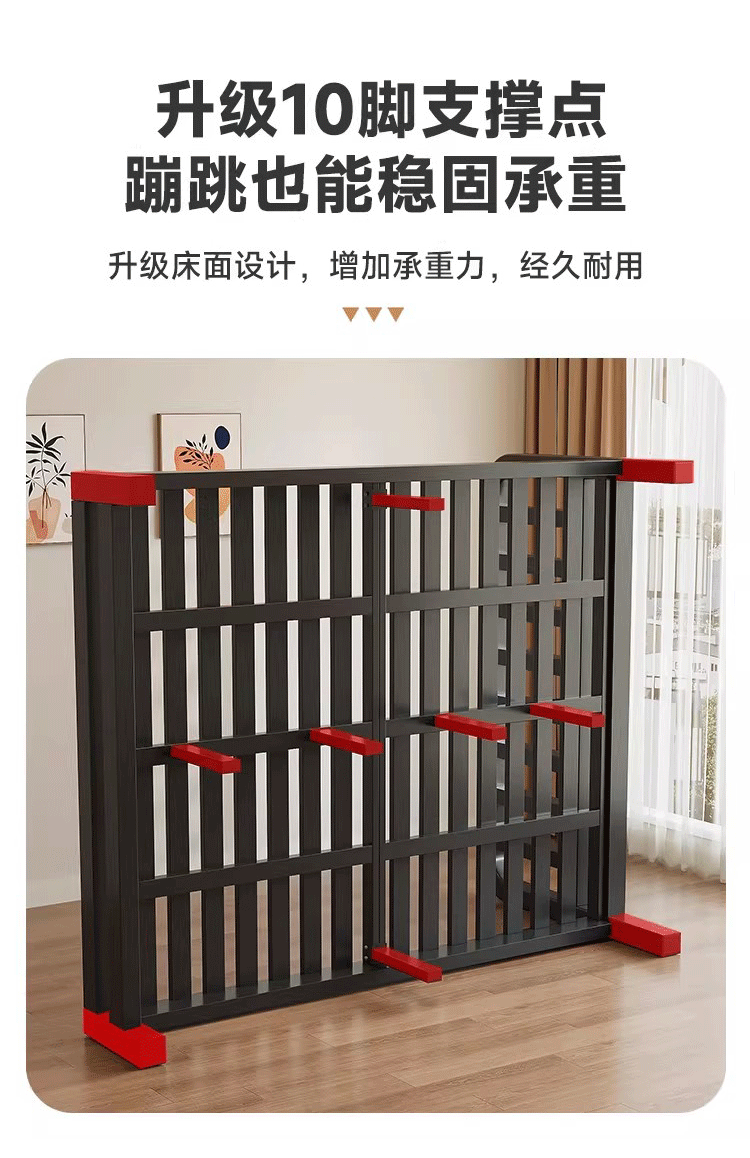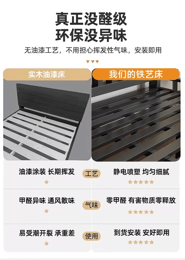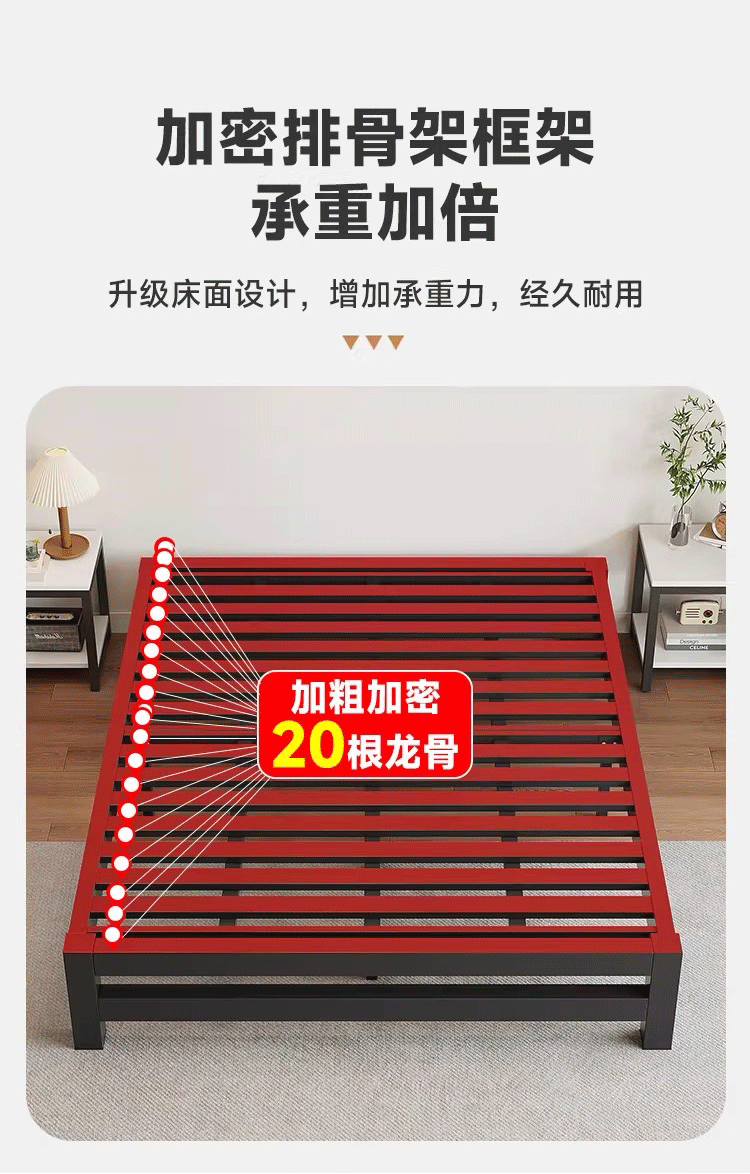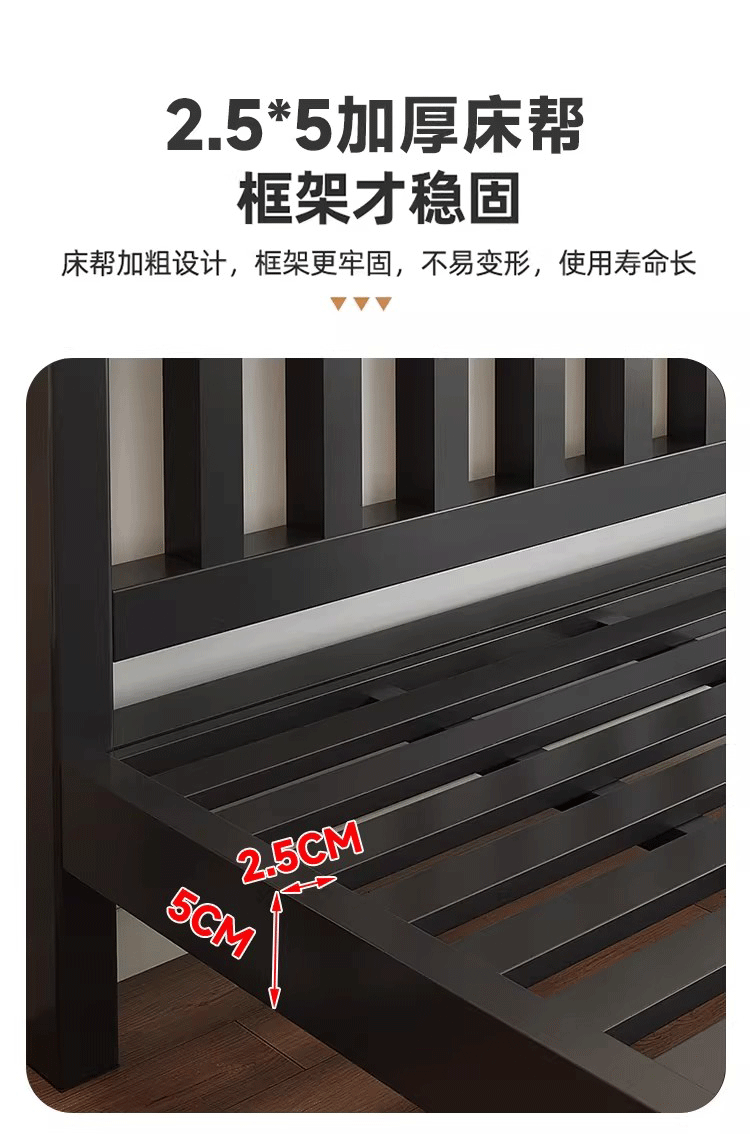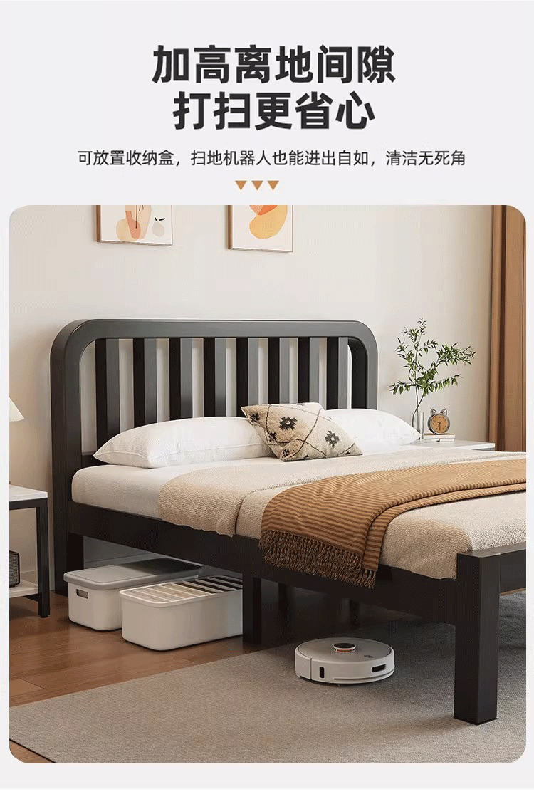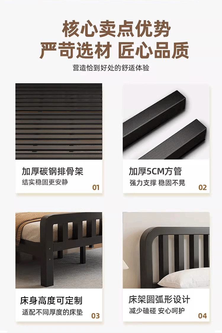 科虎铁艺床家用特厚铁床1.5米x2米单人铁架床出租房双人1.8米x2米床架 炫酷黑特厚铁艺床【0异响】 1000*2000mm【包安装】