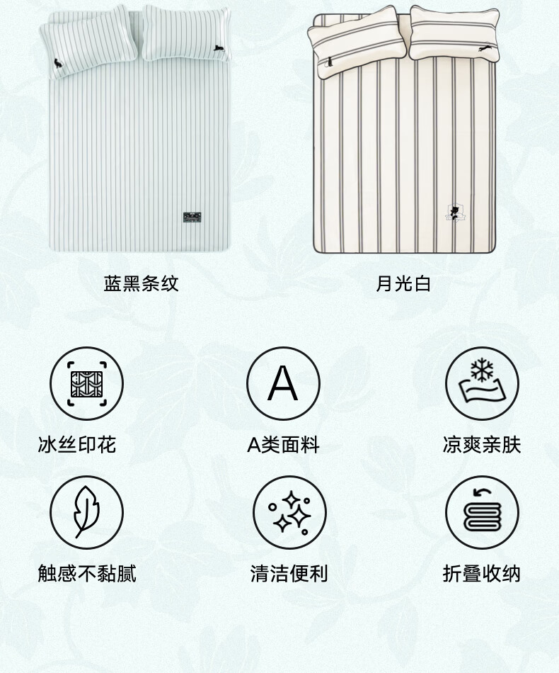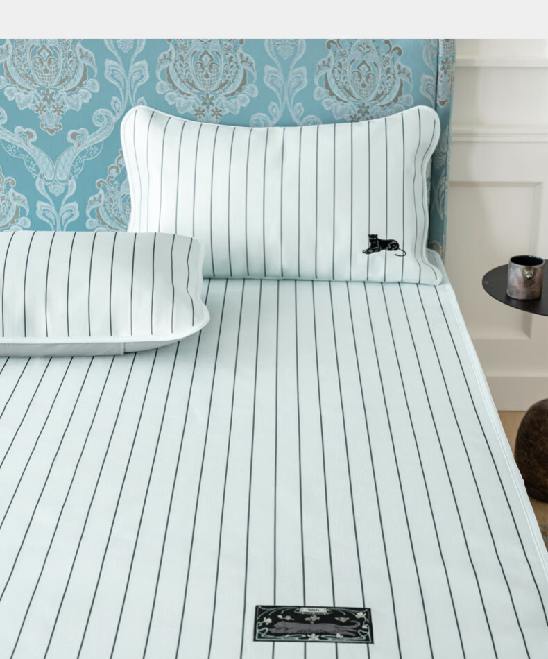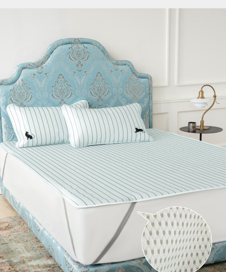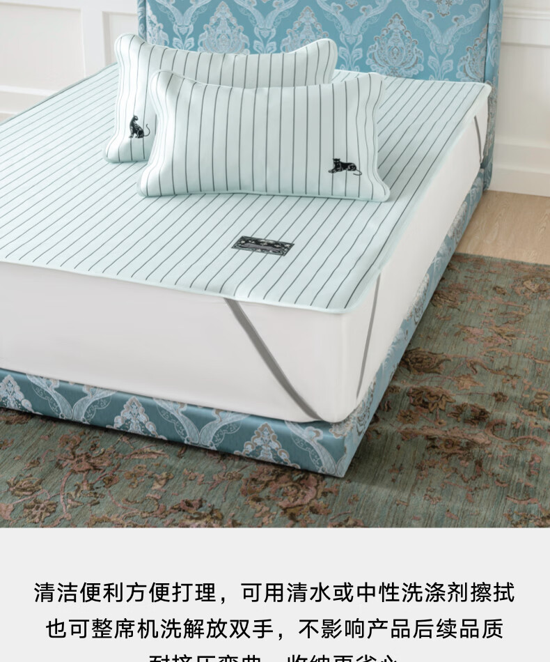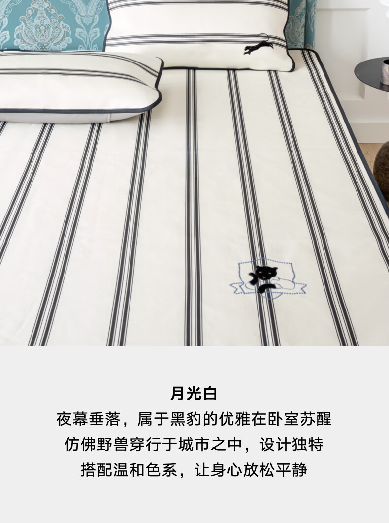 野兽派家居(tbh)都市野兽黑豹冰丝凉席宿舍席子单双人冰丝席套装 黑豹冰丝凉席绑带款 蓝黑条纹 两件套 90cm*200cm