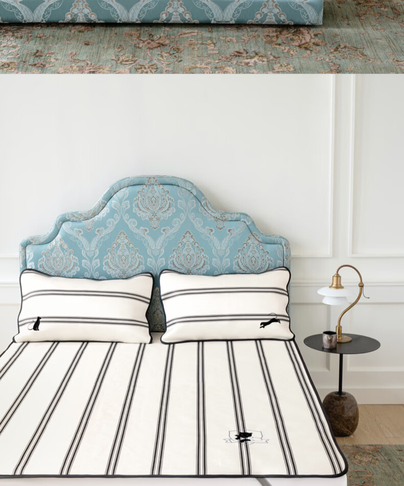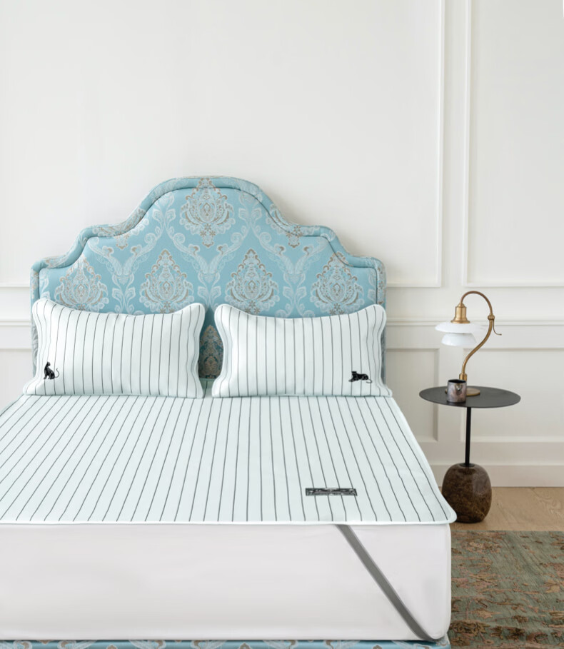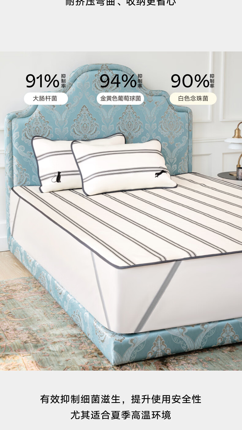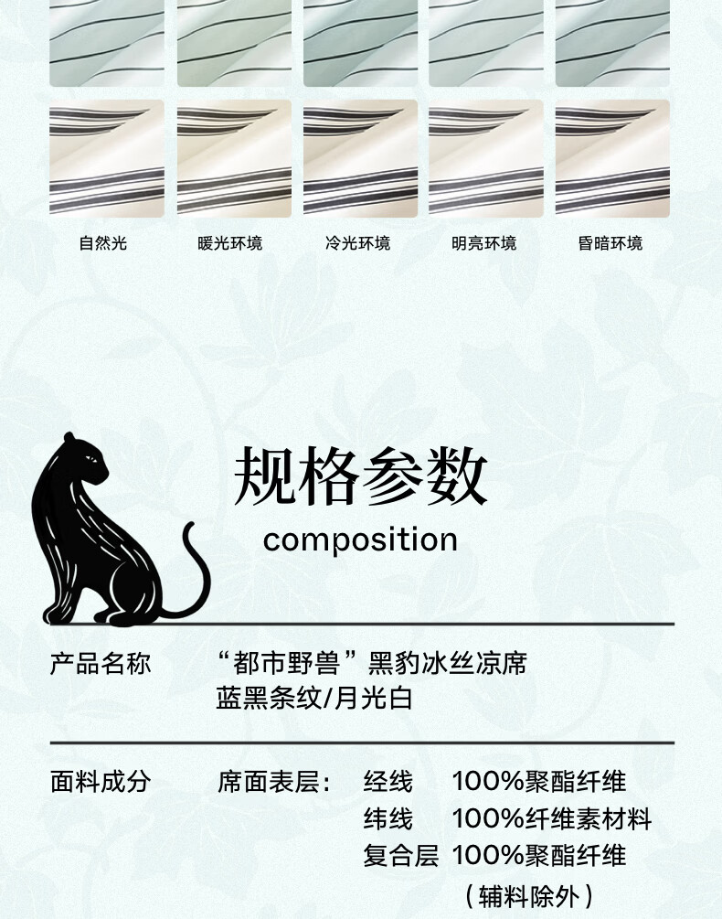 野兽派家居(tbh)都市野兽黑豹冰丝凉席宿舍席子单双人冰丝席套装 黑豹冰丝凉席绑带款 蓝黑条纹 两件套 90cm*200cm