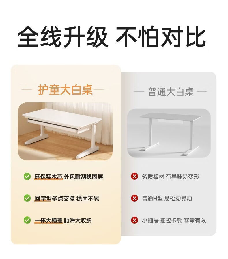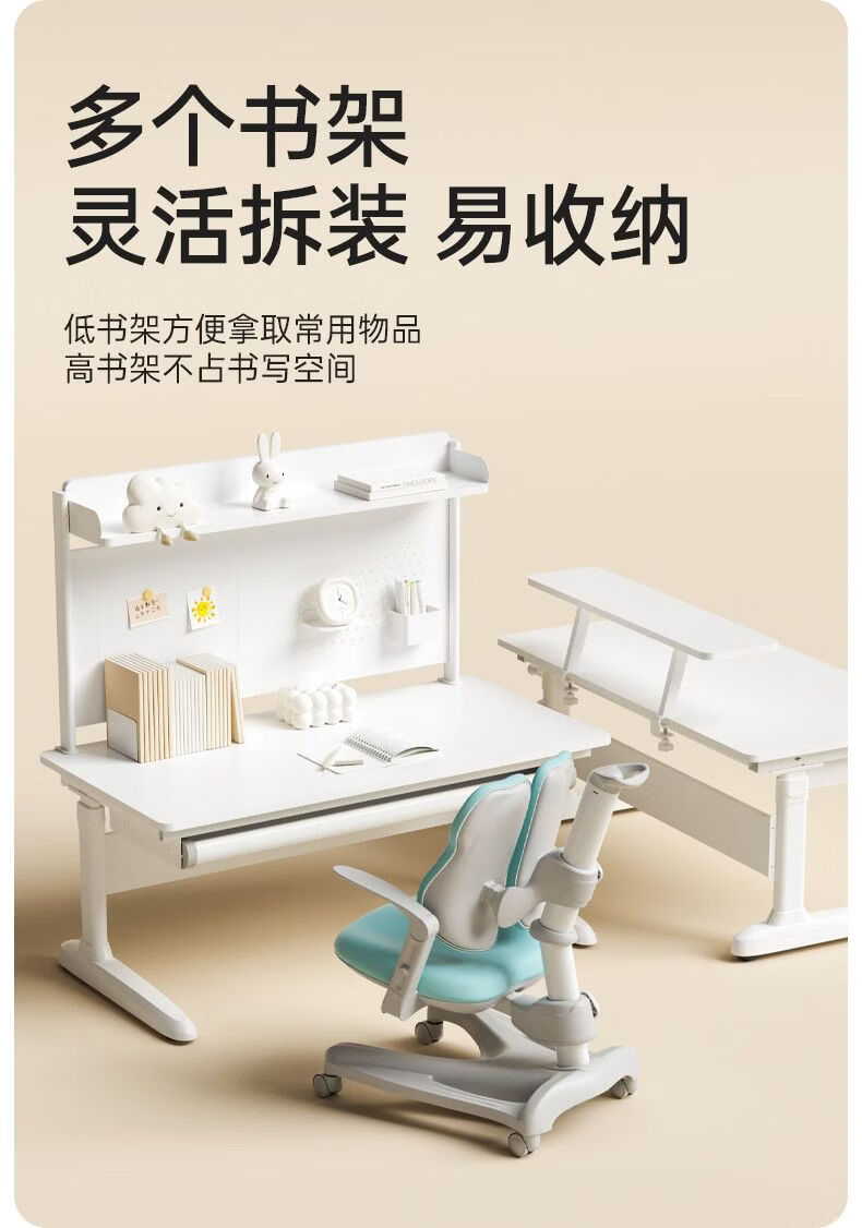 护童(Totguard)护童大白桌儿童学习桌椅平面桌现代简约学生家用写字可升降书桌P P0大白桌100cm+G102_流光橙
