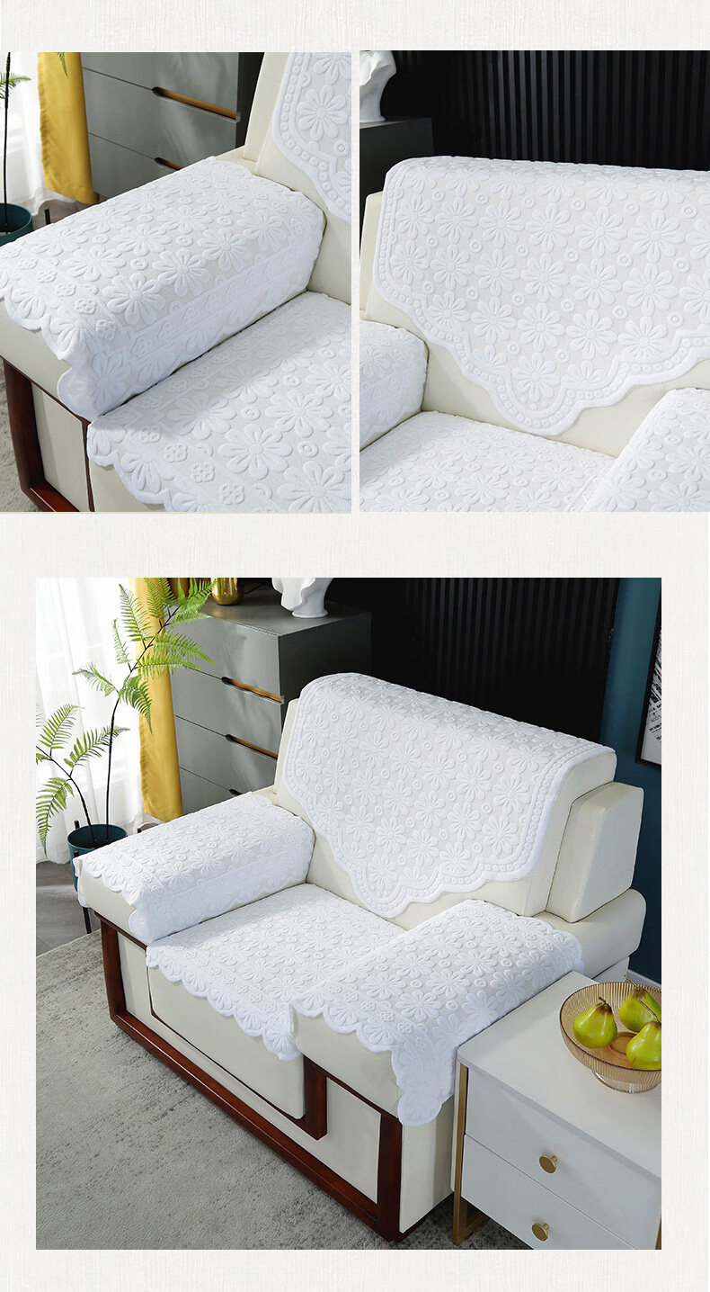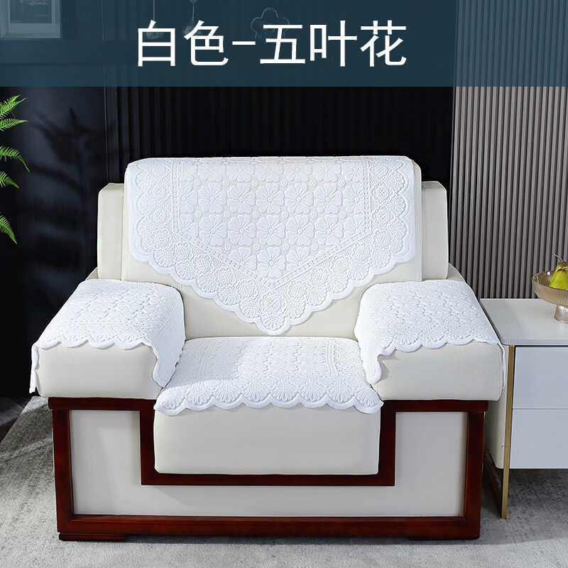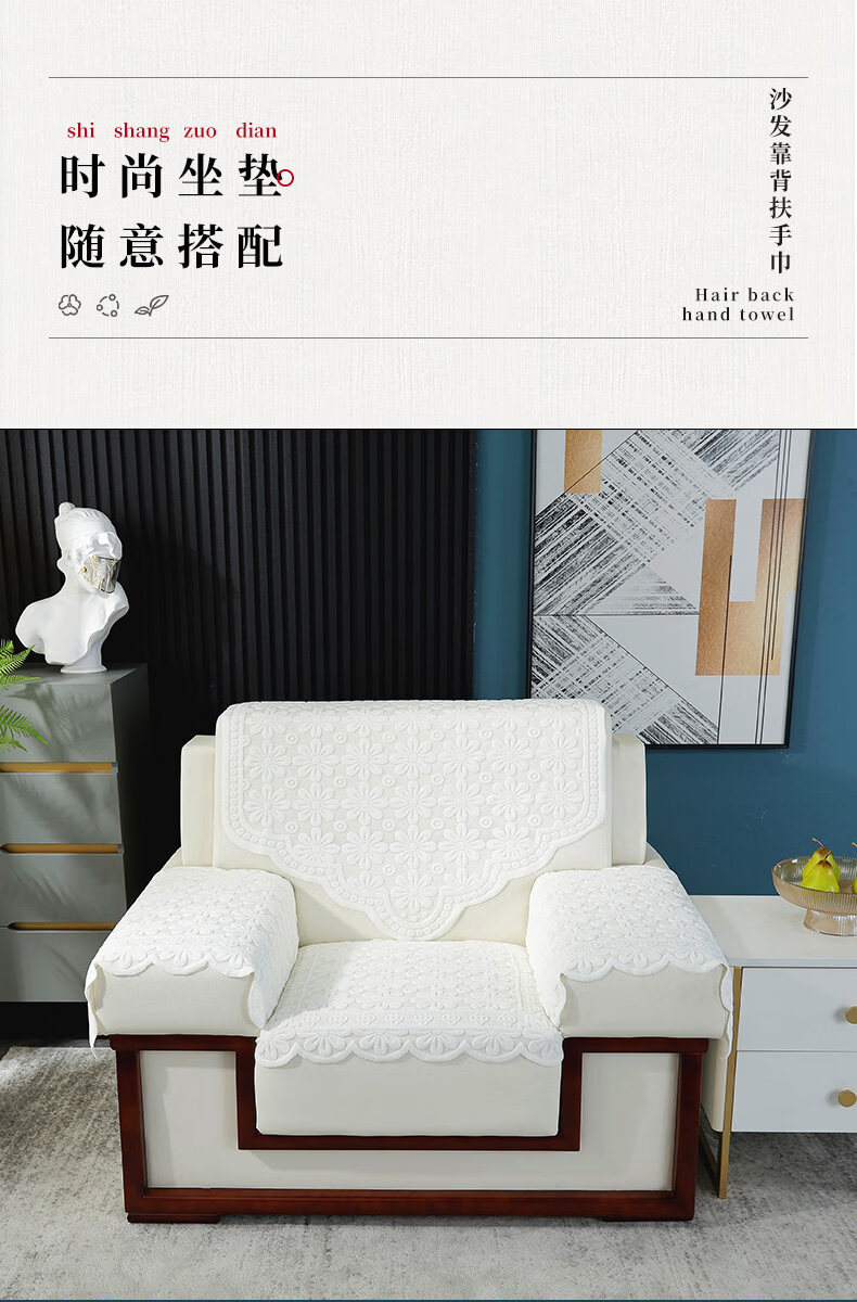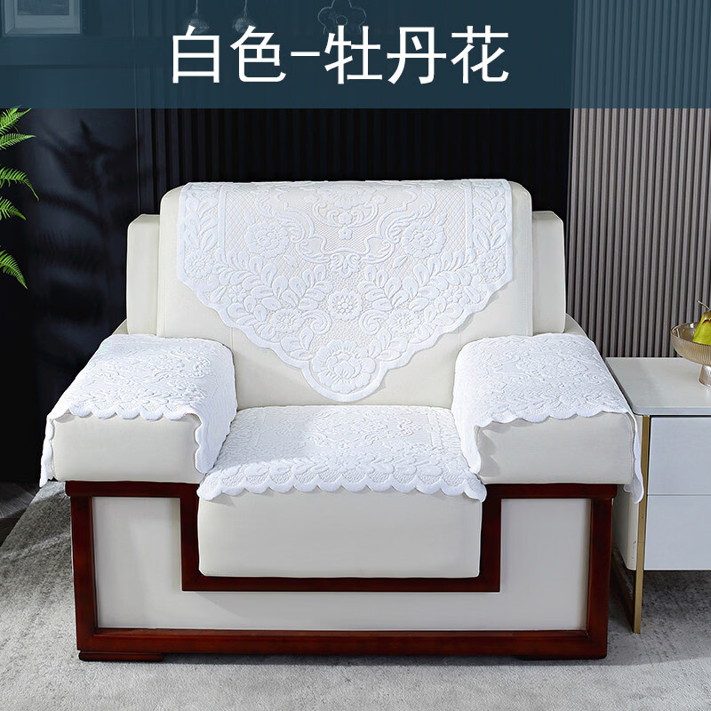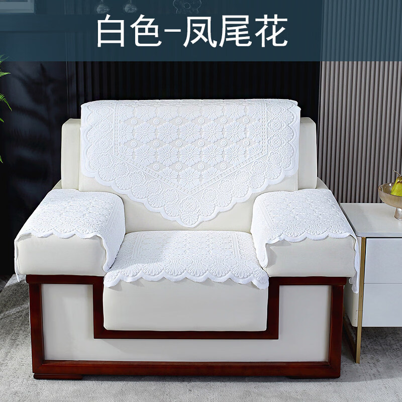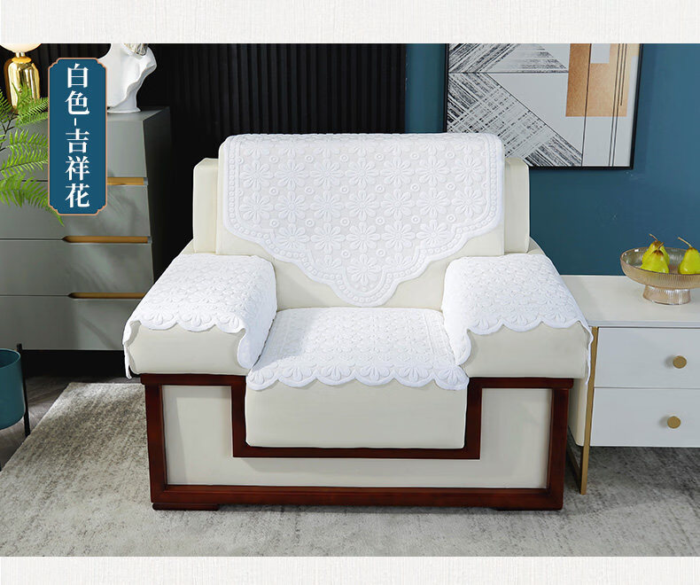 正圣会议接待室沙发巾办公单人坐垫扶手巾沙发靠背垫白色四季款四件套 吉祥花-白色【36针高品质加厚】 65cm*70cm 三角巾