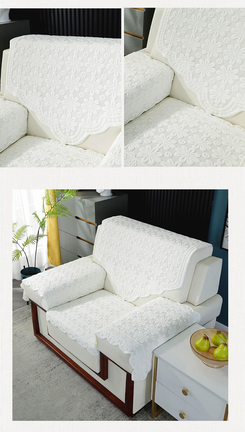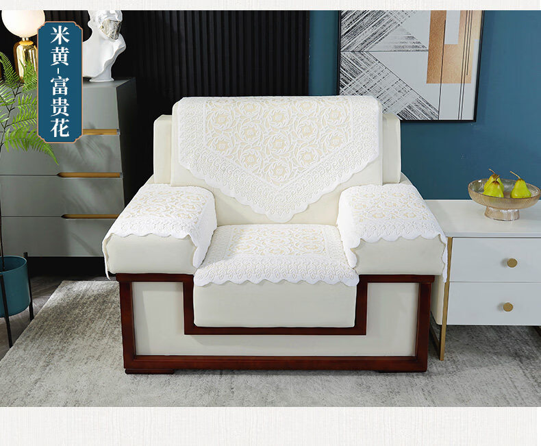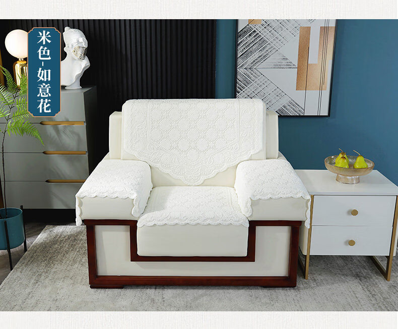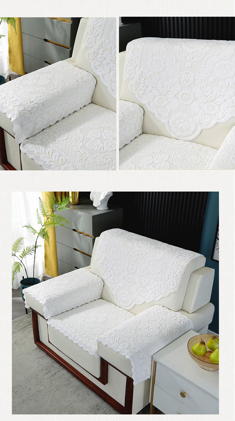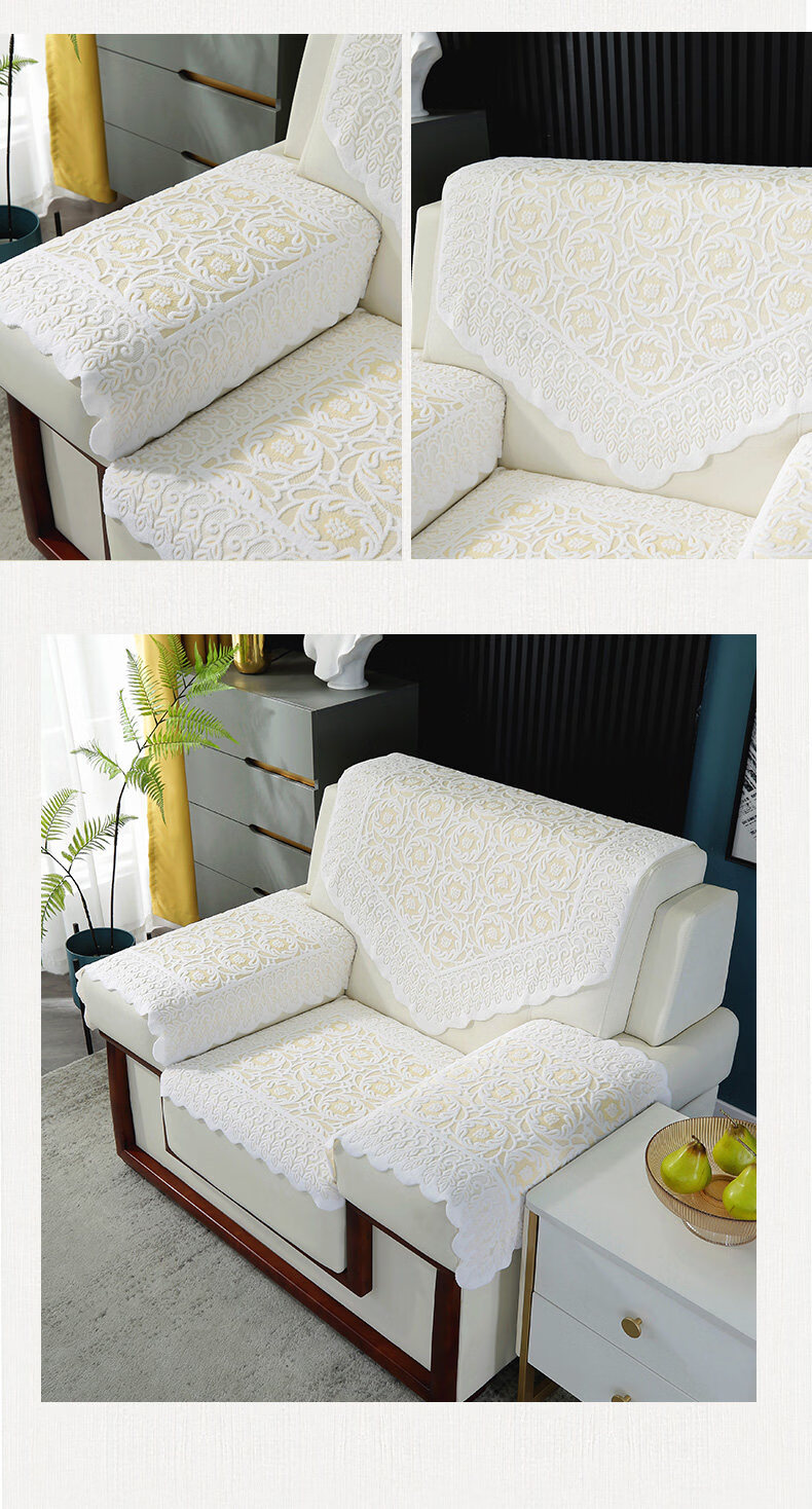 正圣会议接待室沙发巾办公单人坐垫扶手巾沙发靠背垫白色四季款四件套 吉祥花-白色【36针高品质加厚】 65cm*70cm 三角巾