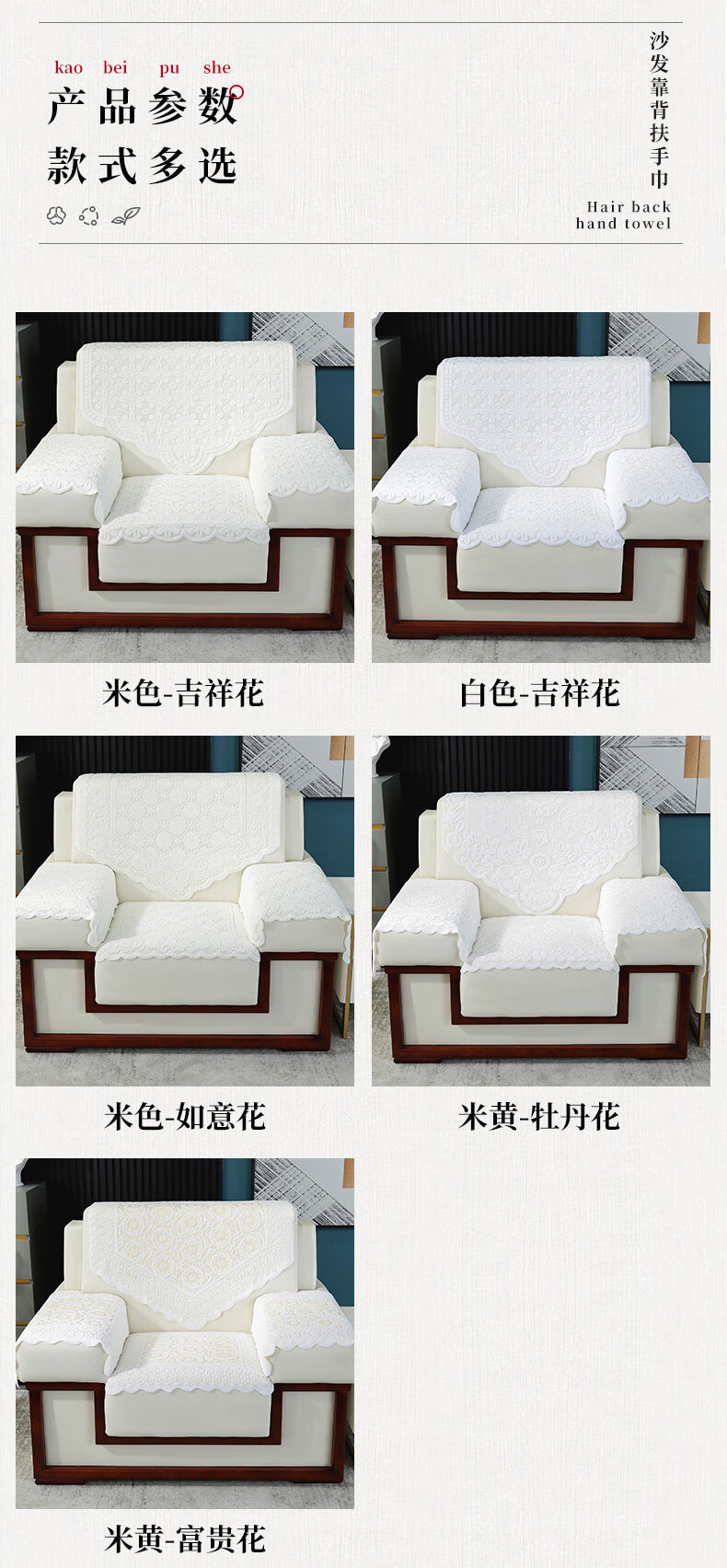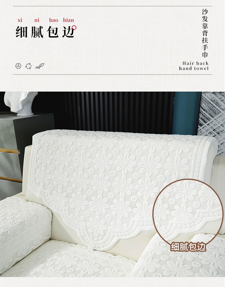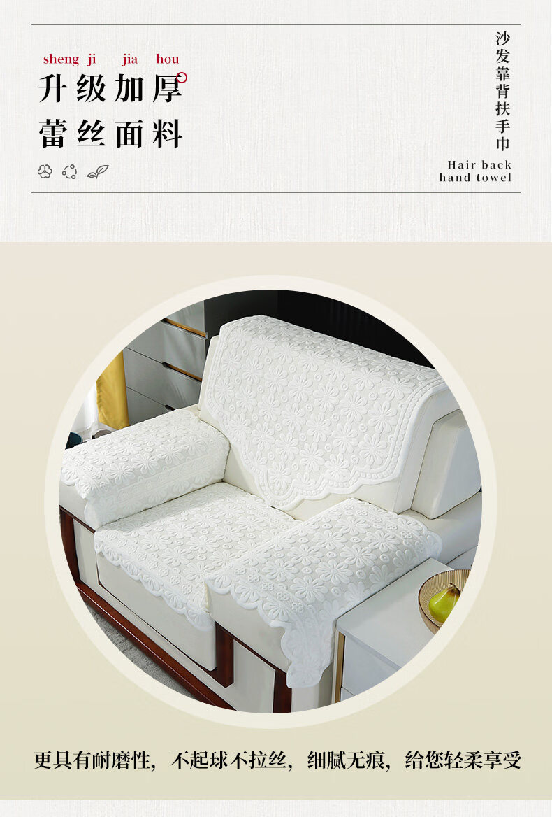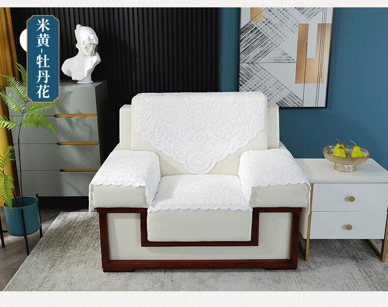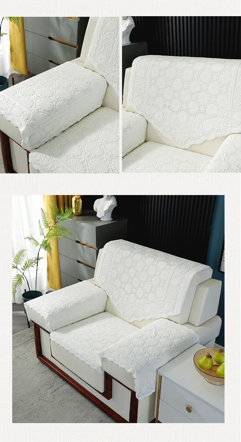 正圣会议接待室沙发巾办公单人坐垫扶手巾沙发靠背垫白色四季款四件套 吉祥花-白色【36针高品质加厚】 65cm*70cm 三角巾