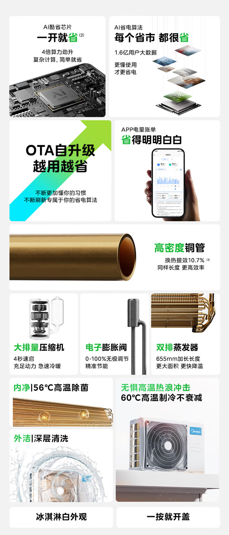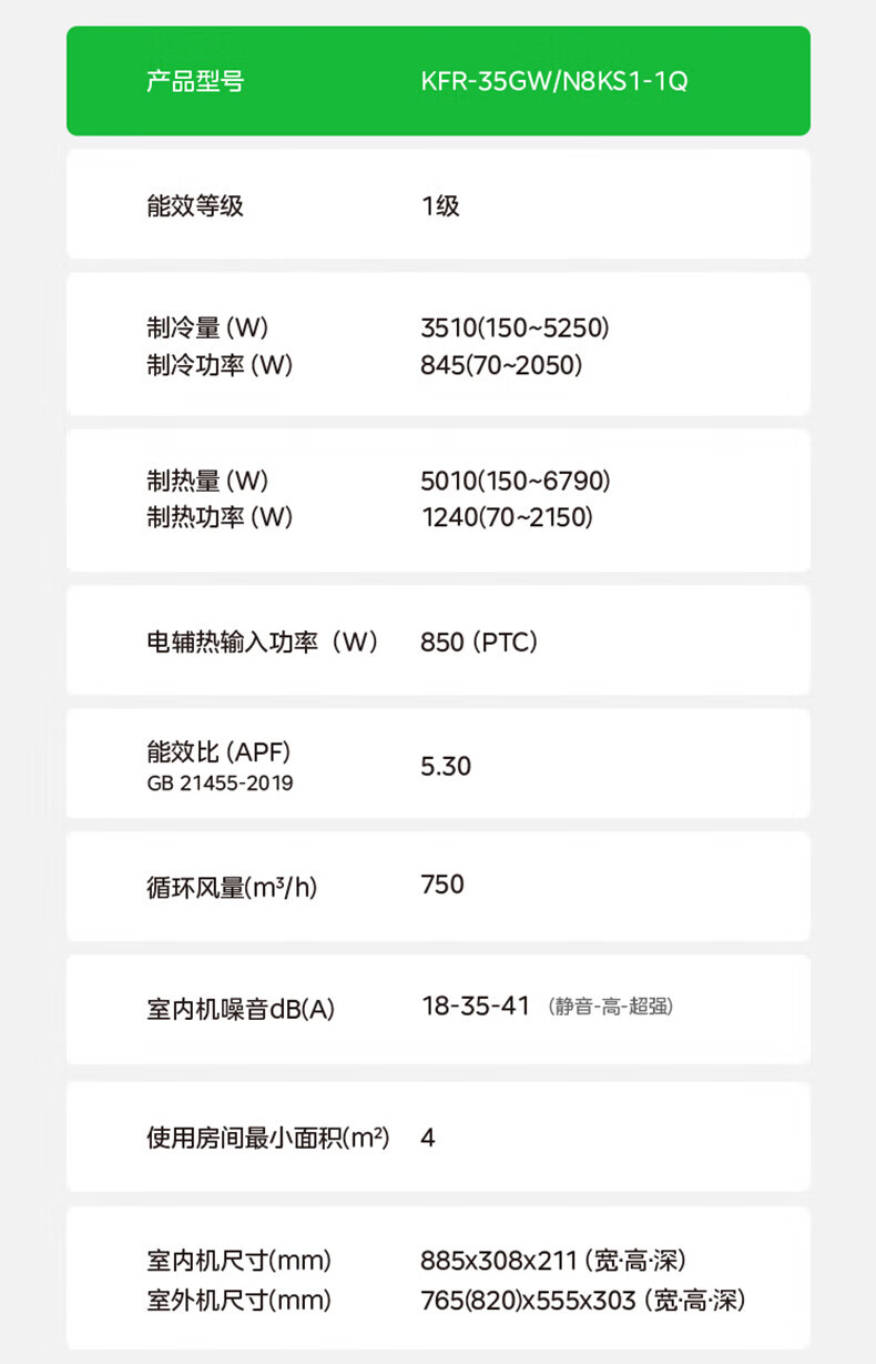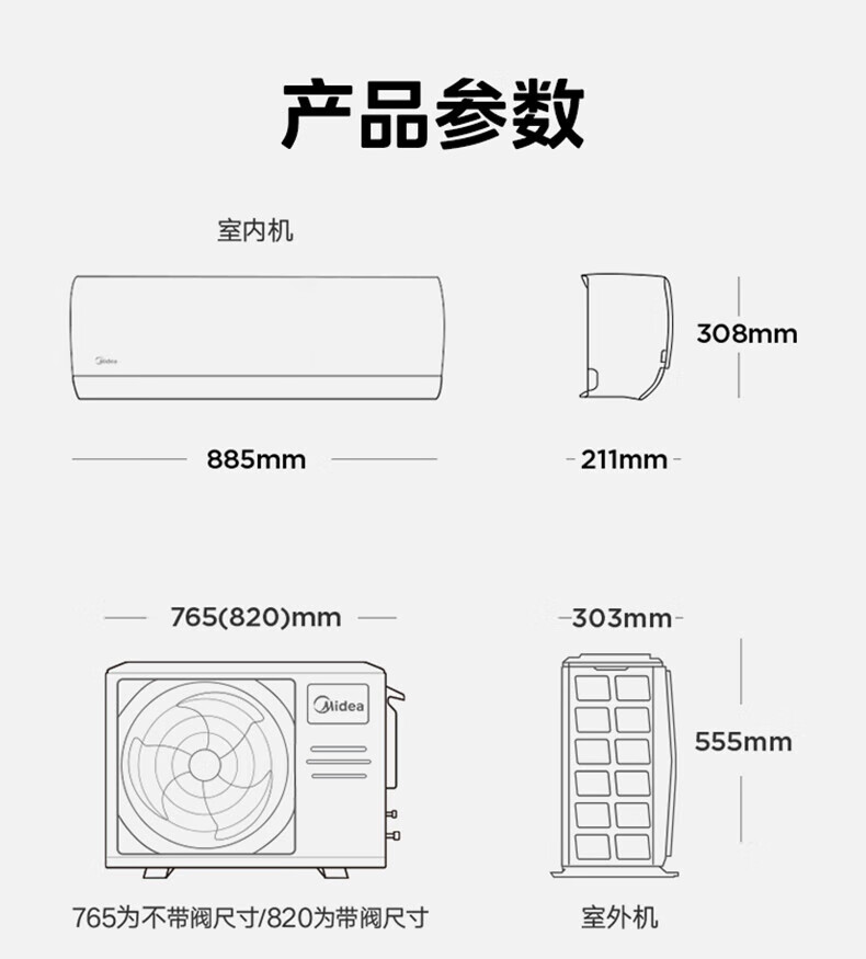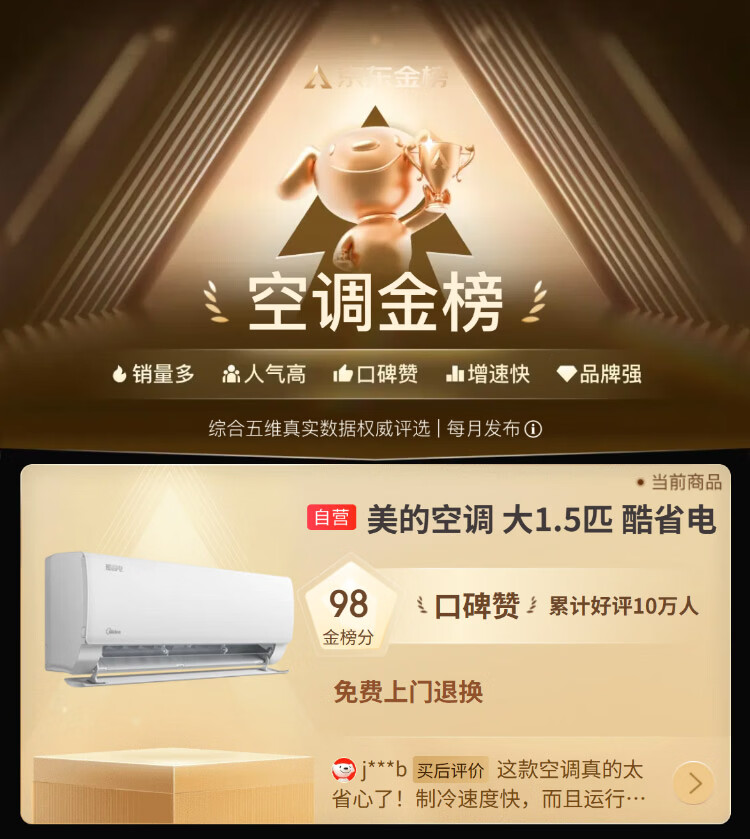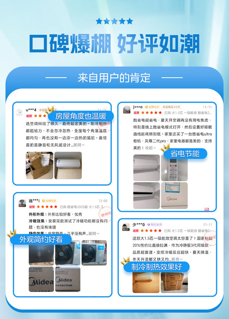 美的空调 大1.5匹 新一级能效省电 纯铜管 卧室变频冷暖 壁挂式空调挂机