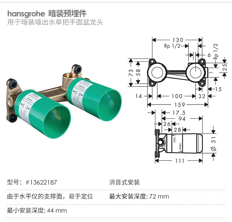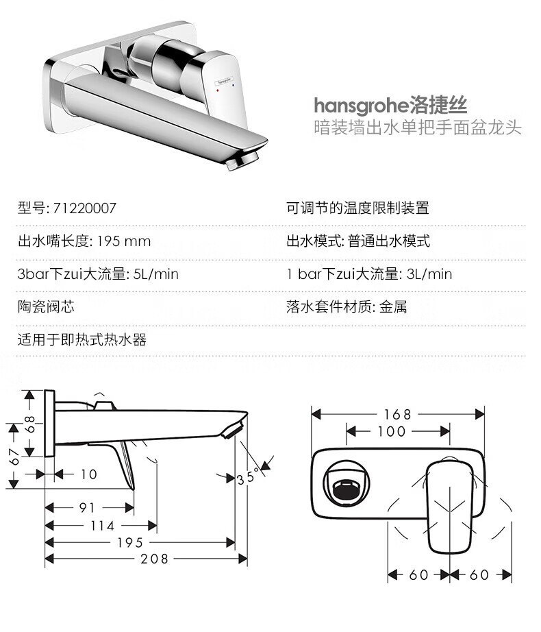 汉斯格雅(Hansgrohe)暗装台盆龙头入墙预埋嵌入式洗脸盆面盆冷热水墙出水龙头 洛捷丝暗装龙头71220007【预售】