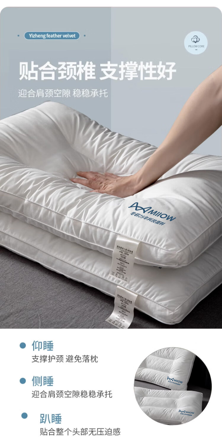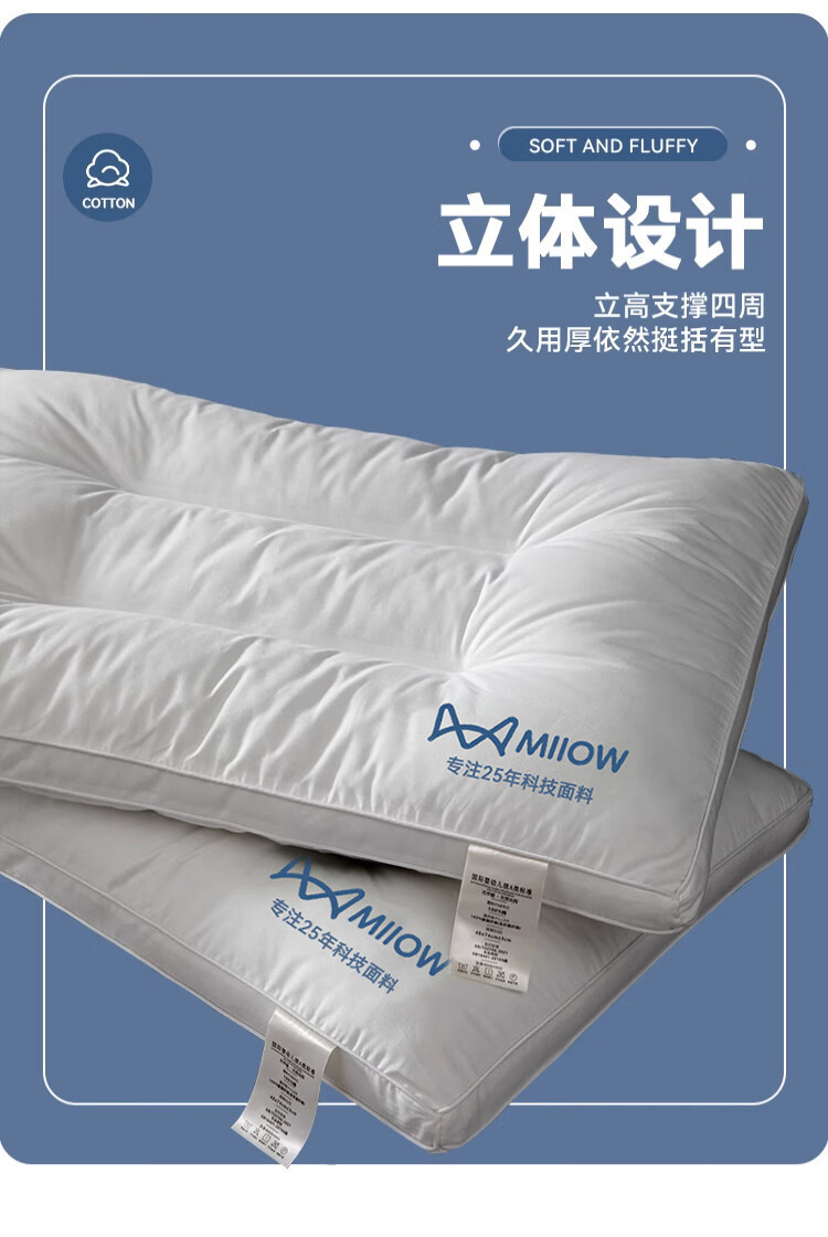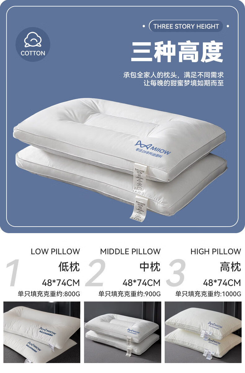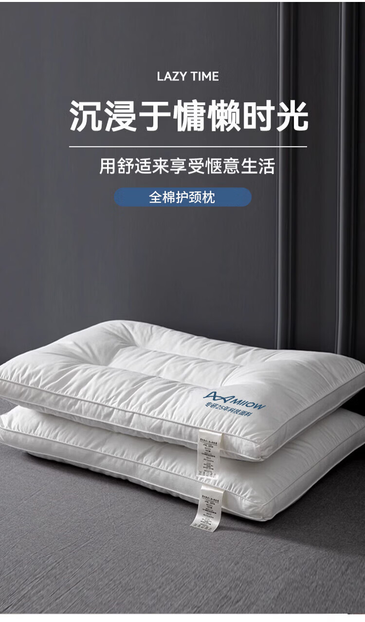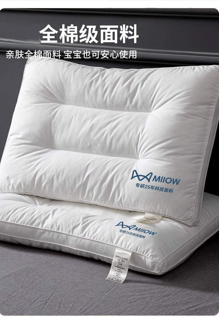 猫人(MiiOW)全棉枕头枕芯家用护颈椎助睡眠学生宿舍单人酒店枕一对装纯棉整头 全棉面料儿童枕30*50 单只 5-8cm