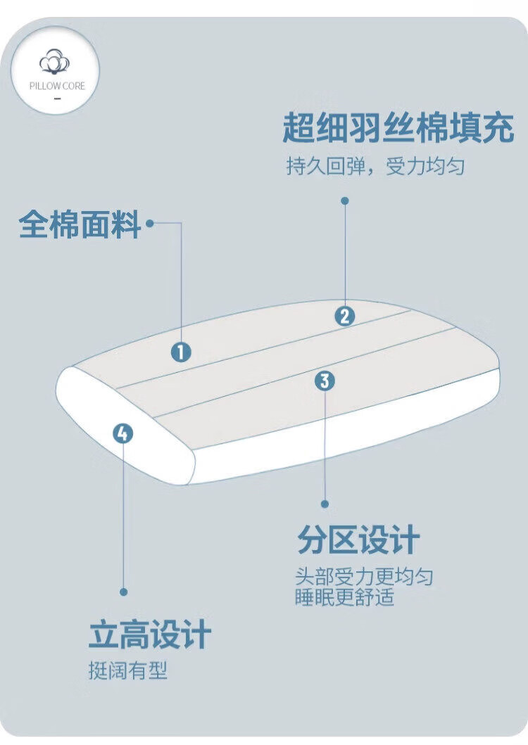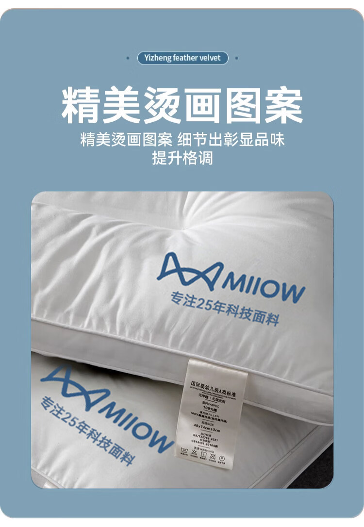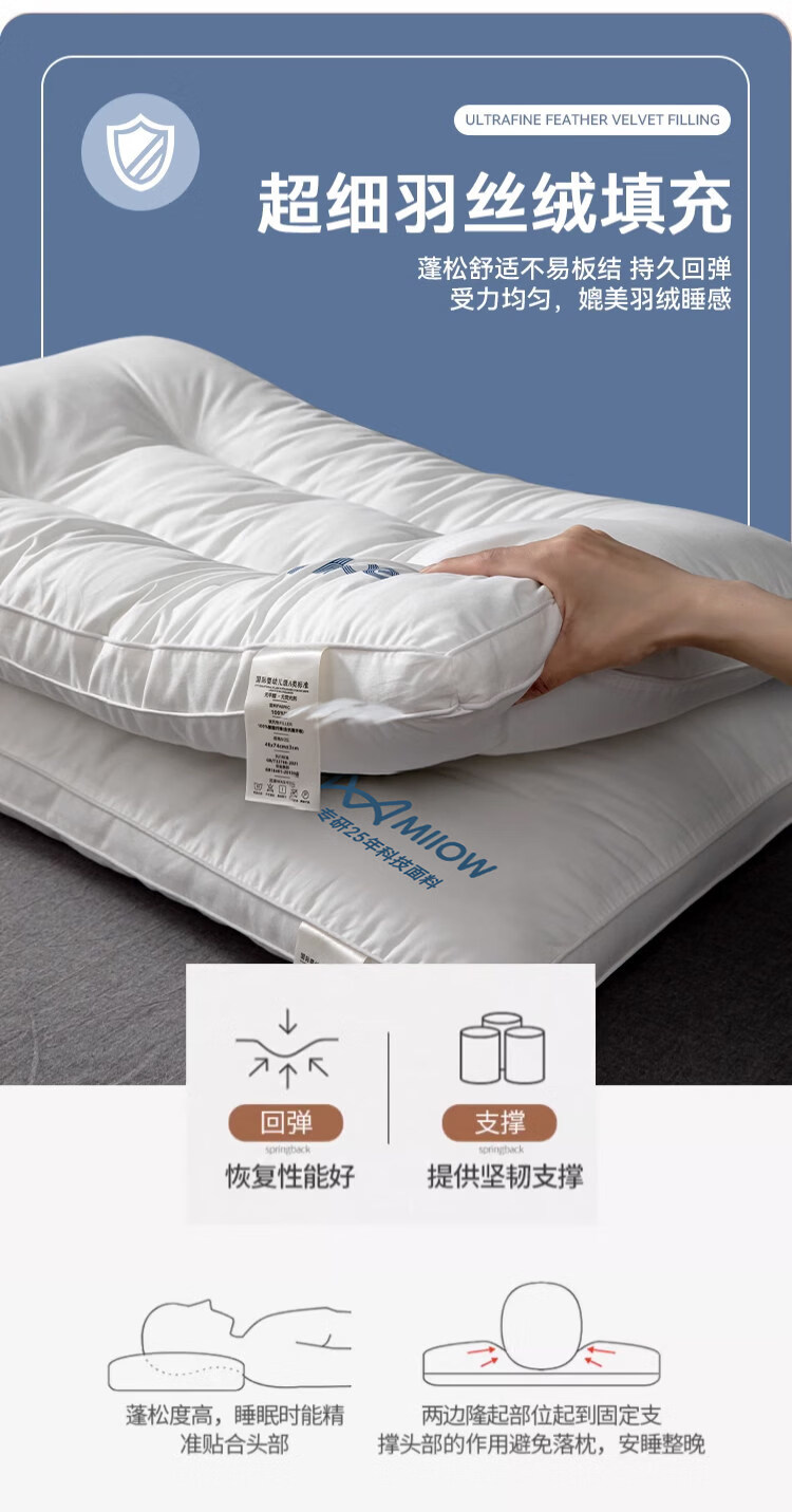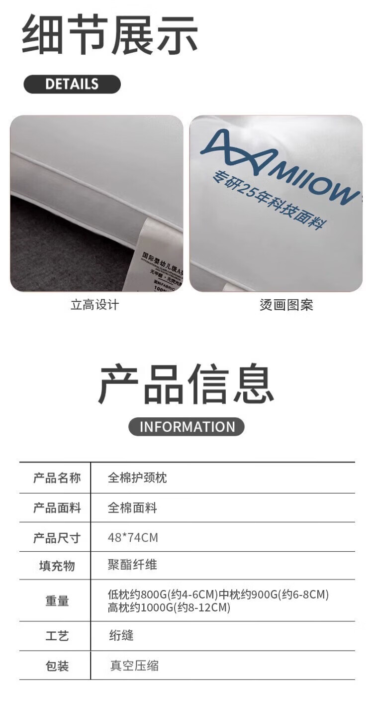猫人(MiiOW)全棉枕头枕芯家用护颈椎助睡眠学生宿舍单人酒店枕一对装纯棉整头 全棉面料儿童枕30*50 单只 5-8cm