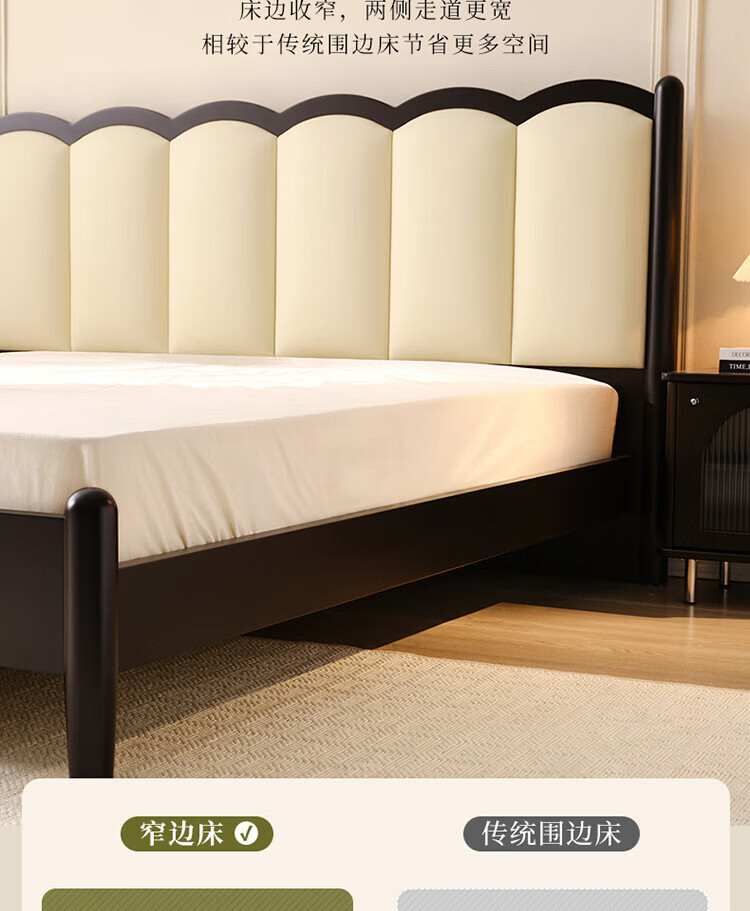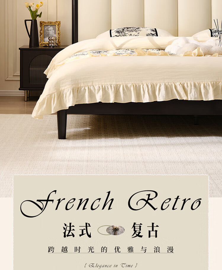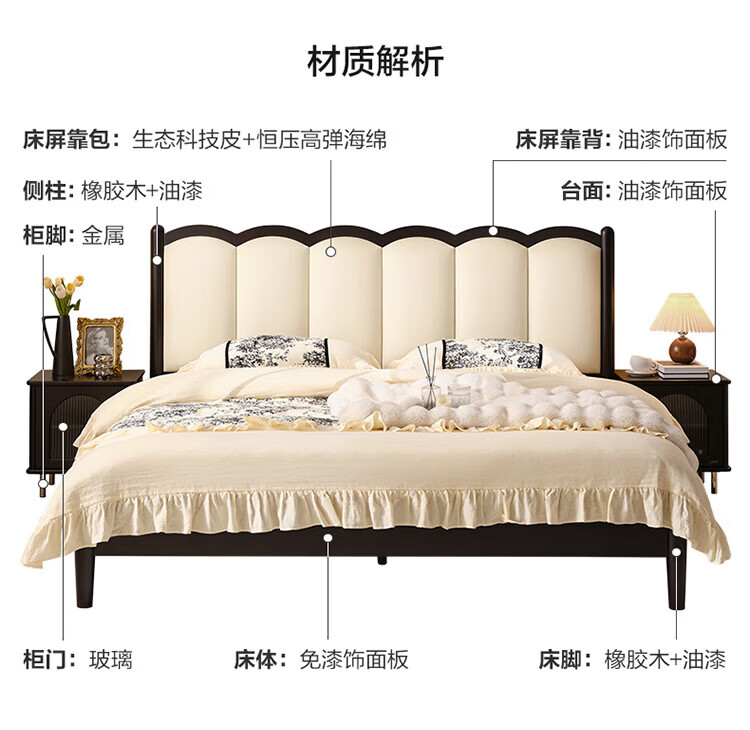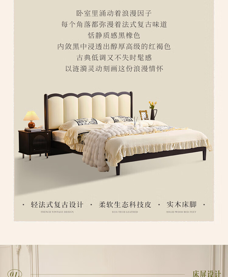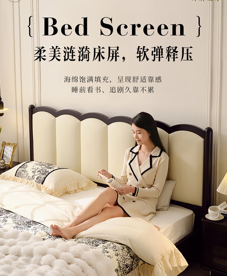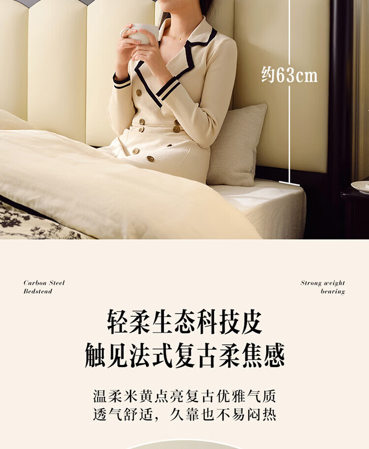 全友(QUANU)家居法式复古风皮艺床主卧室实木脚双人软包床头储物功能床小户型 复古软包床 1.5米