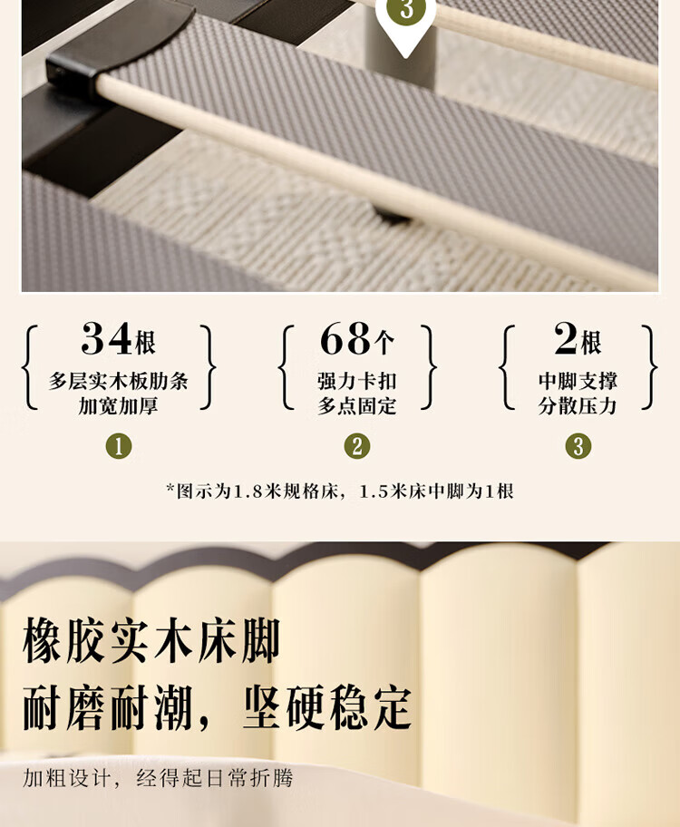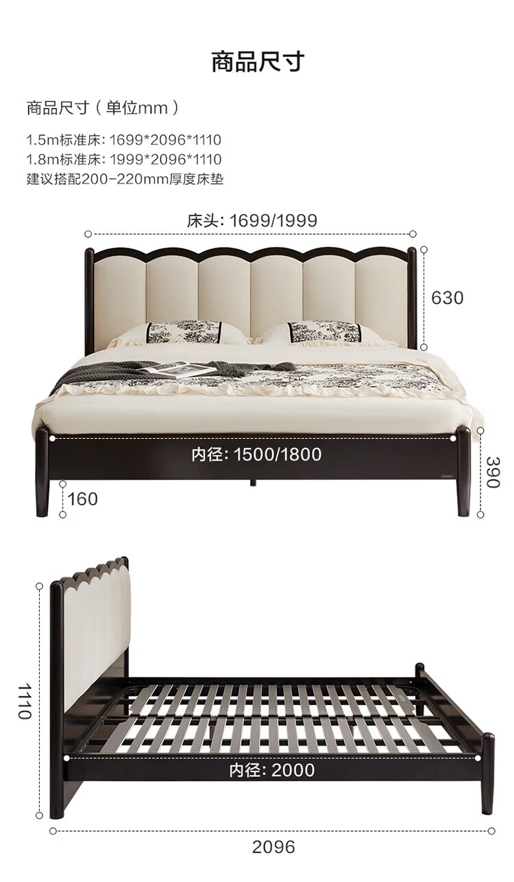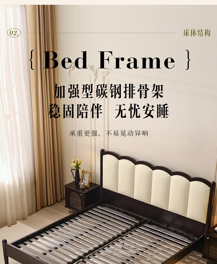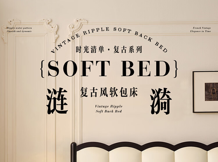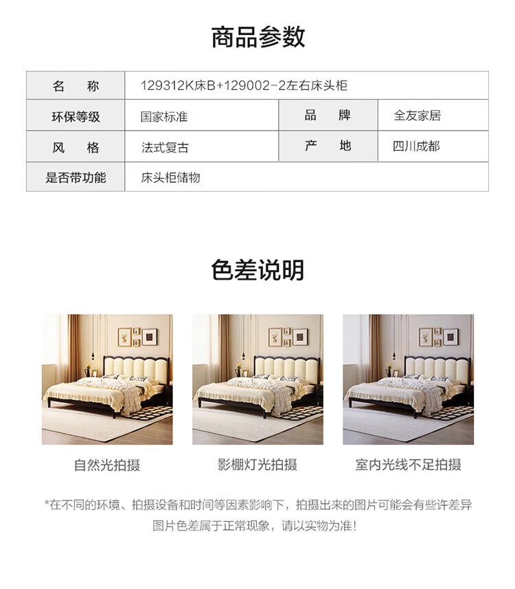 全友(QUANU)家居法式复古风皮艺床主卧室实木脚双人软包床头储物功能床小户型 复古软包床 1.5米