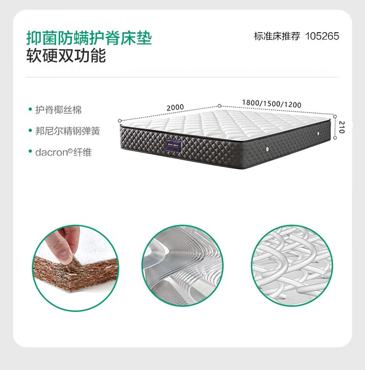 全友家居 独立袋装弹簧乳胶椰棕床垫1.8米x2米席梦思酒店床垫偏硬护脊