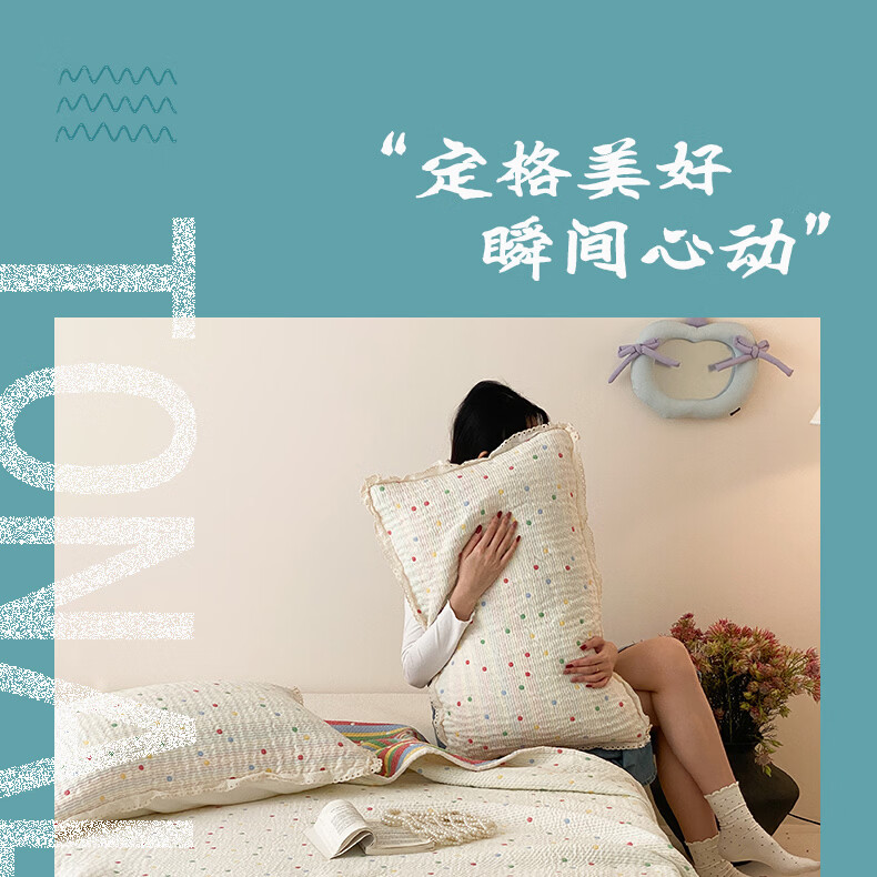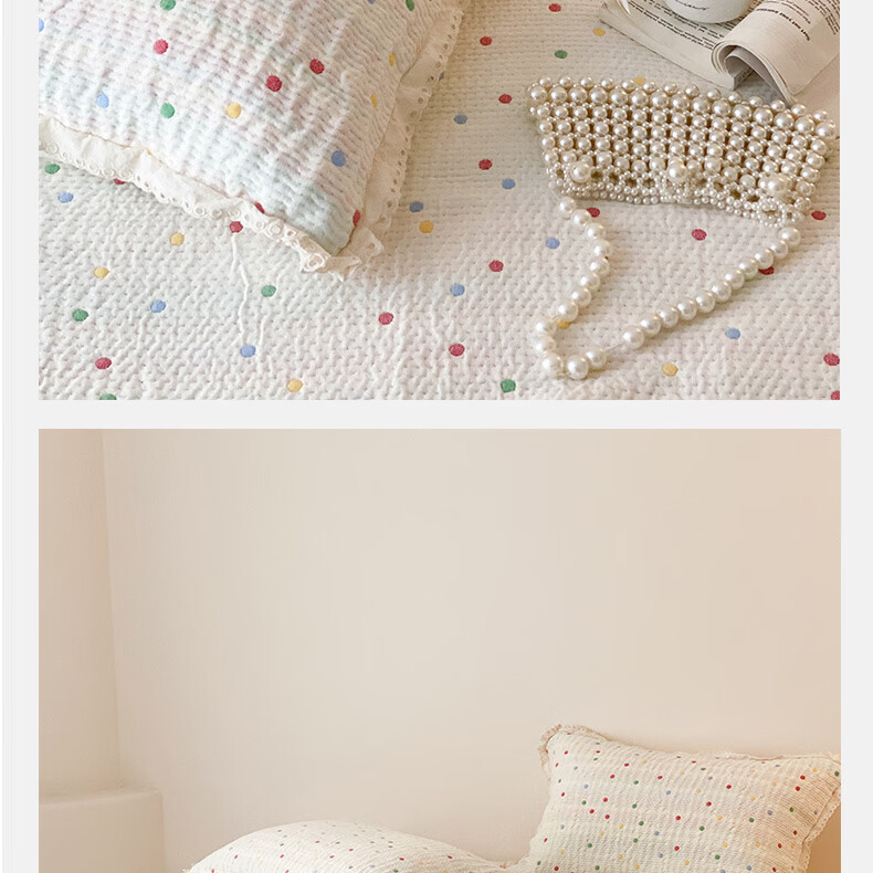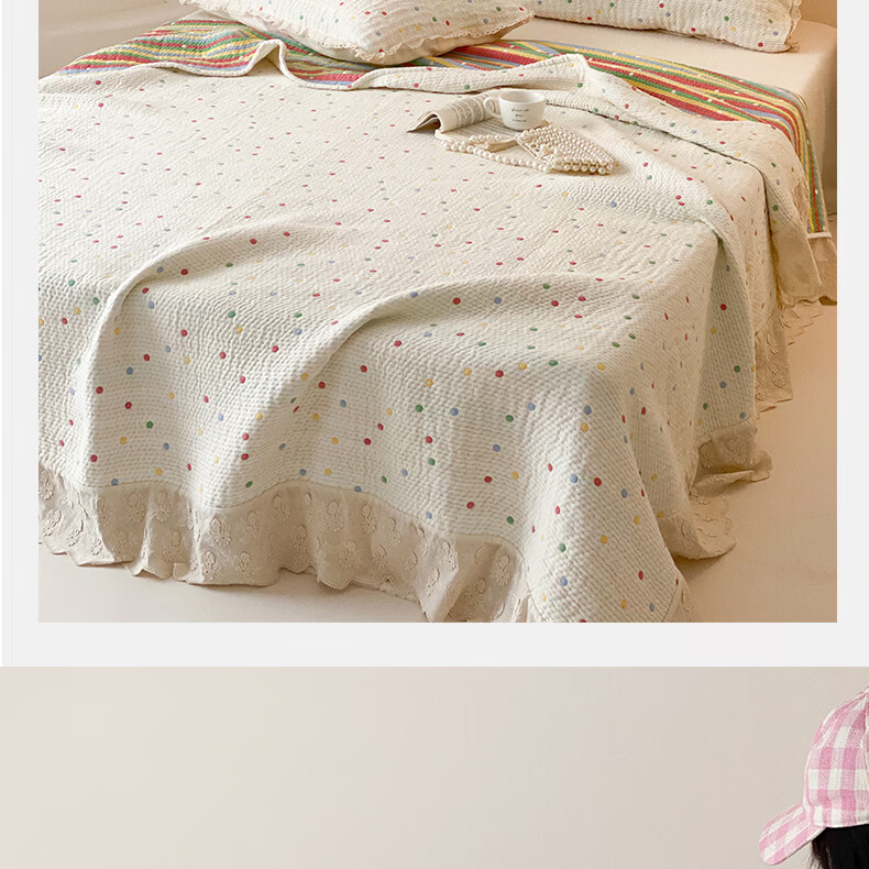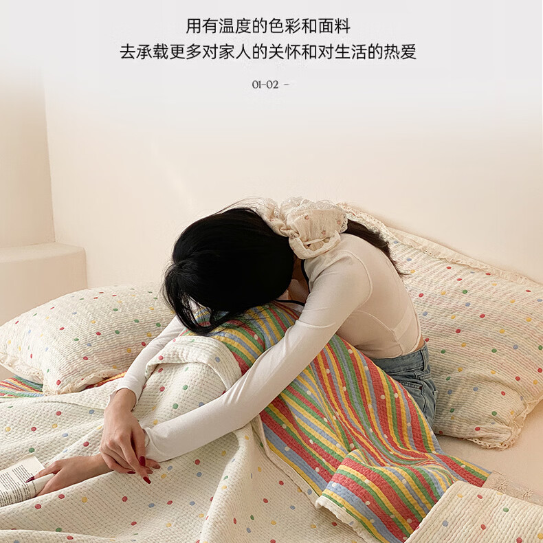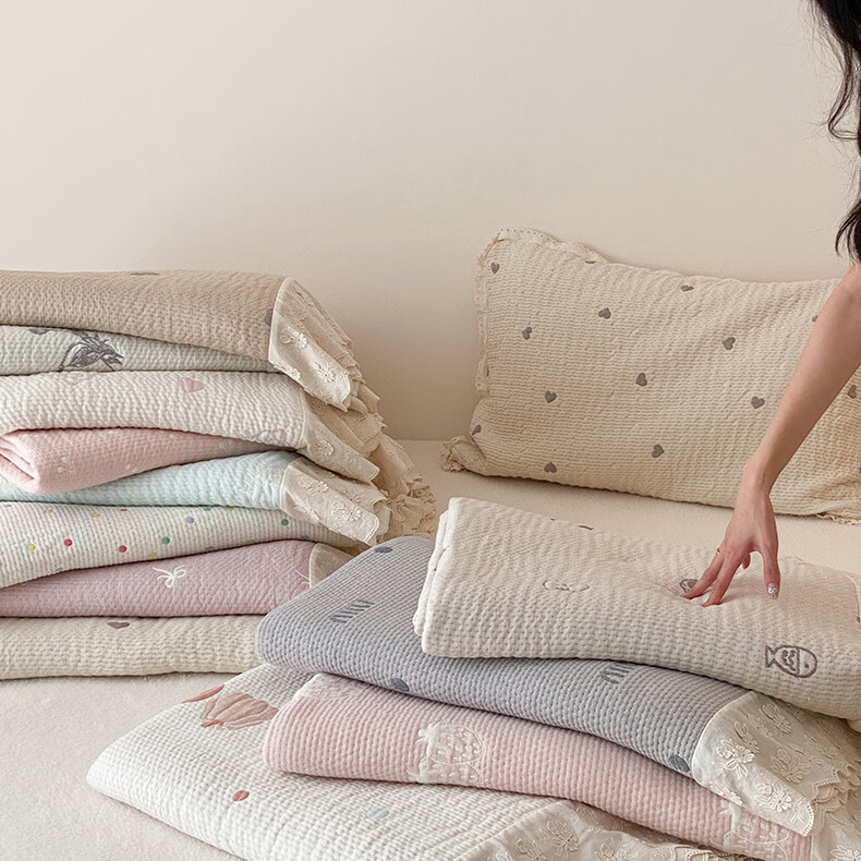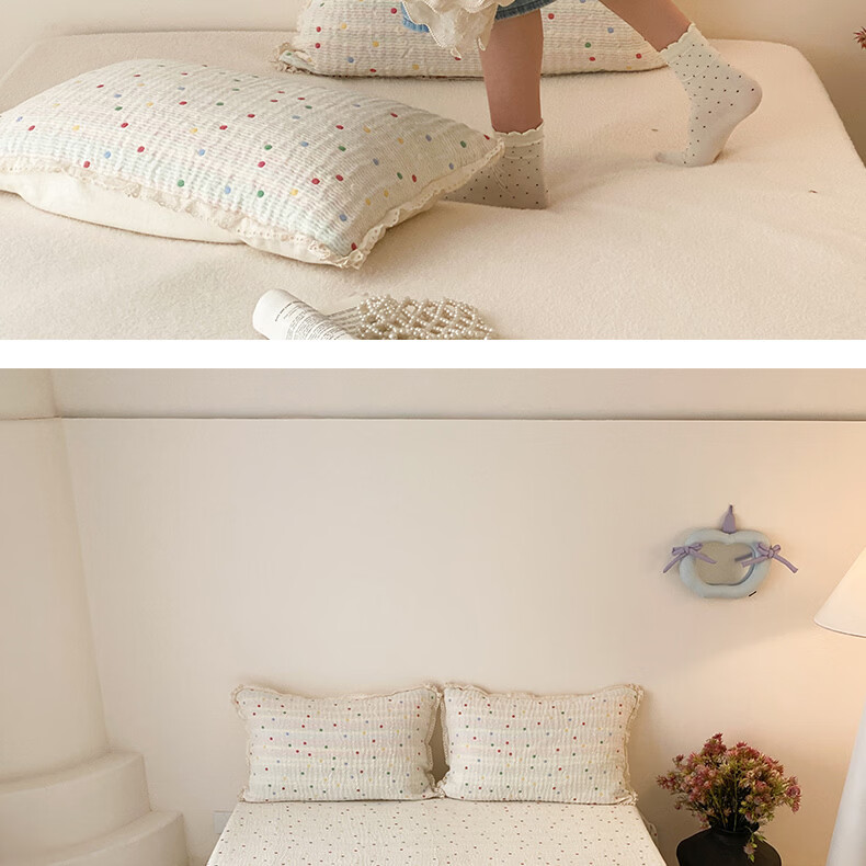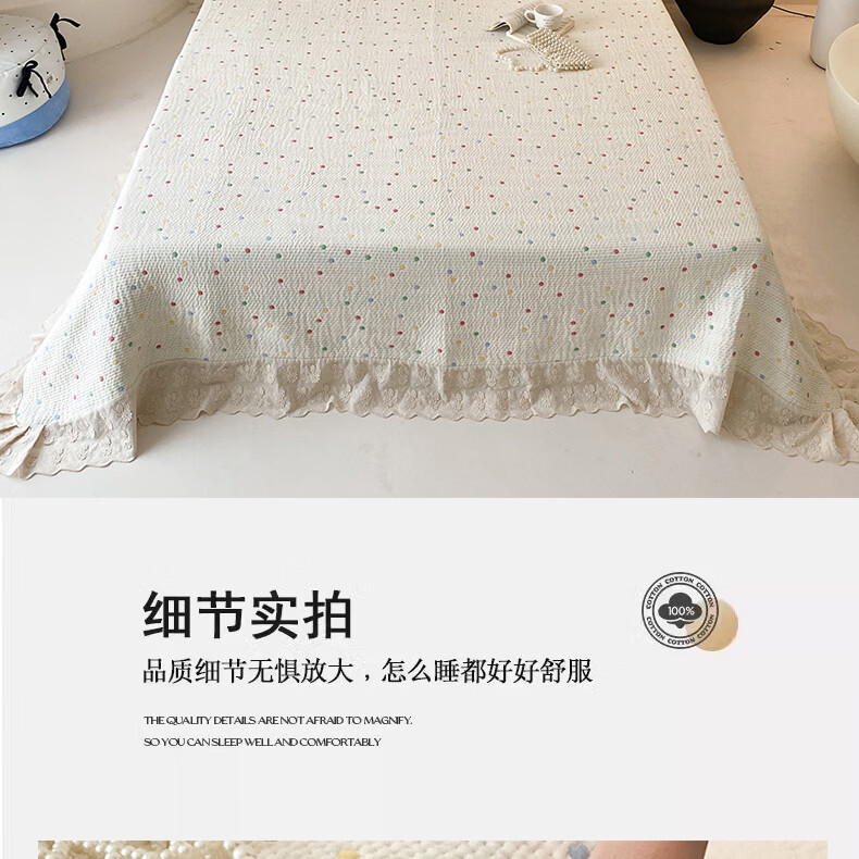 无印良品ins韩系全棉纱布床单1.8x2米床纯棉100%四季裸睡夹棉床盖单件家用 奶油波点-灰【色织花边工艺】 三件套: 250cm*230cm 床盖+枕套*2