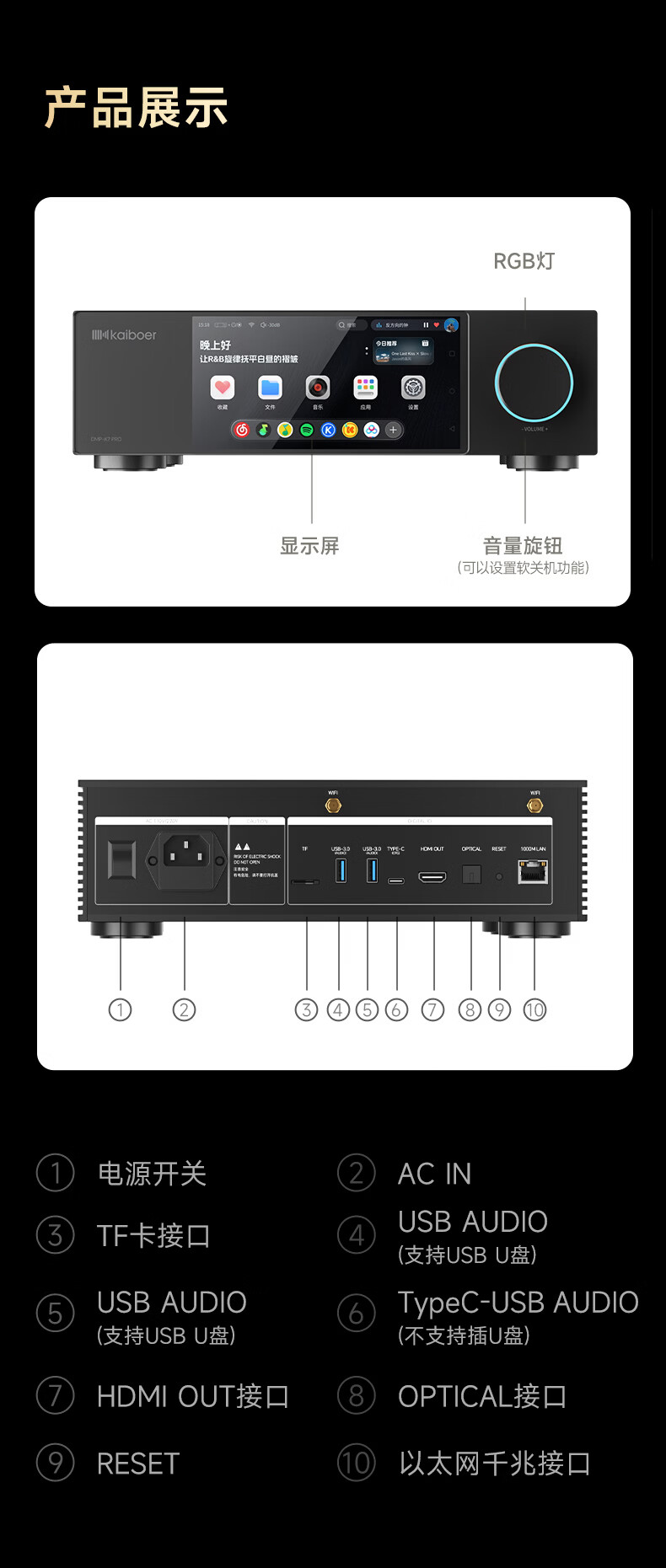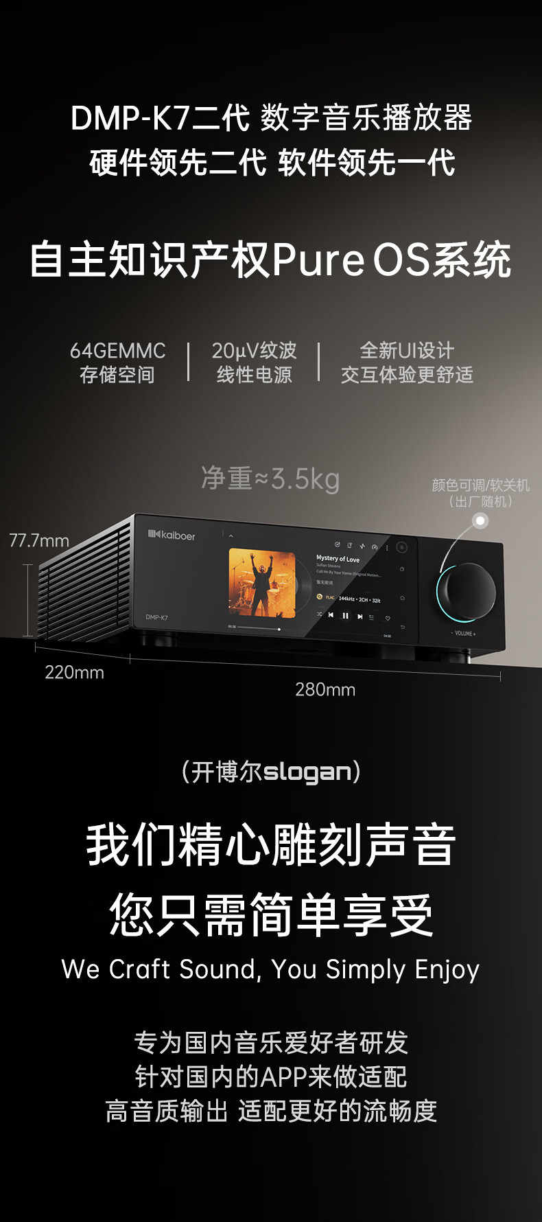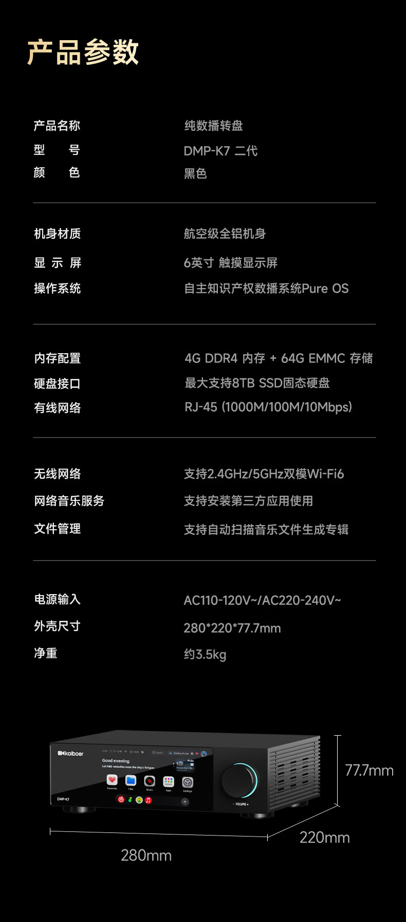 开博尔(Kaiboer)DMP-K7数播无损播放器流媒体数字音乐播放器高保真网络数播数字转盘