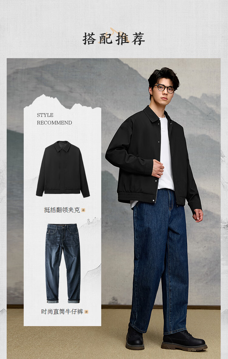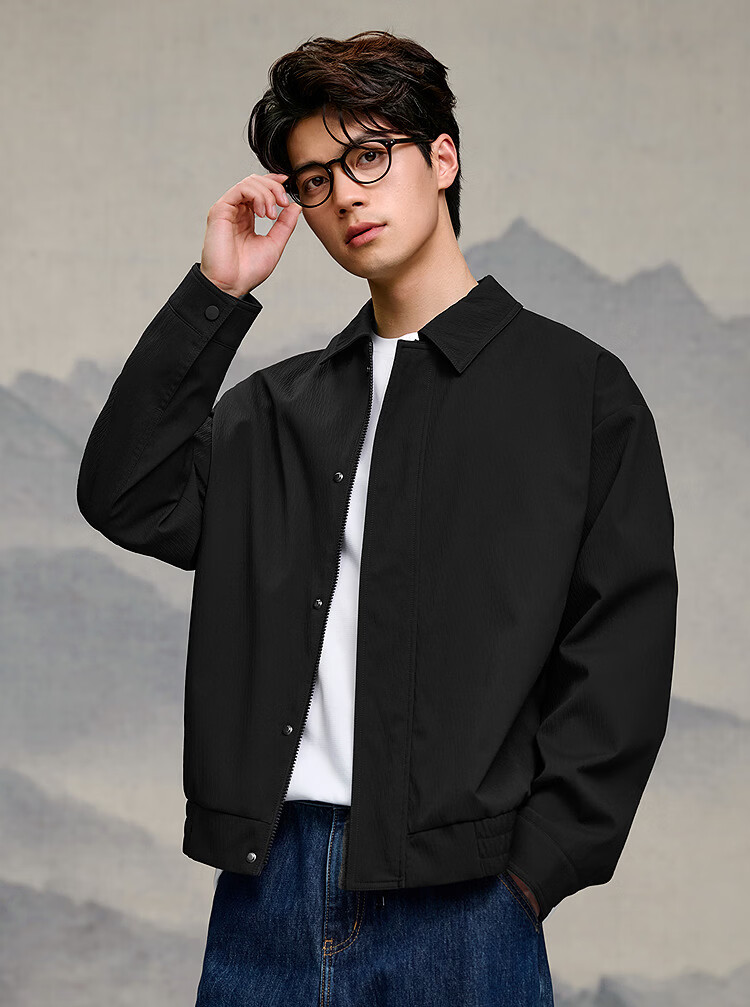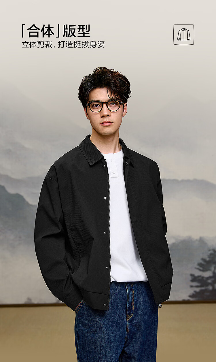 海澜之家(HLA)夹克男26新款山不在高系列翻领挺括外套春季 黑色06 L 175/92A 推荐137~150斤
