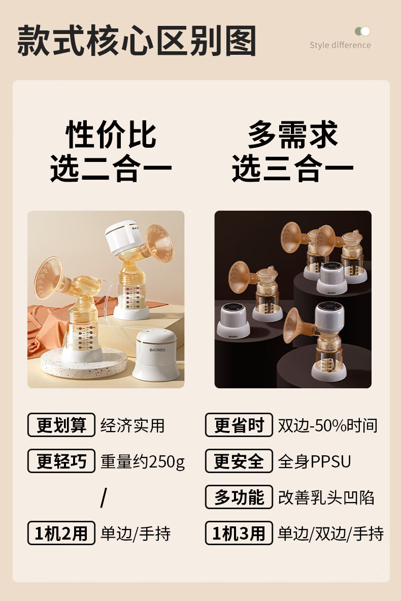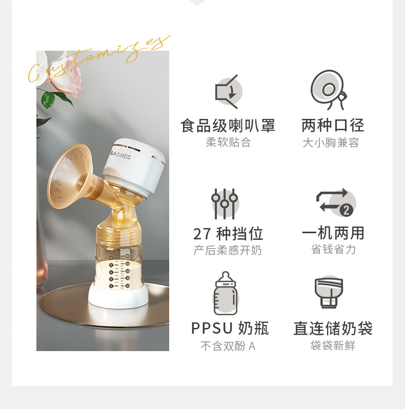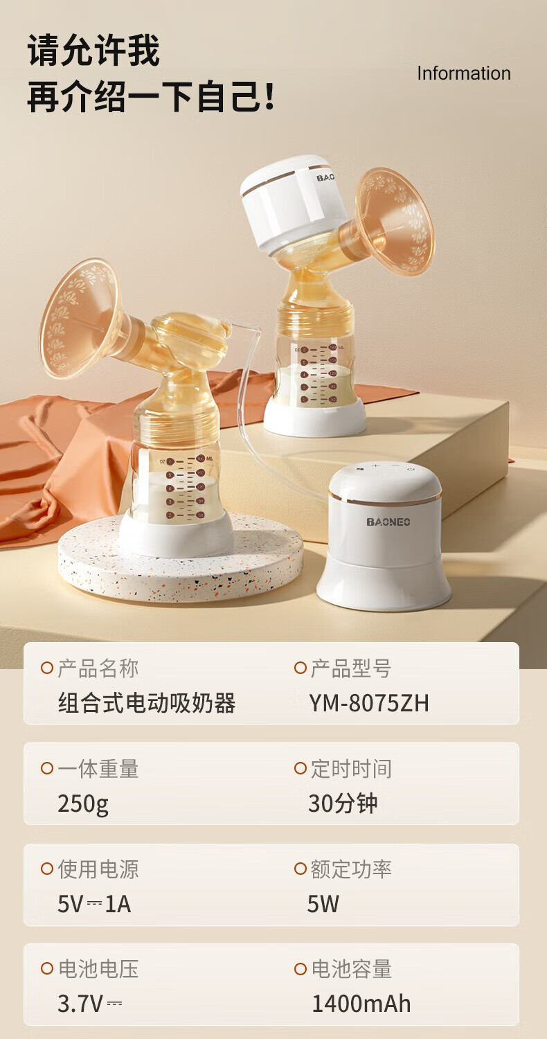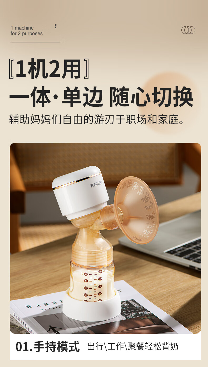 贝能(Baoneo)吸奶器单边挤奶电动一体两用自动孕产无痛按摩吸力大PPSU款 28mm
