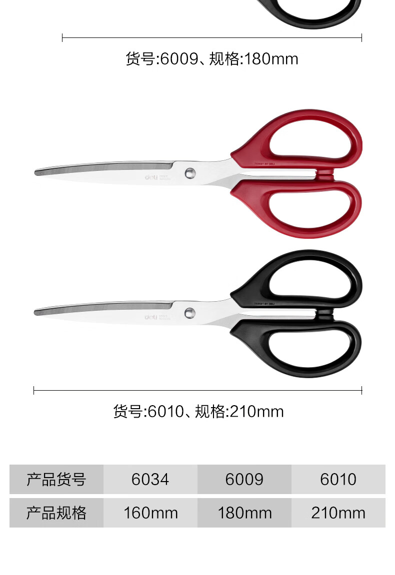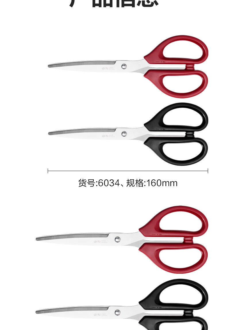 得力(deli)【热门商品】160mm办公生活家用剪刀 小剪子手工剪纸刀 办公用品 黑色6034
