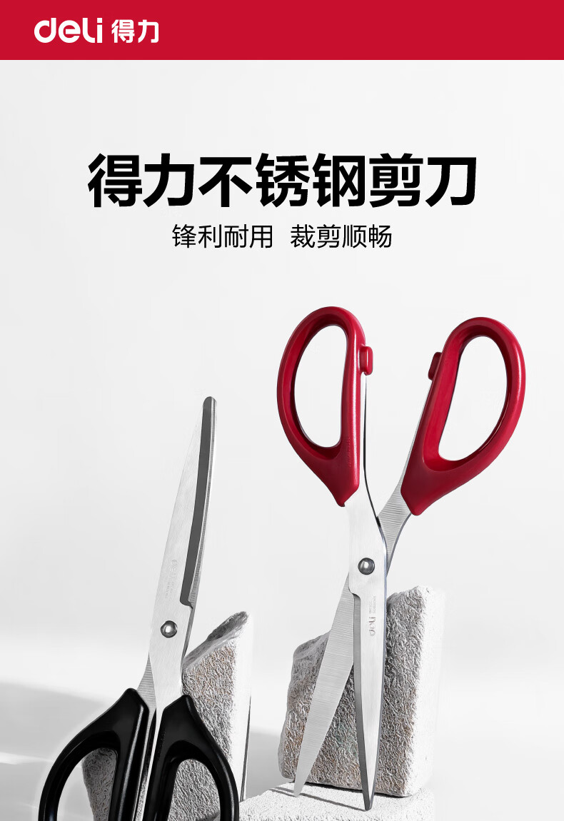 得力(deli)210mm黑刃防锈剪刀 办公家用生活手工剪纸刀 办公用品 蓝色6010-S