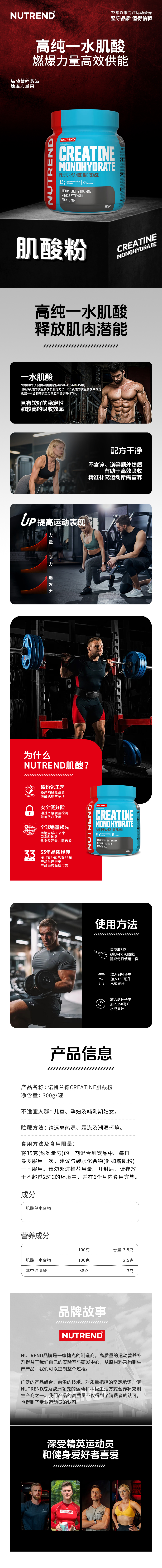 NUTREND一水肌酸 300克肌酸 运动健身 增强耐力爆发力 捷克进口