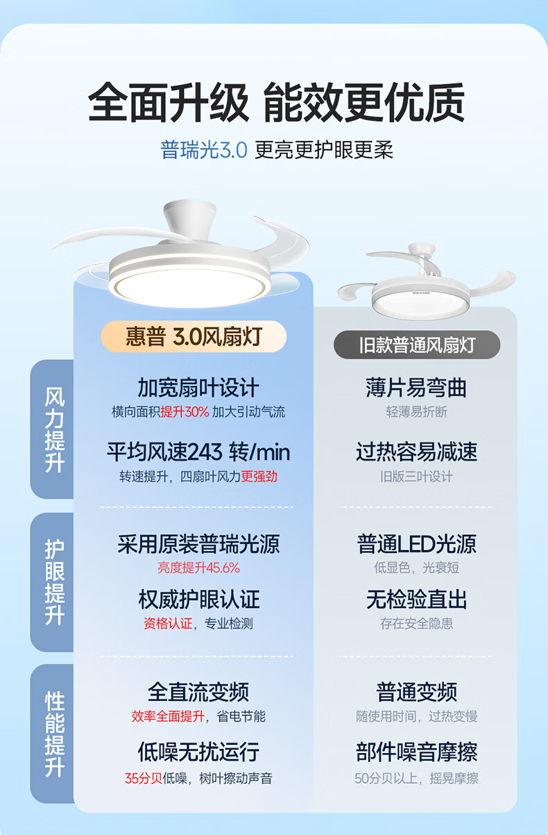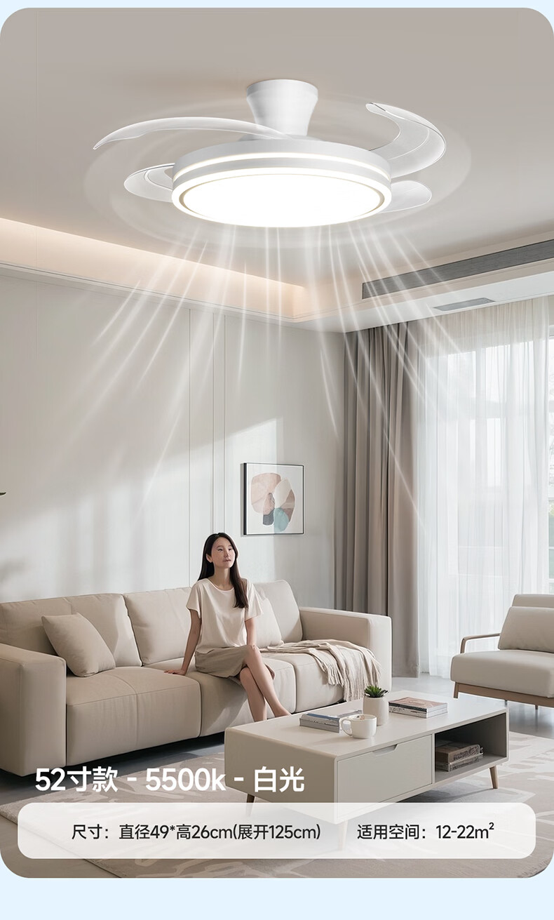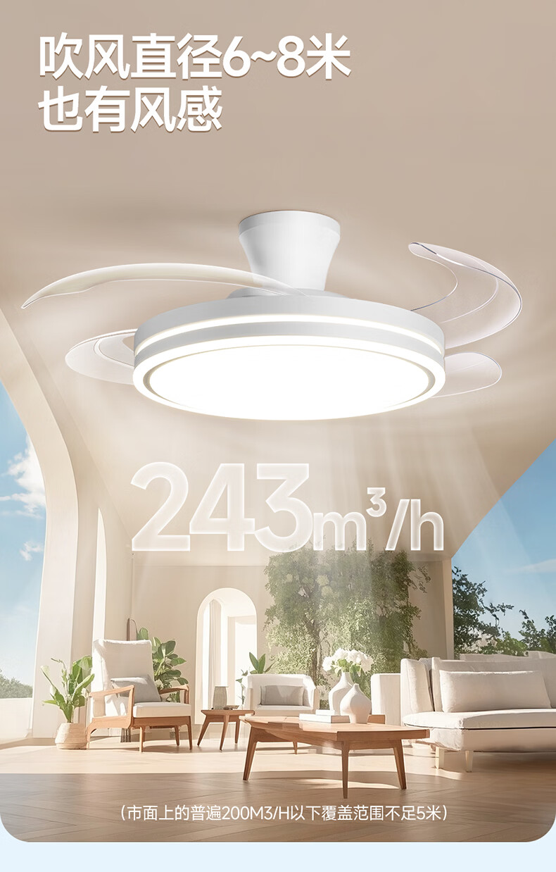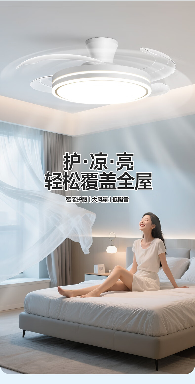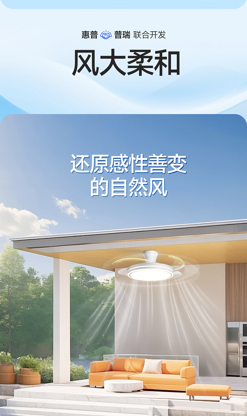惠普普瑞护眼隐形扇餐厅遥控调光一体吊扇风扇灯中山灯具包安装臻之光