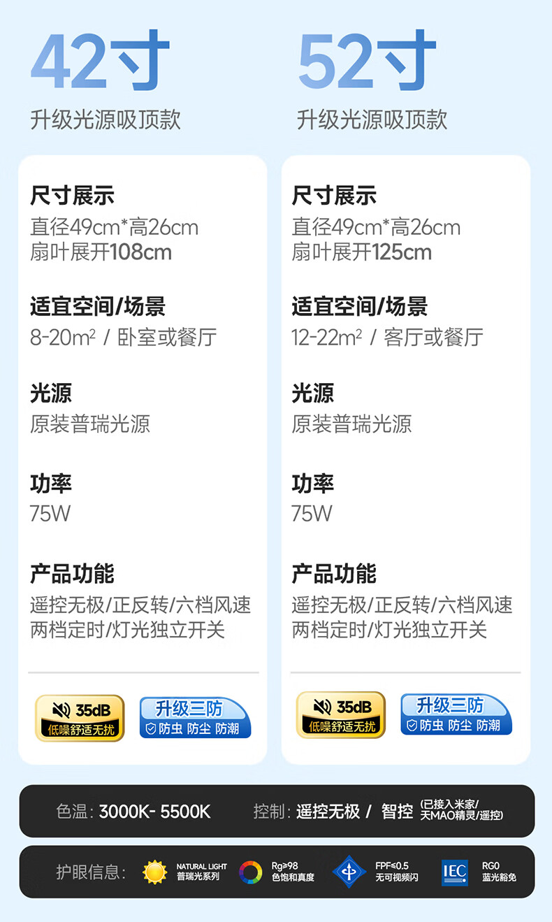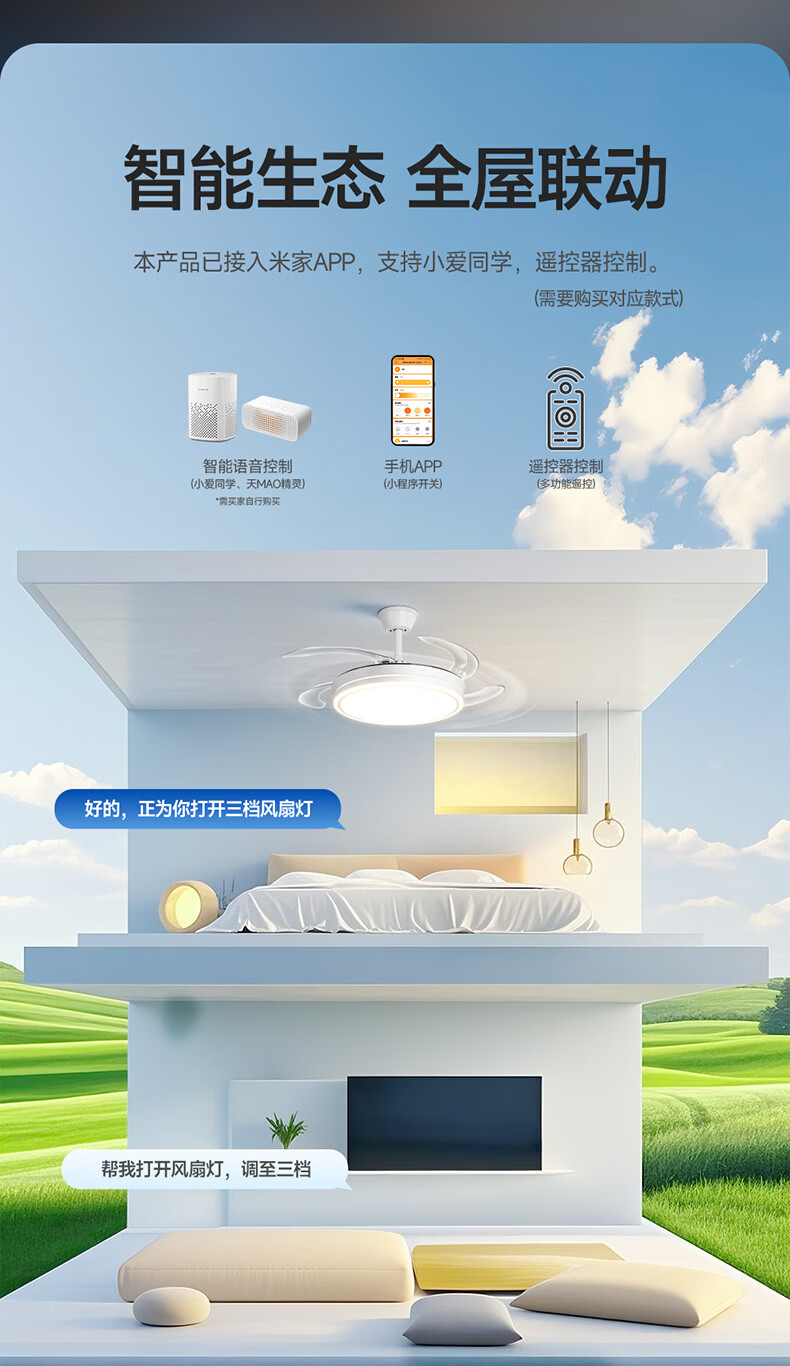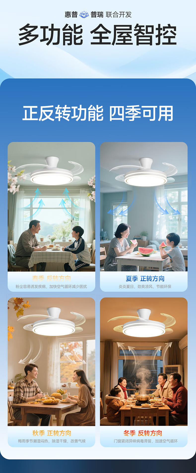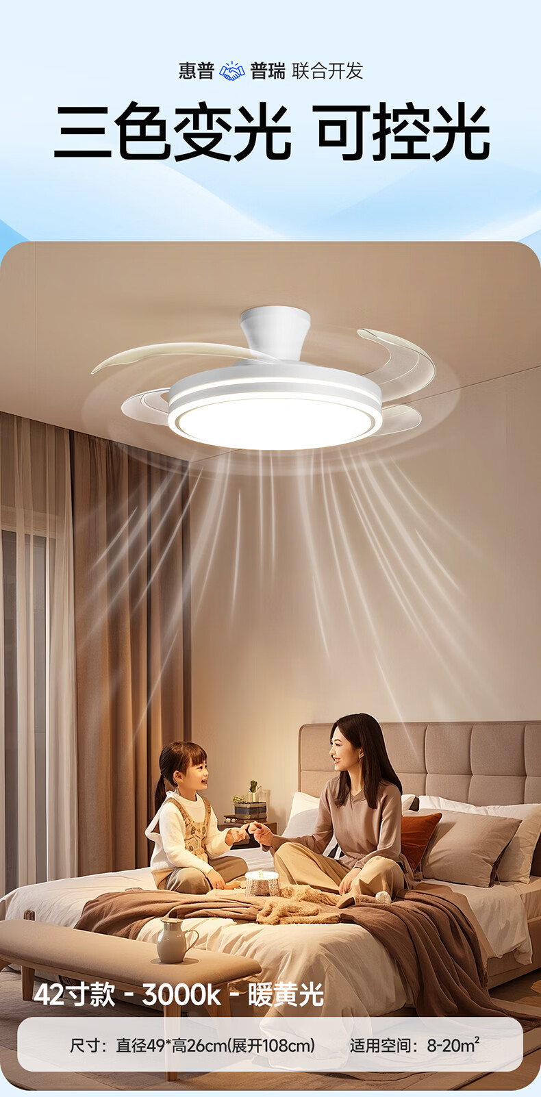 惠普普瑞护眼隐形扇餐厅遥控调光一体吊扇风扇灯中山灯具包安装臻之光