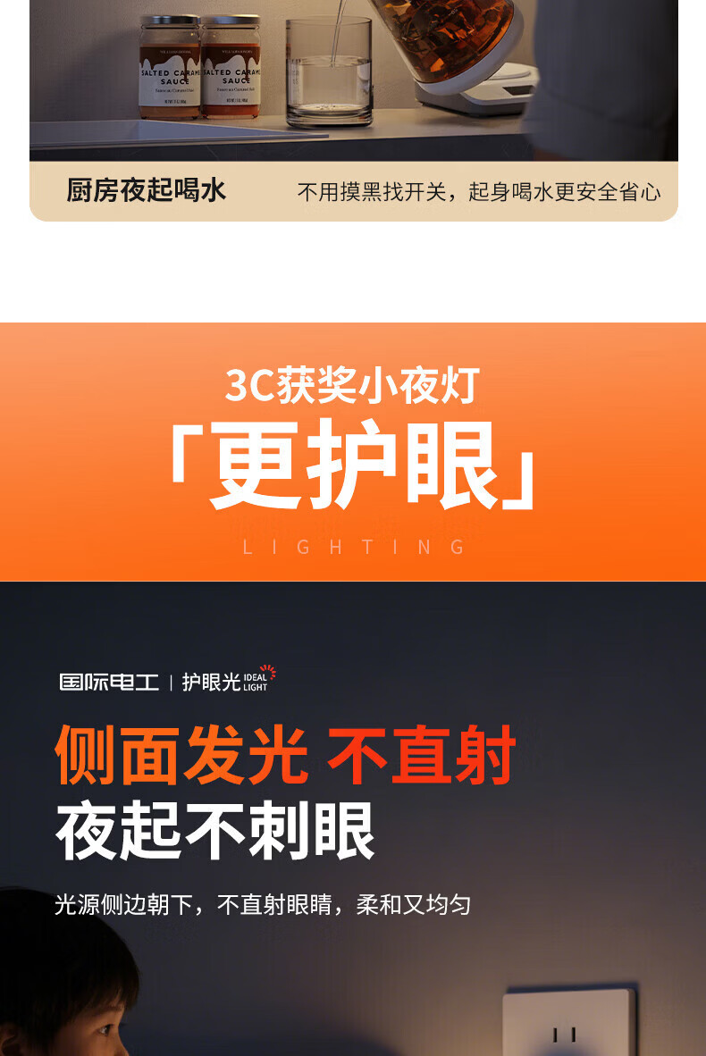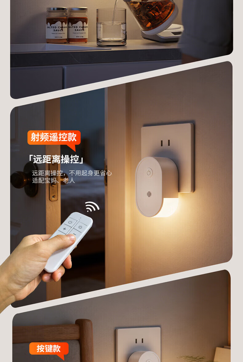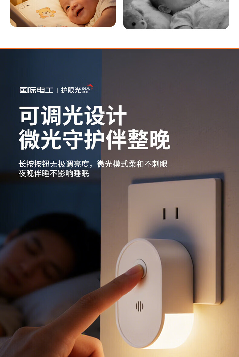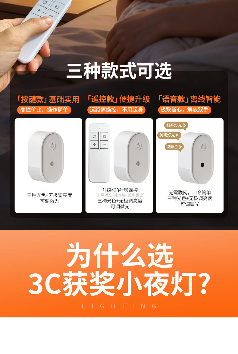 国际电工(FDD)智能语音声控小夜灯床头灯卧室柔光护眼伴睡起夜高颜值插电遥控灯 侧发光小夜灯【按键款 1W】