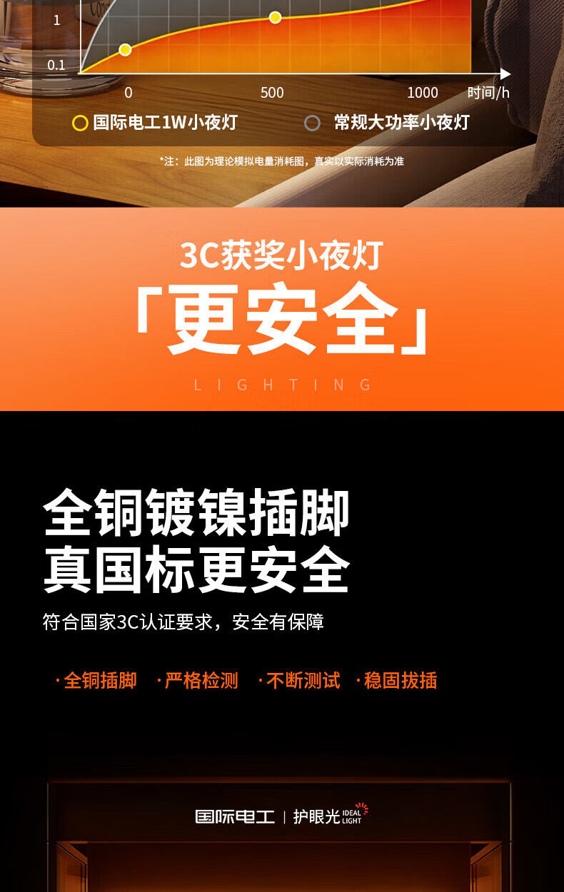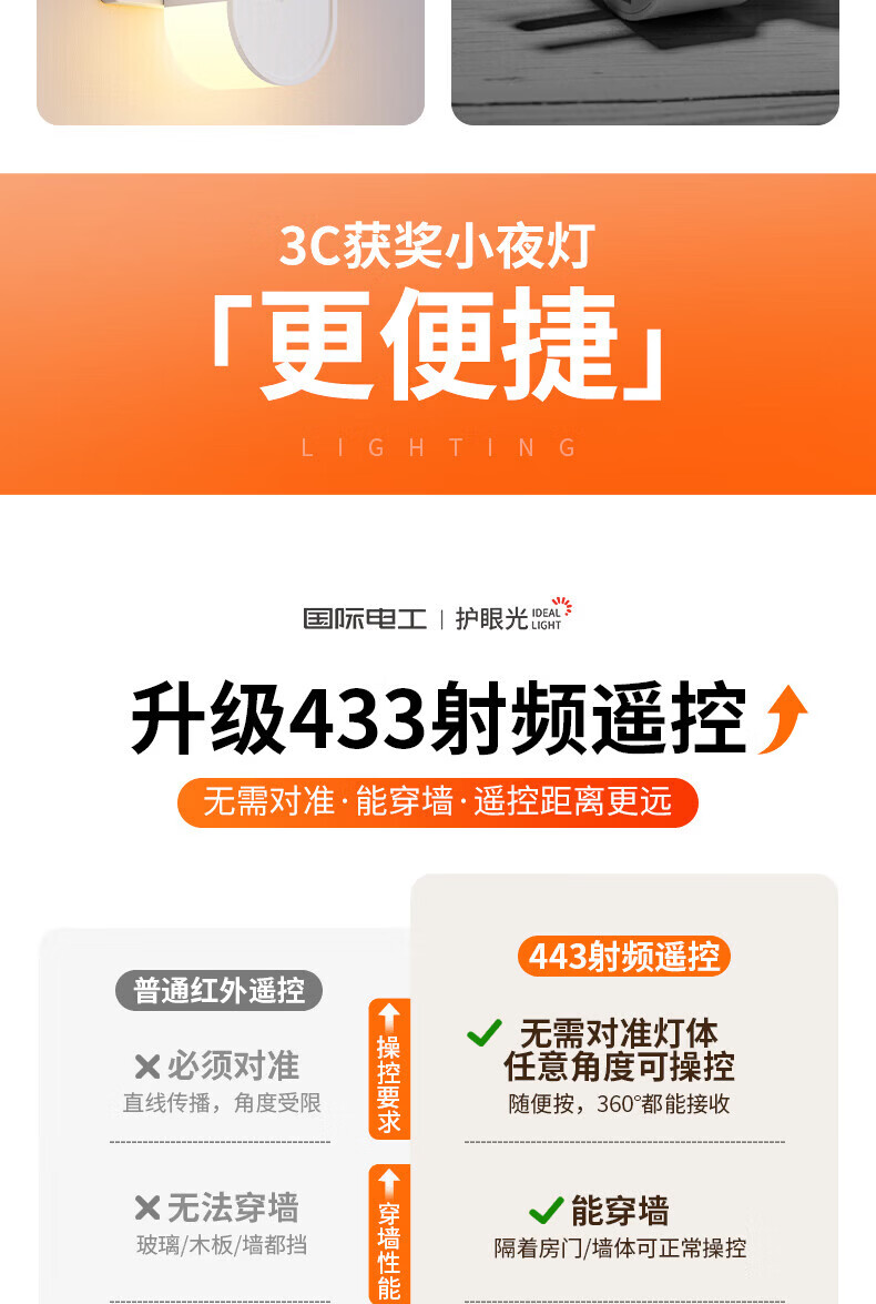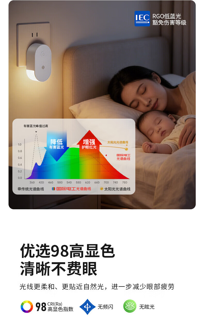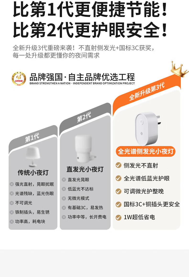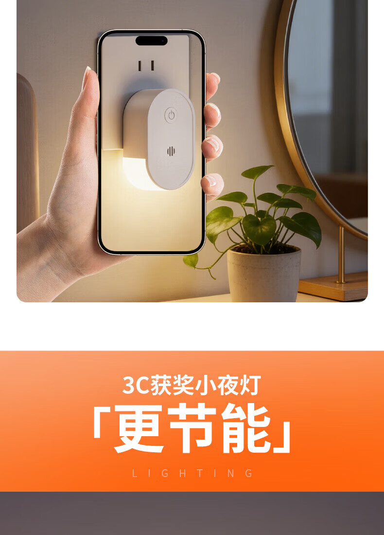 国际电工(FDD)智能语音声控小夜灯床头灯卧室柔光护眼伴睡起夜高颜值插电遥控灯 侧发光小夜灯【按键款 1W】