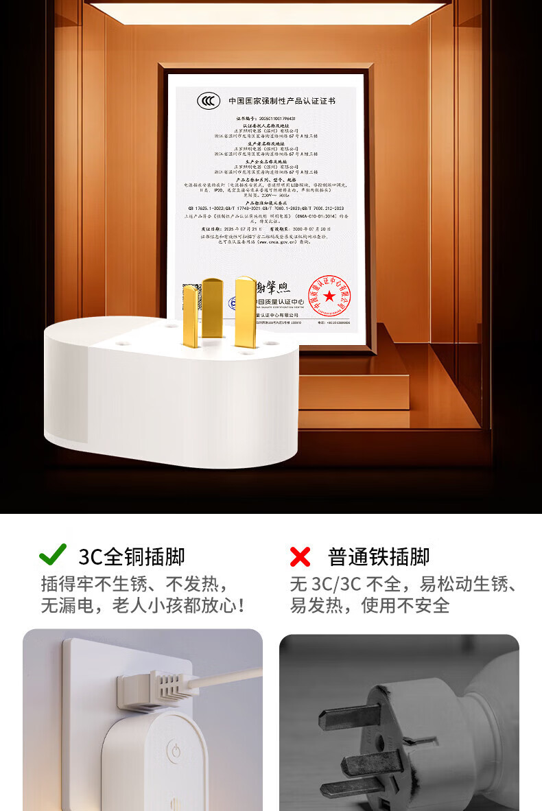 国际电工直插式扩展插座家用厨房分控带开关排插多功能带线拓展插板插线板 白色2.1A快充-五开35孔-向右扩展