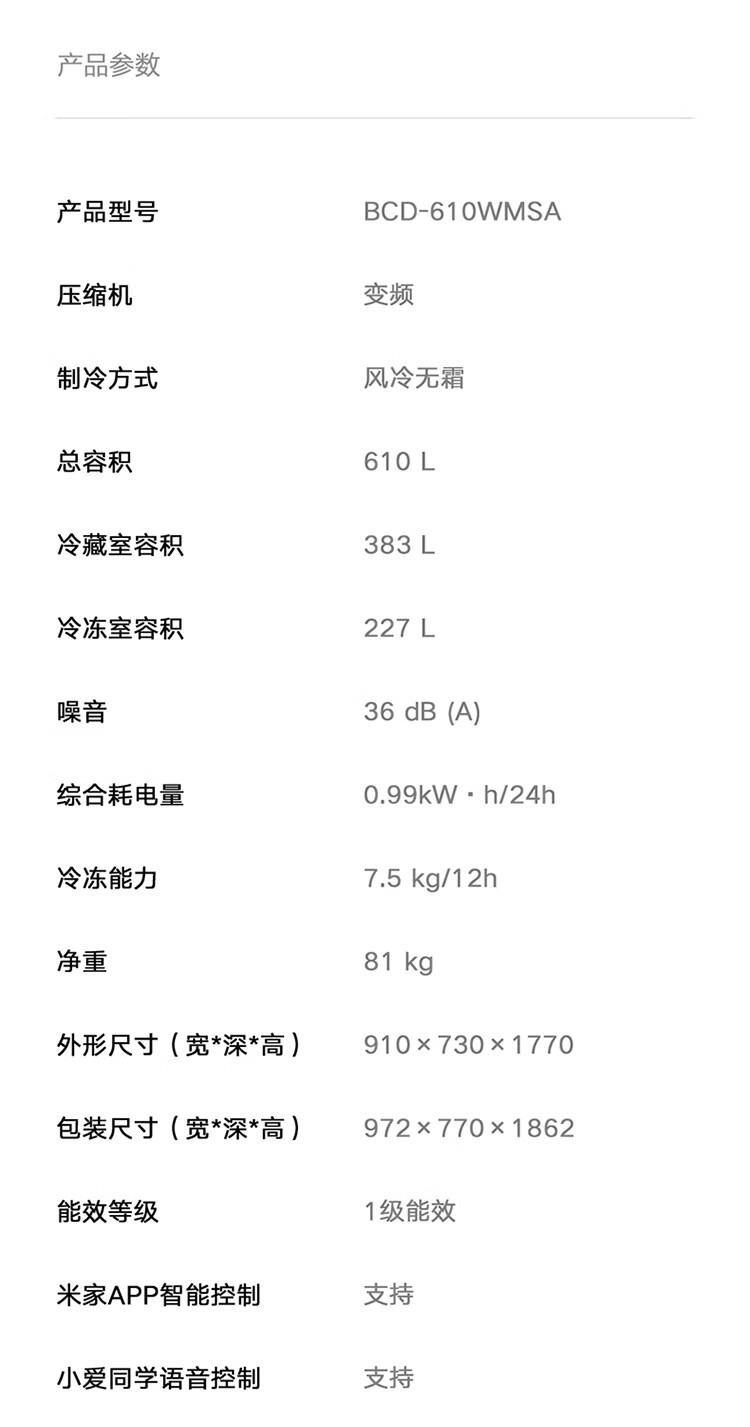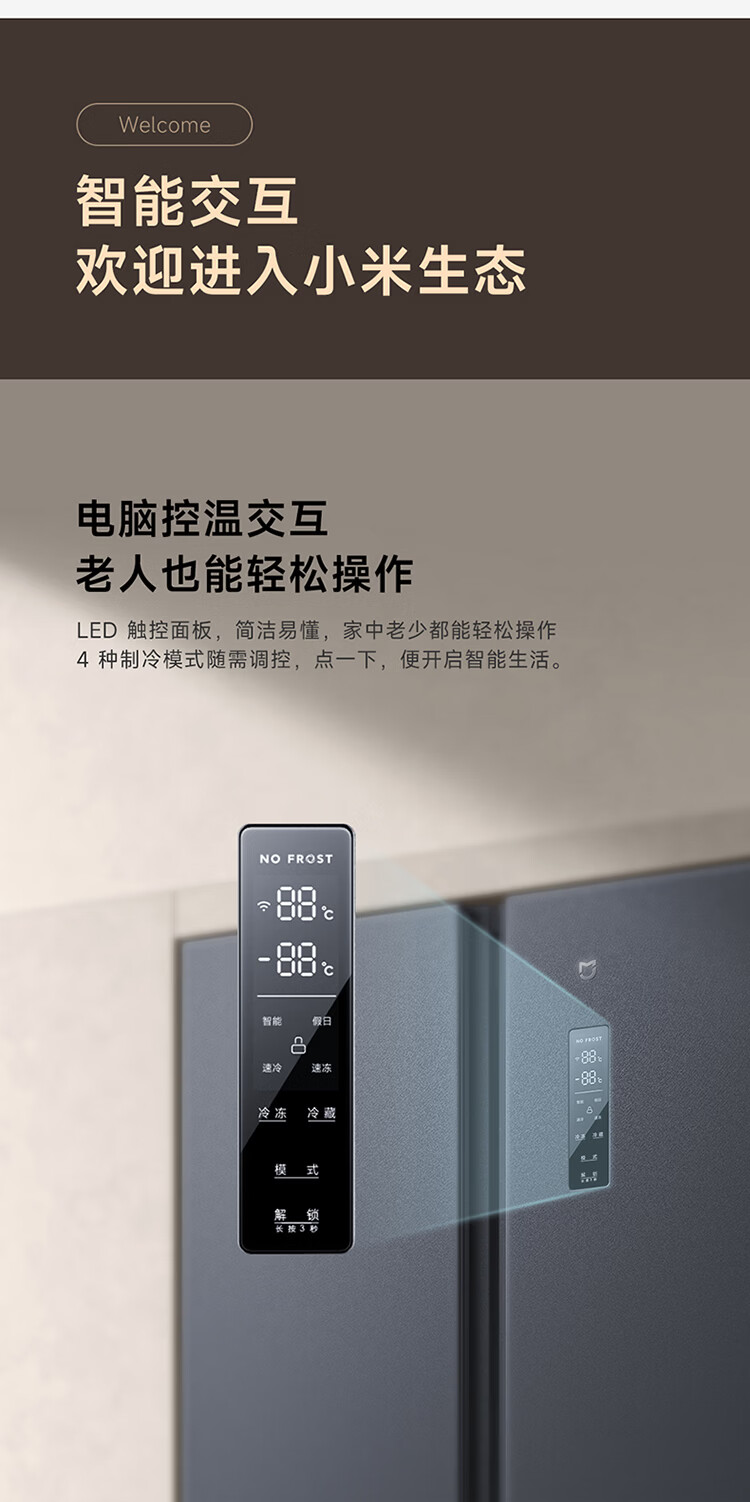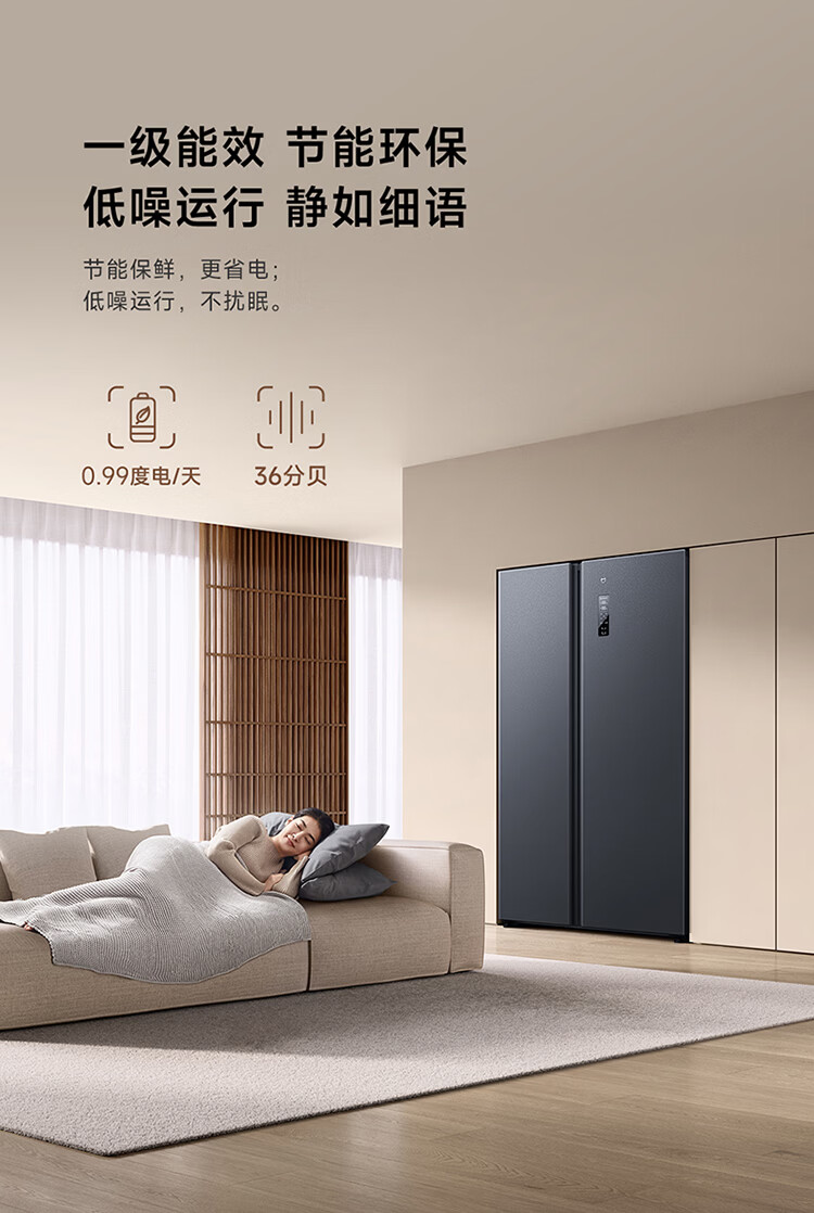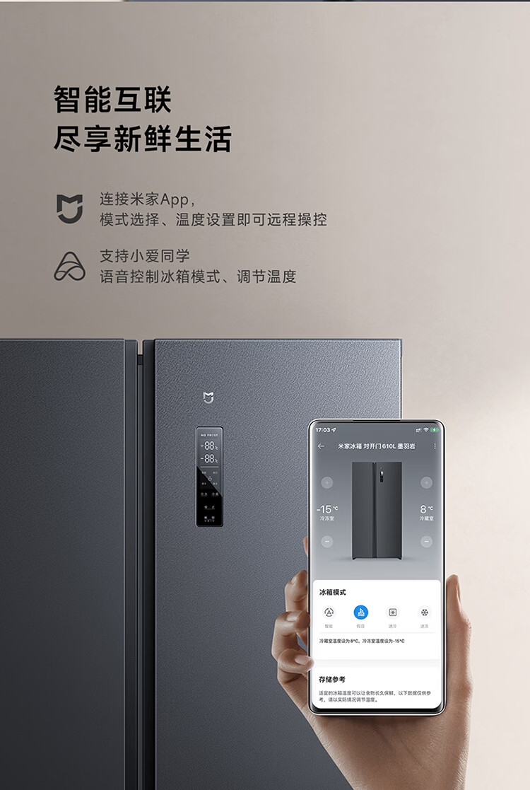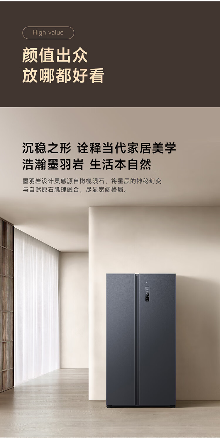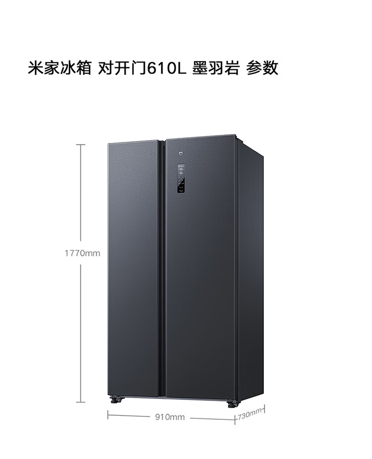 米家小米610升冰箱对开门双开门大容量风冷无霜银离子除菌 一级能效BCD-610WMSA 610L 对开门 墨羽岩