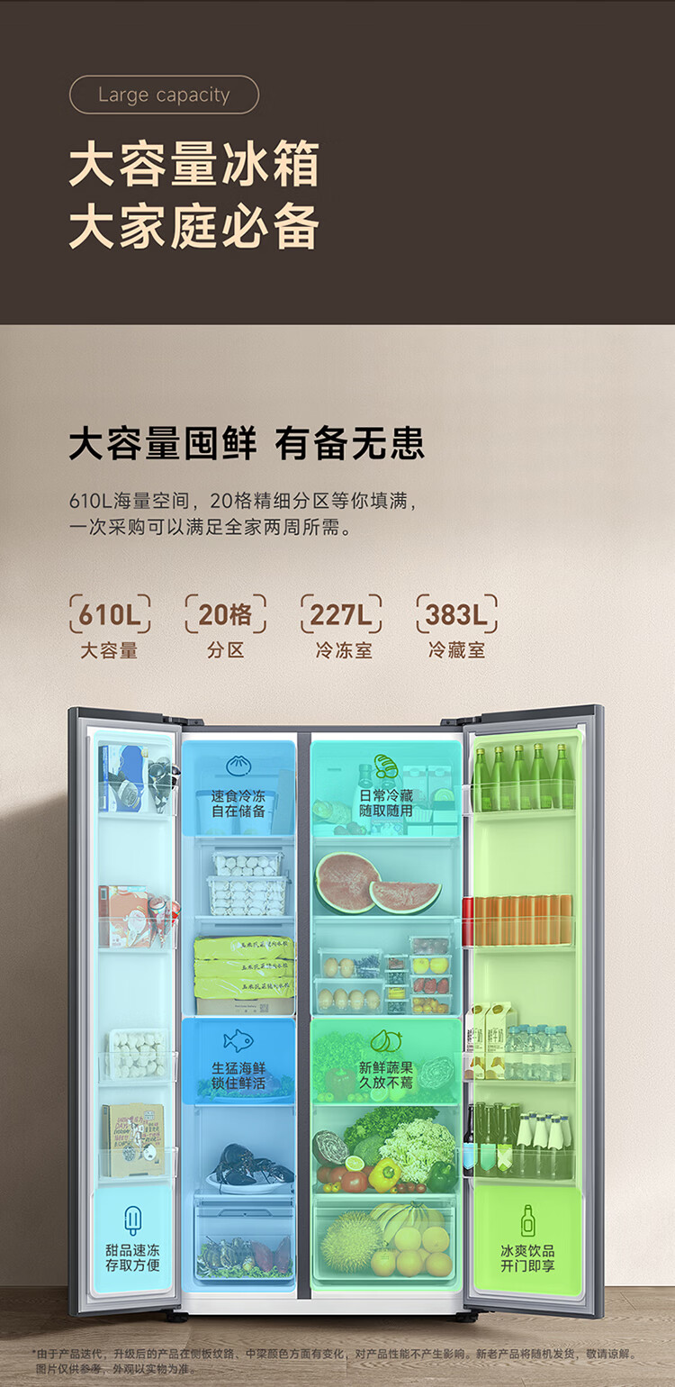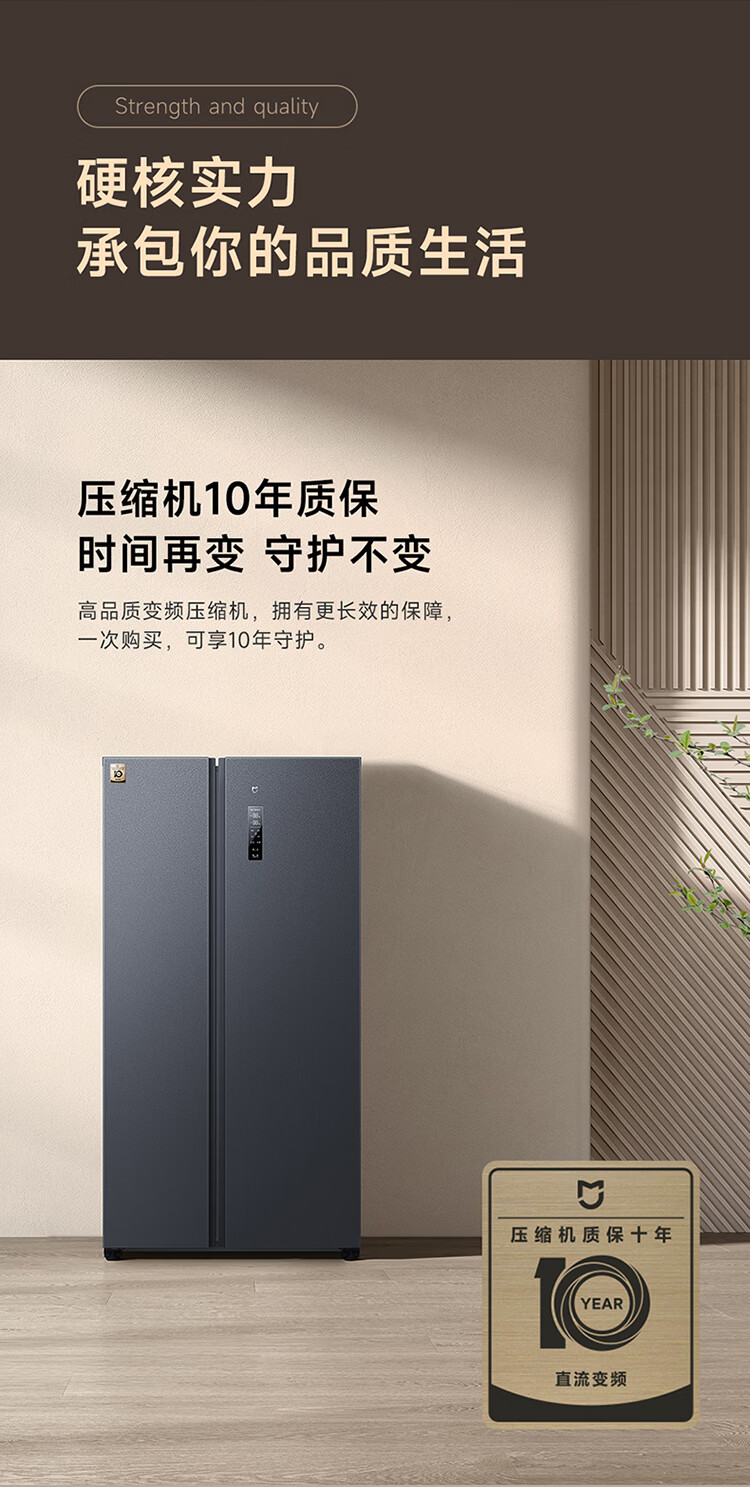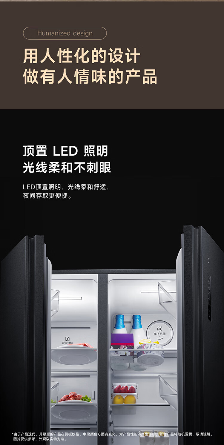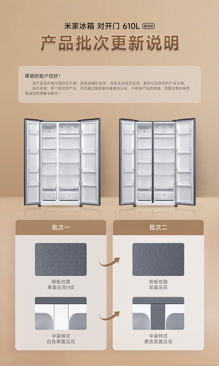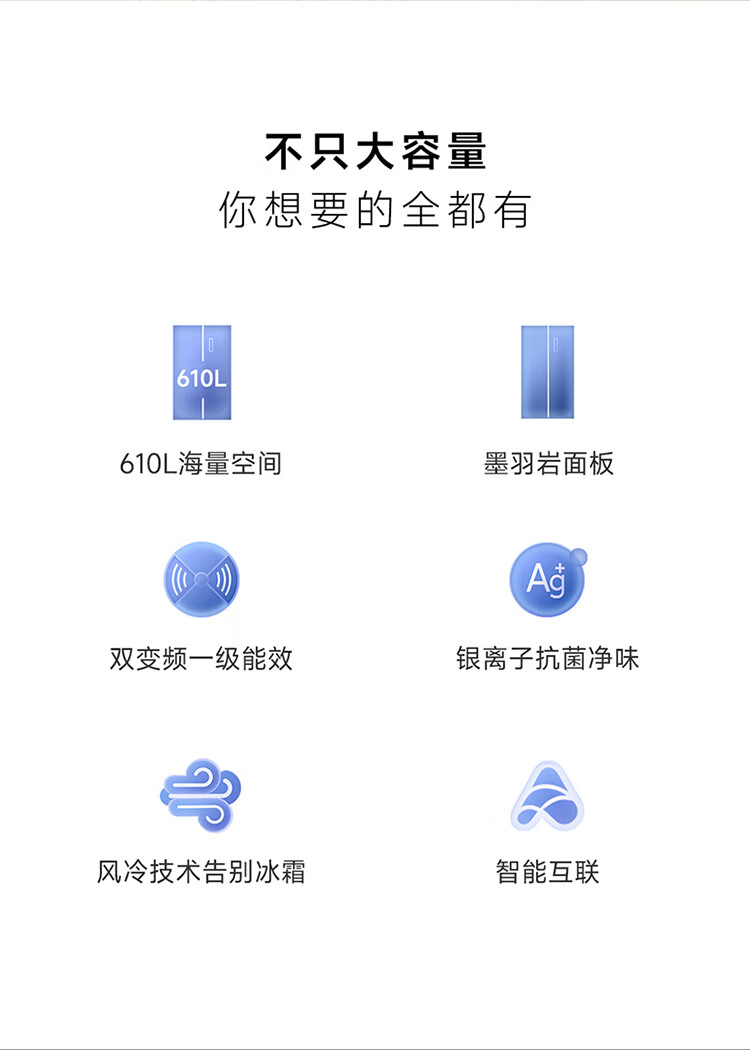米家小米610升冰箱对开门双开门大容量风冷无霜银离子除菌 一级能效BCD-610WMSA 610L 对开门 墨羽岩
