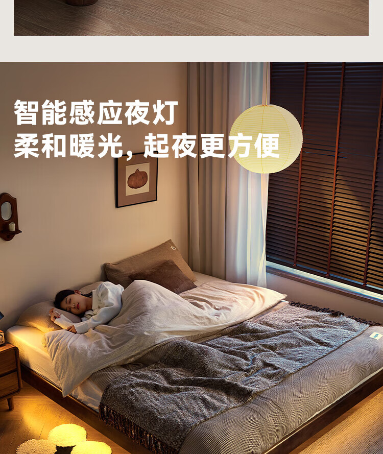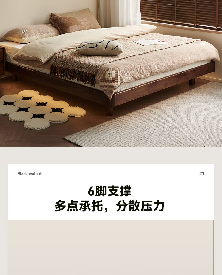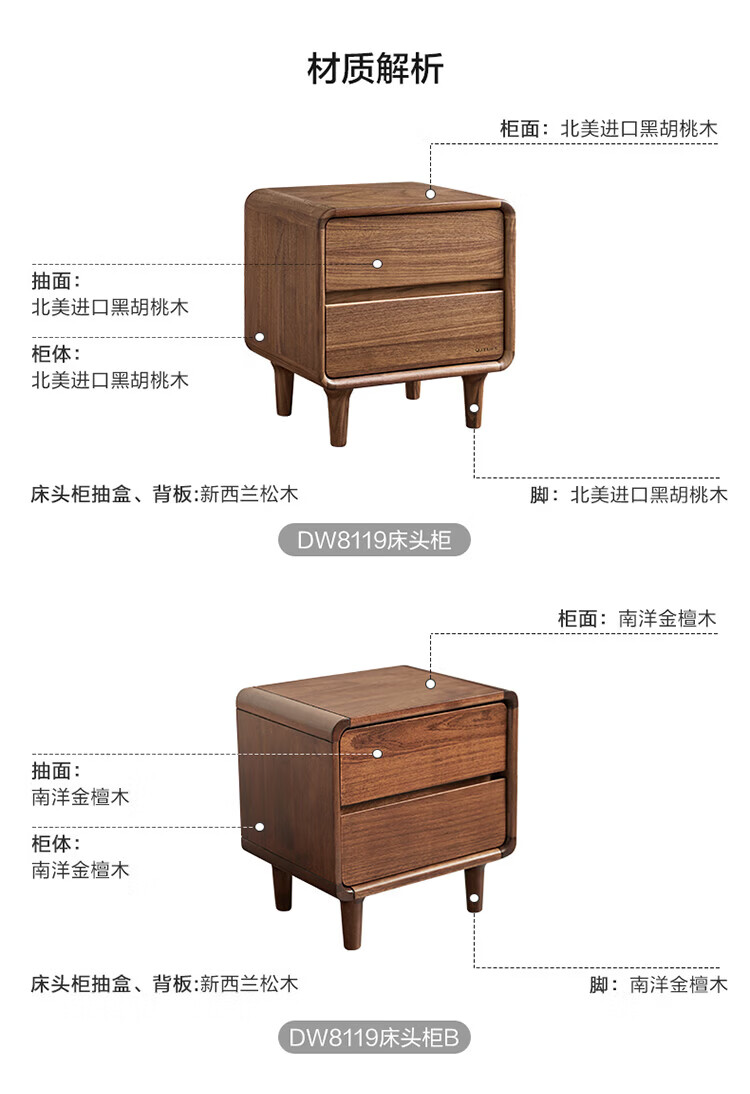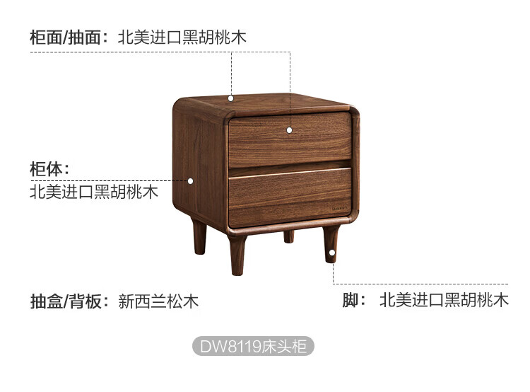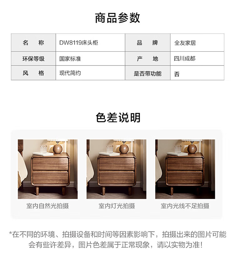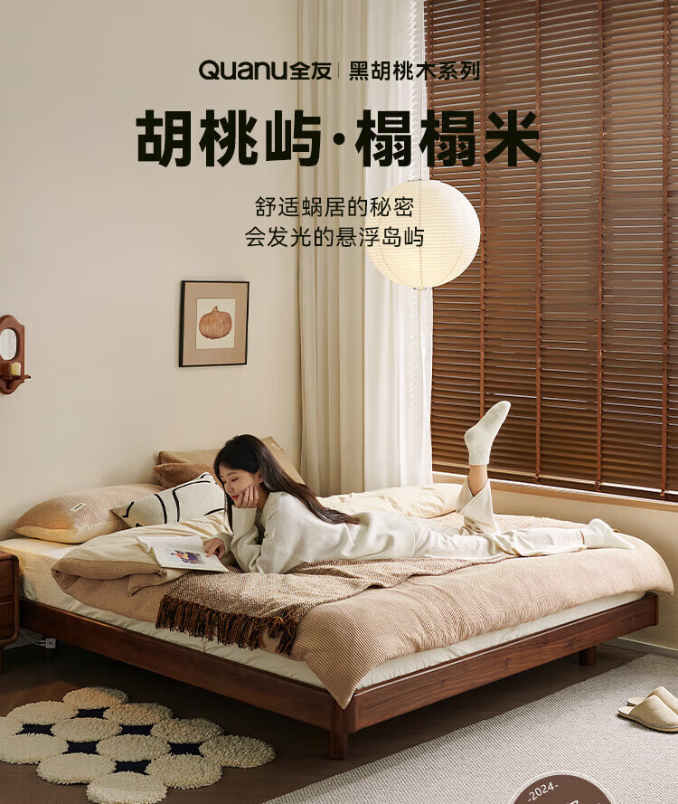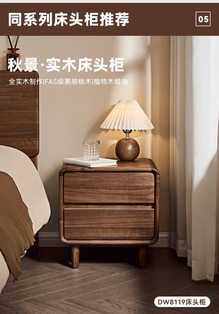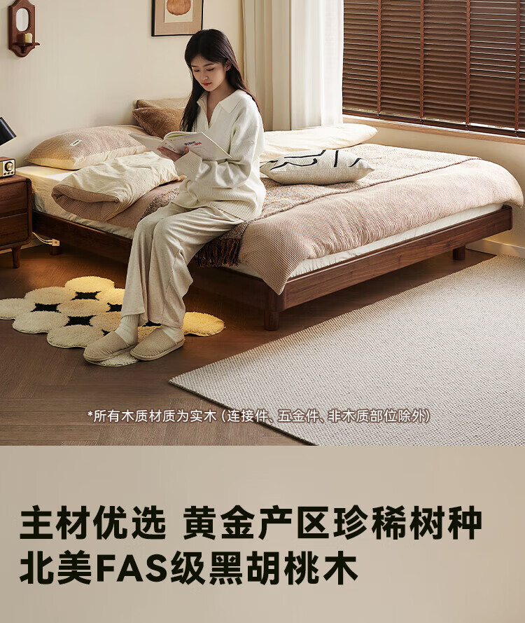 全友家居北欧风北美黑胡桃木实木无床头榻榻米家用主卧室悬浮双人大床 【南洋金檀木】床头柜 其他