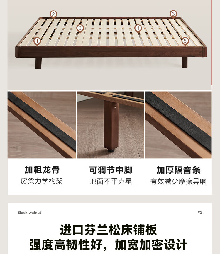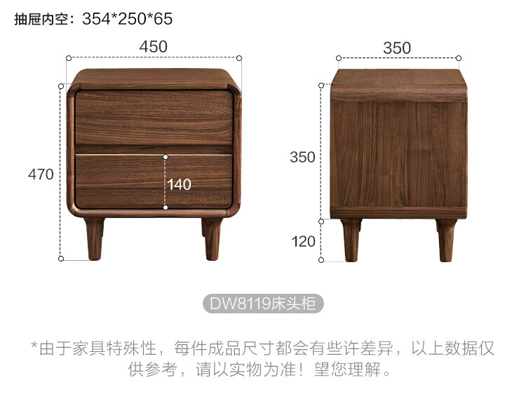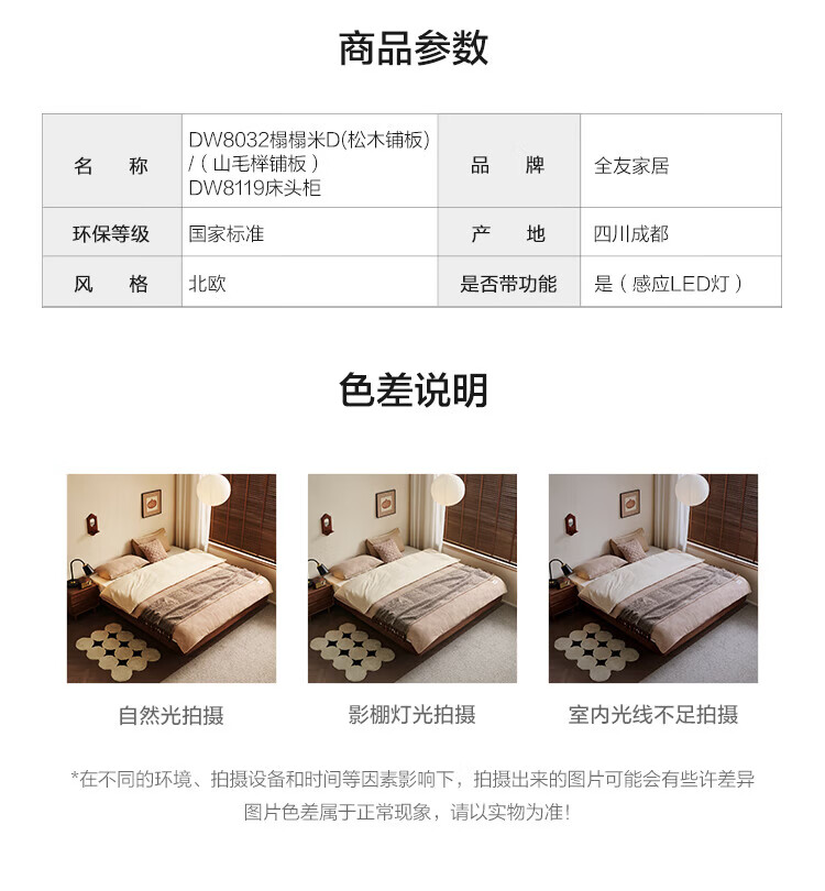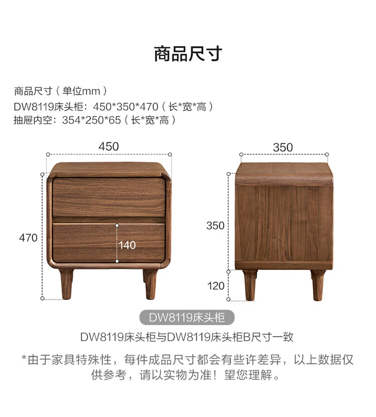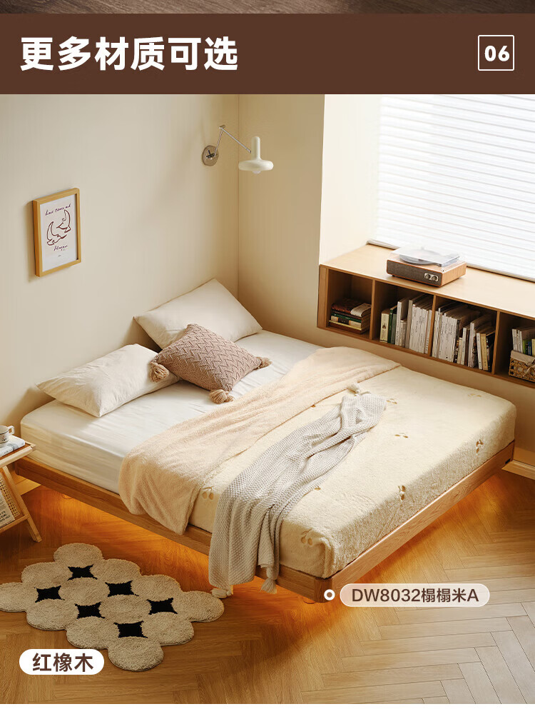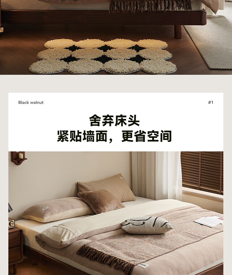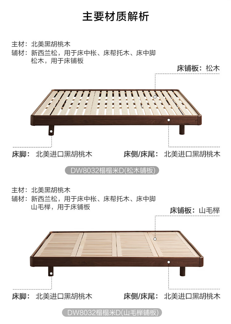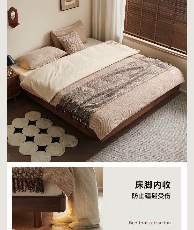 全友家居北欧风北美黑胡桃木实木无床头榻榻米家用主卧室悬浮双人大床 【南洋金檀木】床头柜 其他