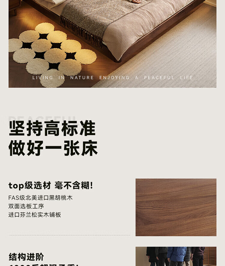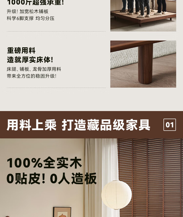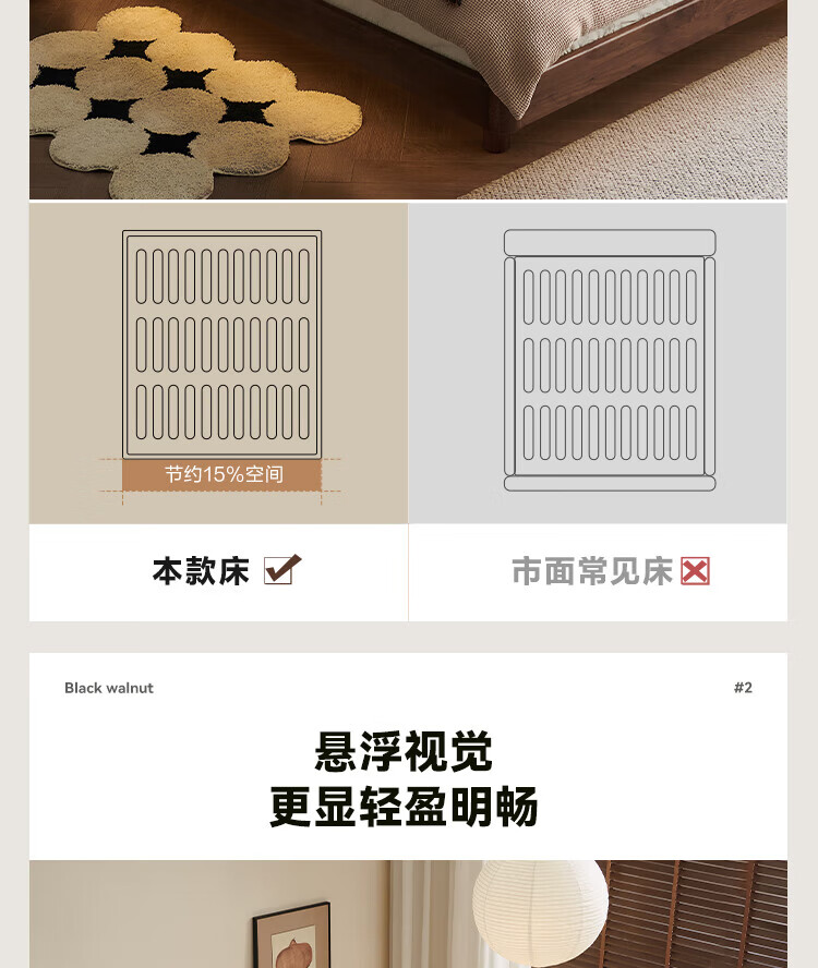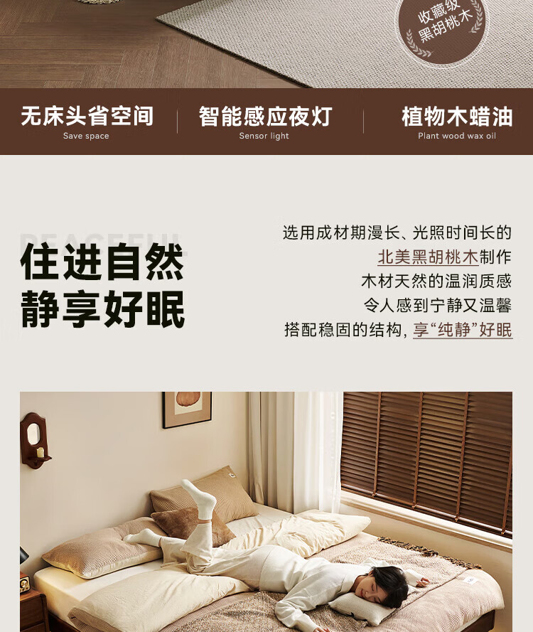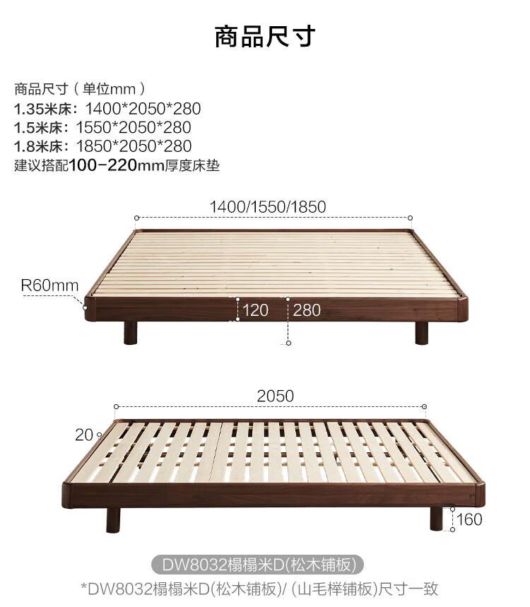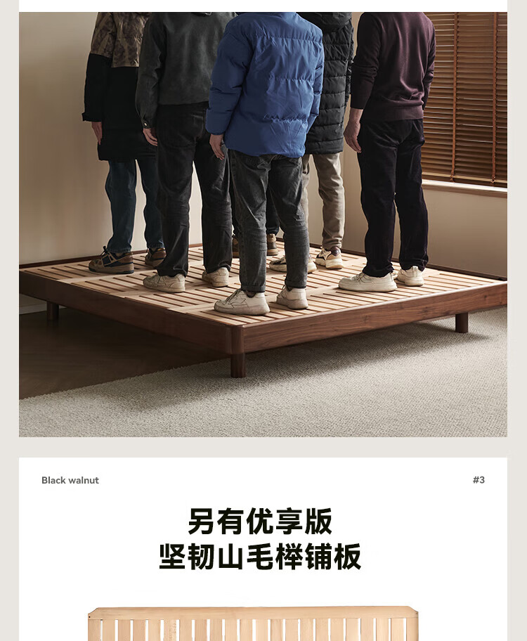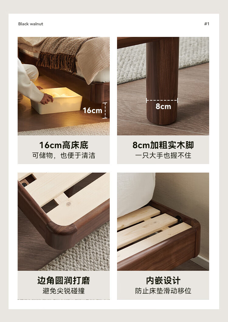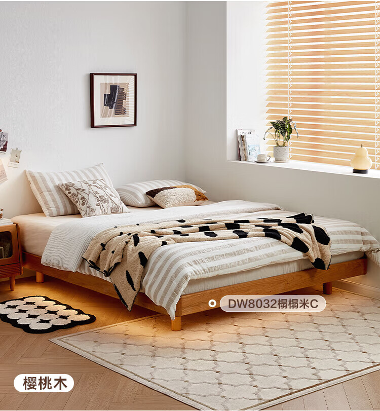 全友家居北欧风北美黑胡桃木实木无床头榻榻米家用主卧室悬浮双人大床 【南洋金檀木】床头柜 其他