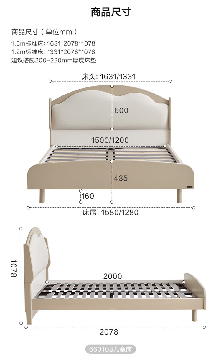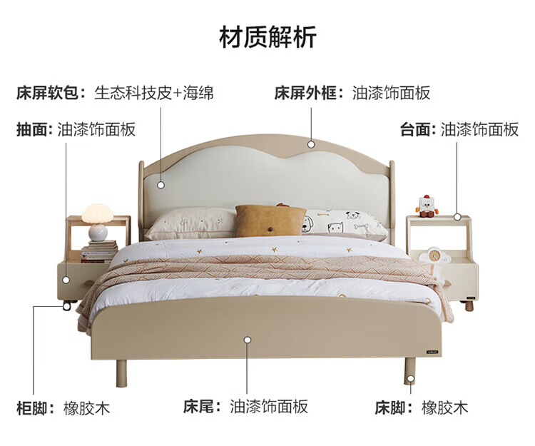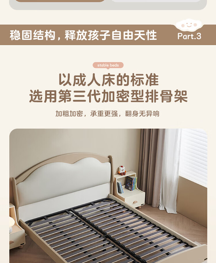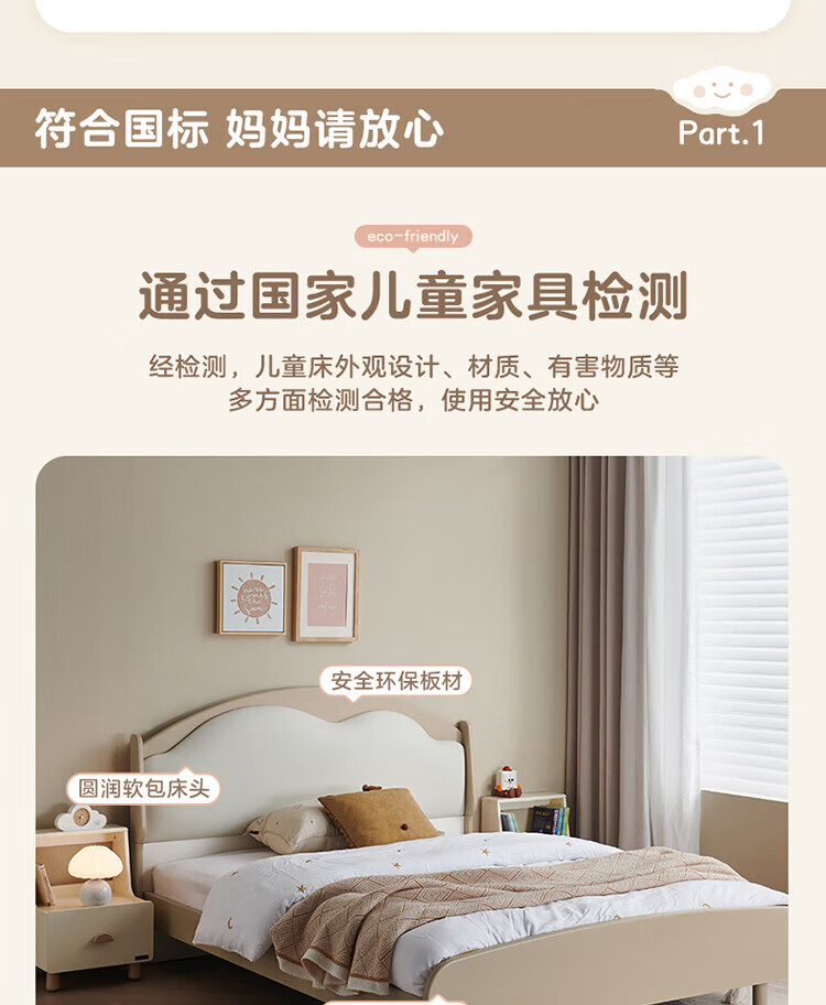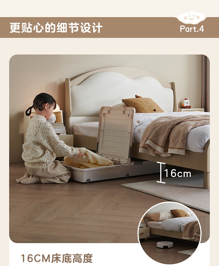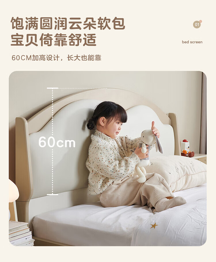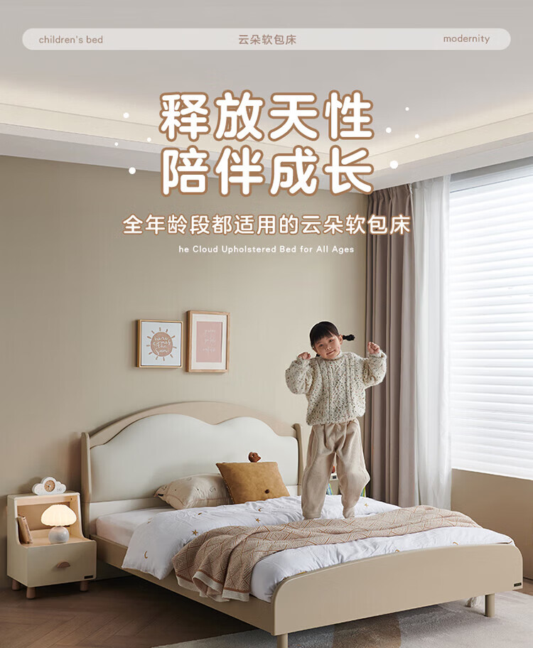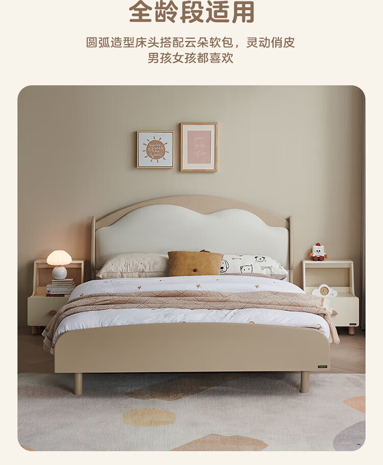 全友家居儿童房家具云朵软包床男女孩1.5x2米卧室实木脚单人床青少年 1.2m儿童床+床垫