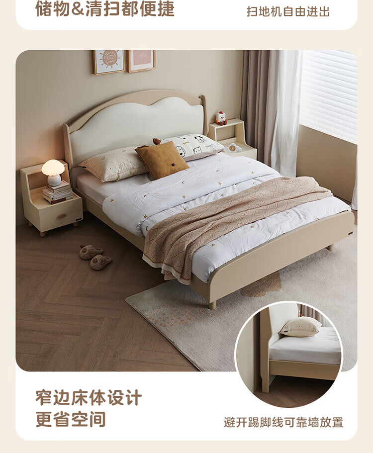 CBD家居现代简约真皮软包床双人主卧大床奶油风婚床头层牛皮甜心悬浮 甜心悬浮-奶油白单床 卷帘排骨架 1500*2000