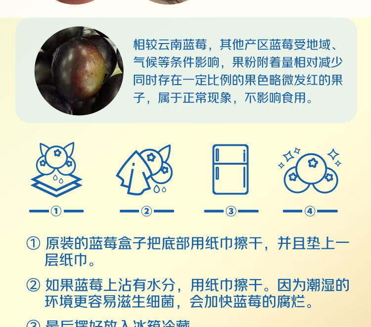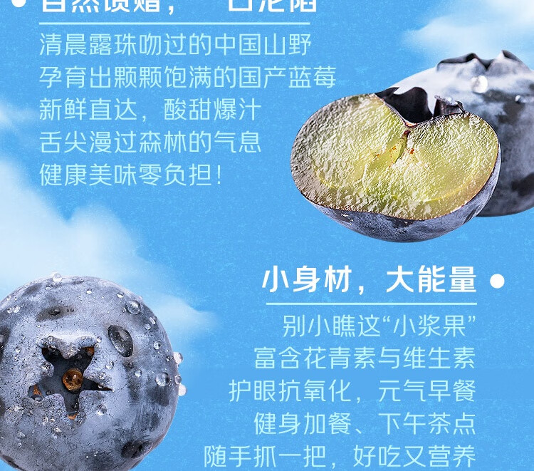 京鲜生 云南高山蓝莓 特大果22mm+ 4盒装 净重125g/盒 生鲜水果