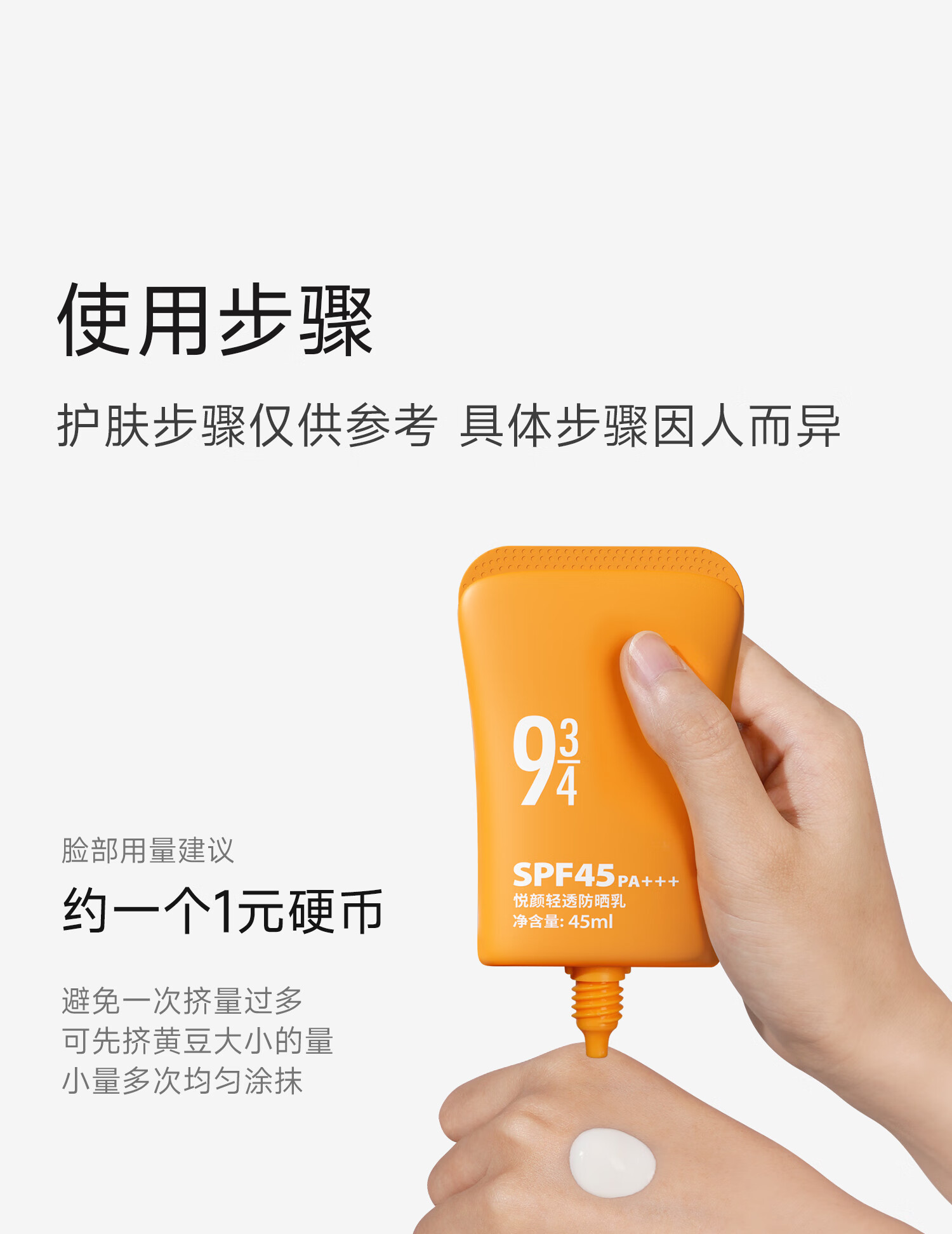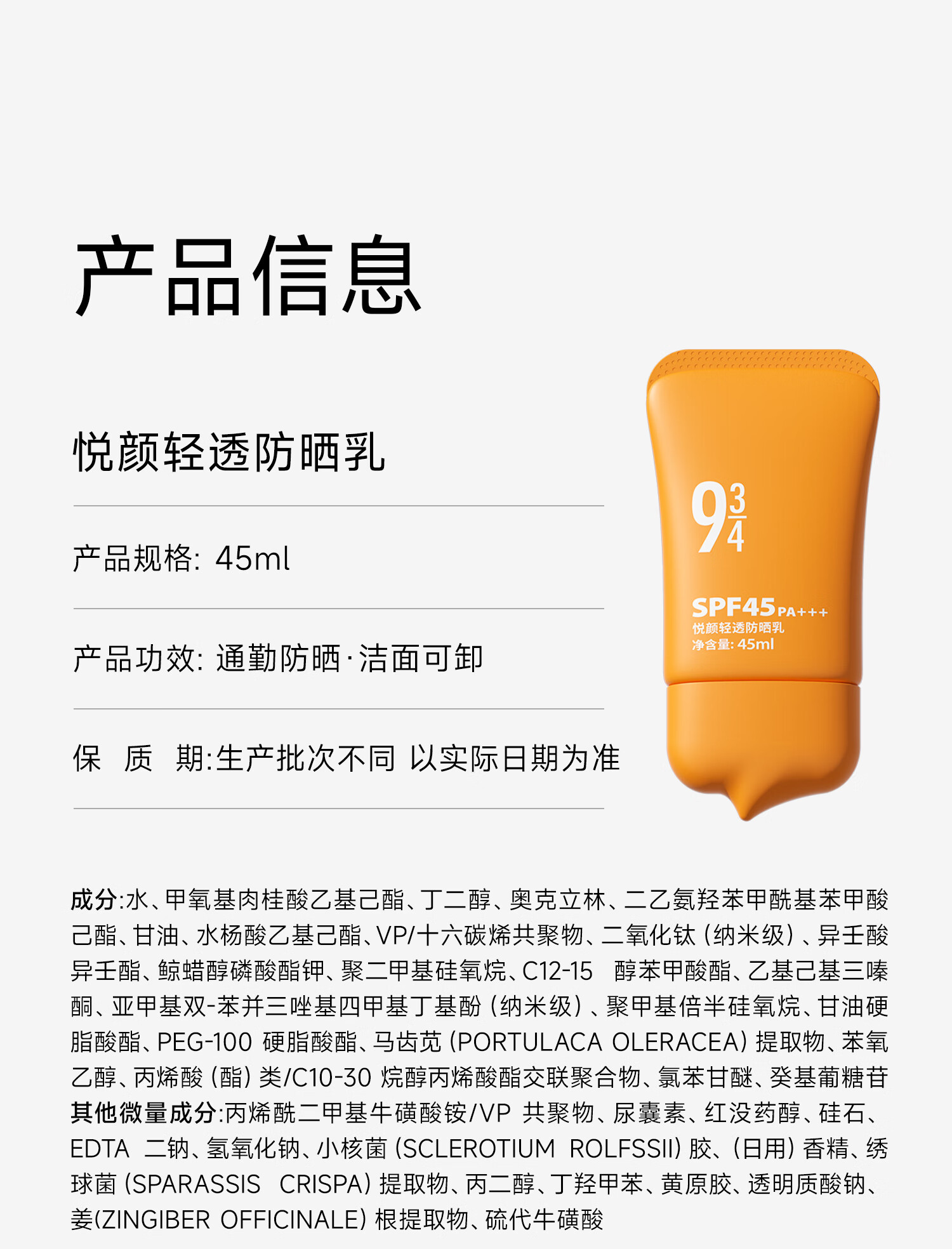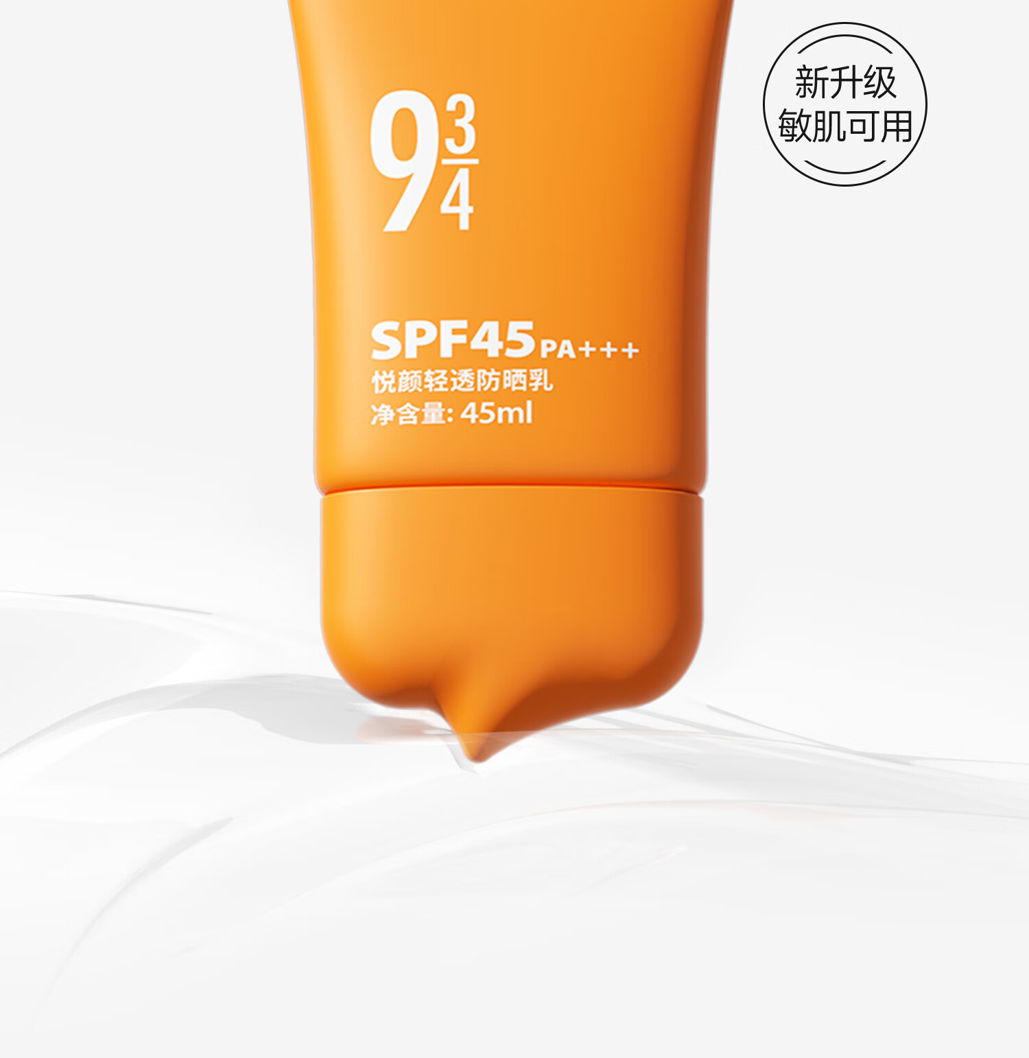 934 悦颜新升级轻透防晒乳通勤清爽轻薄学生防晒男女适用 45ml