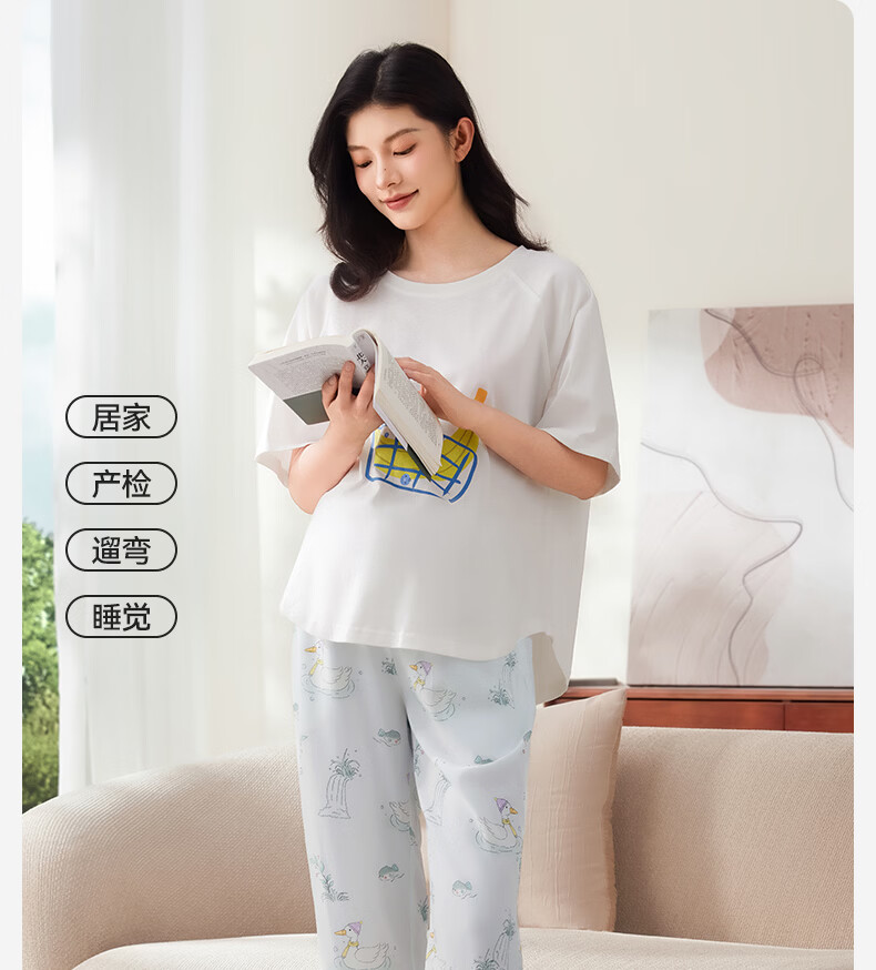 十月结晶孕妇裤睡裤不勒肚子孕期产后打底裤月子裤春夏季 悠游鸭 XL码